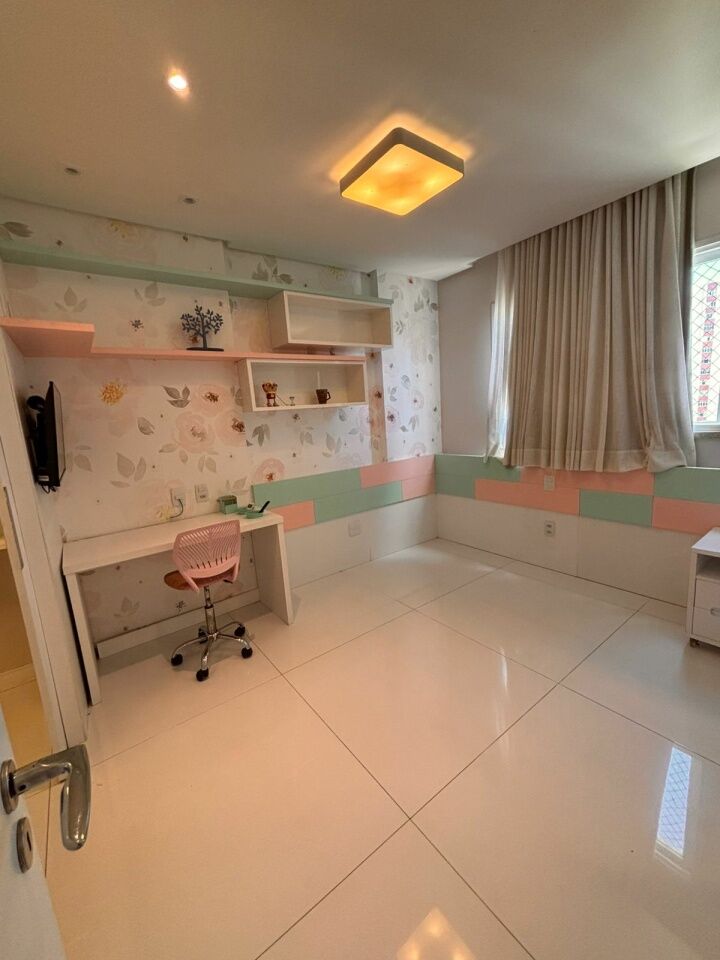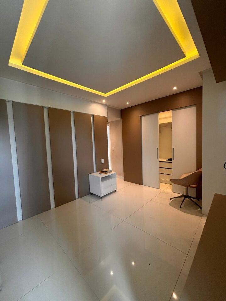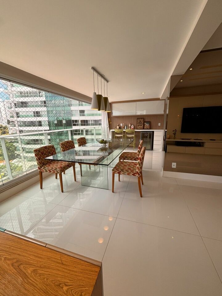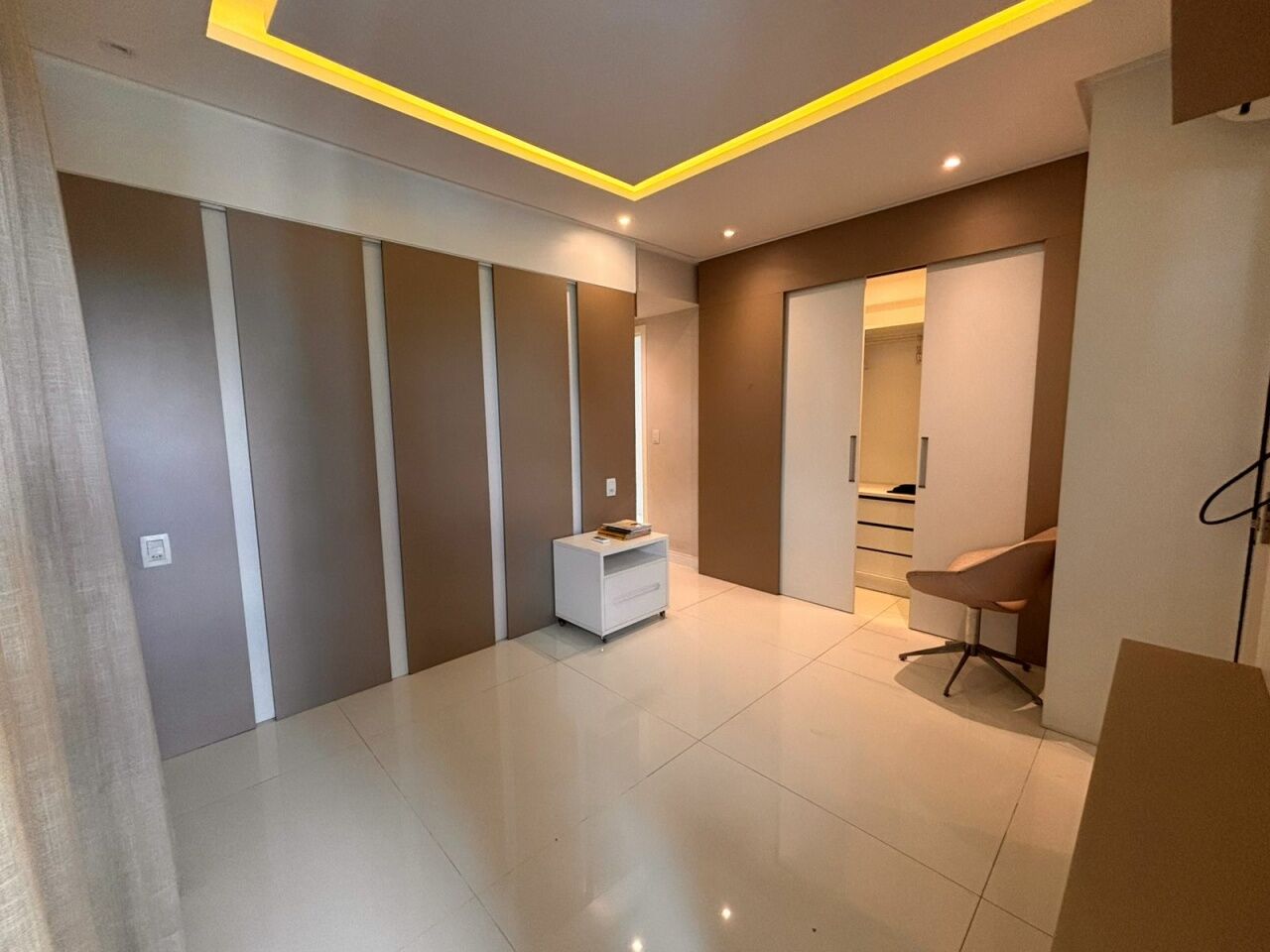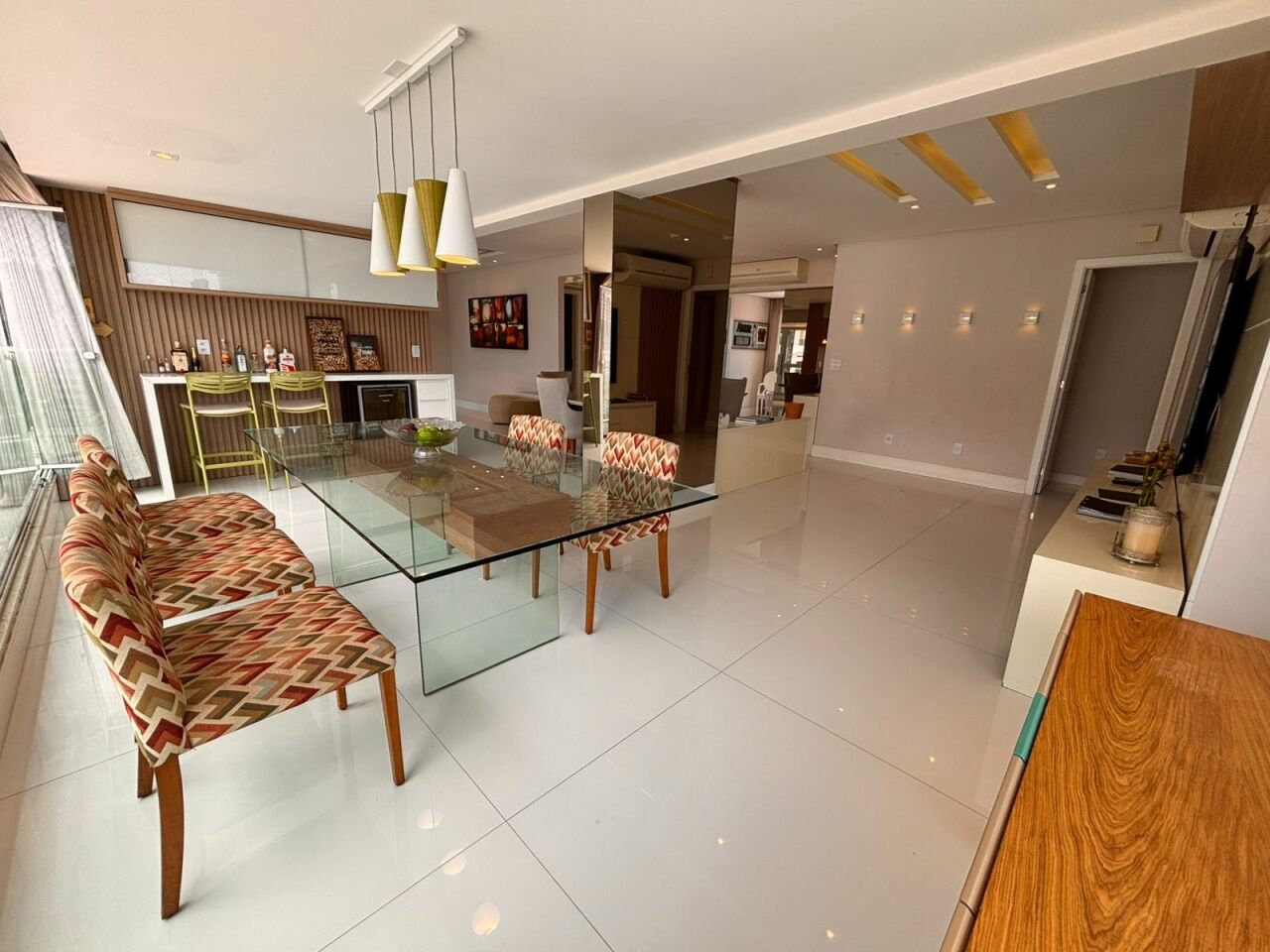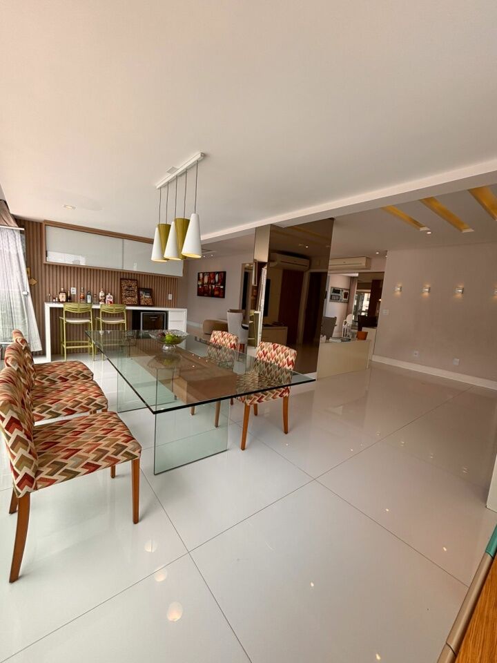 Excelente apartamento, fino acabamento, de 187m², com 4 quartos, 3 suítes, closet, gabinete, varanda com fechamento em reiki, living amplo, sala de estar, sala de jantar, lavabo, armários planejados em todos os cômodos, projeto de iluminação, teto rebaixado, ar condicionado, cozinha espaçosa, área de serviço, andar alto, e três vagas de garagem.