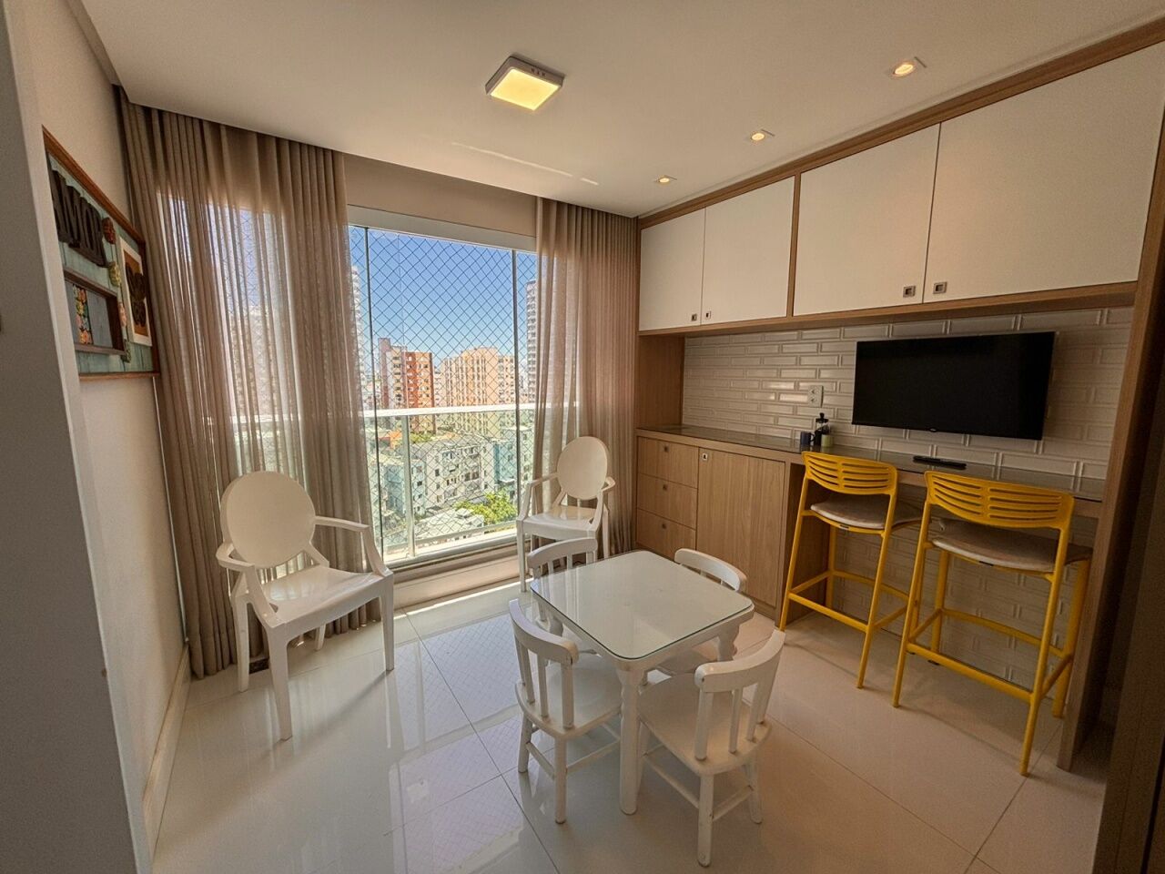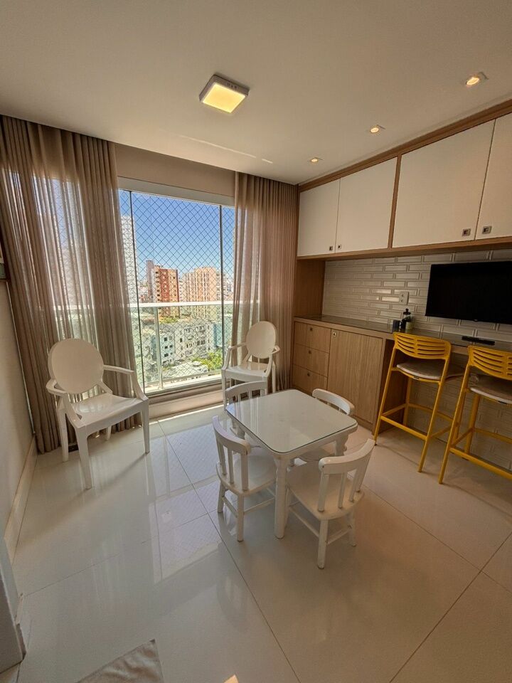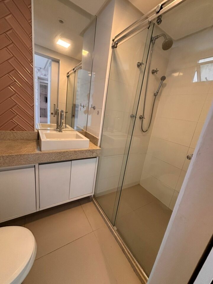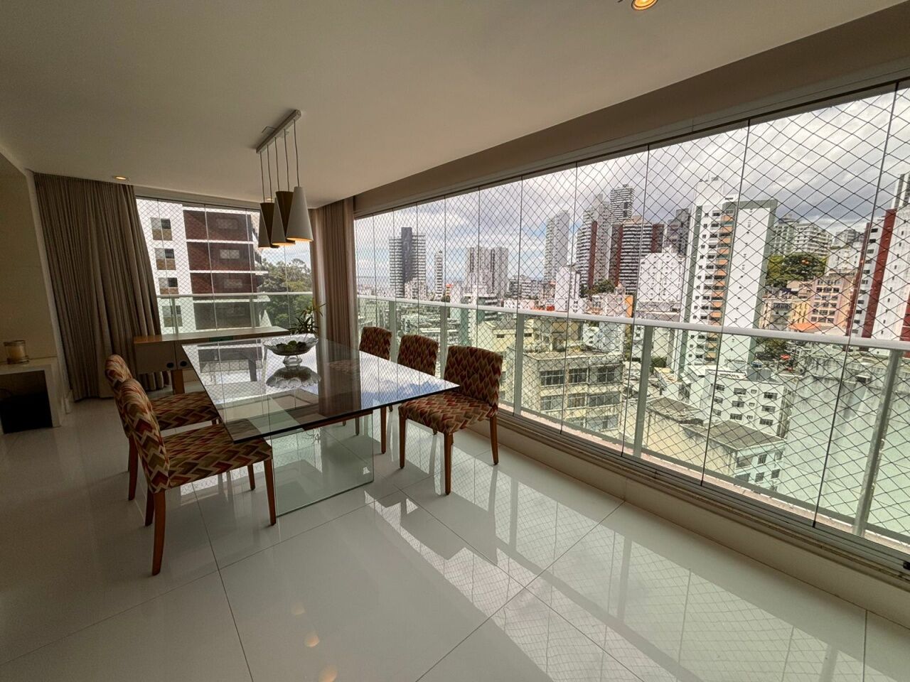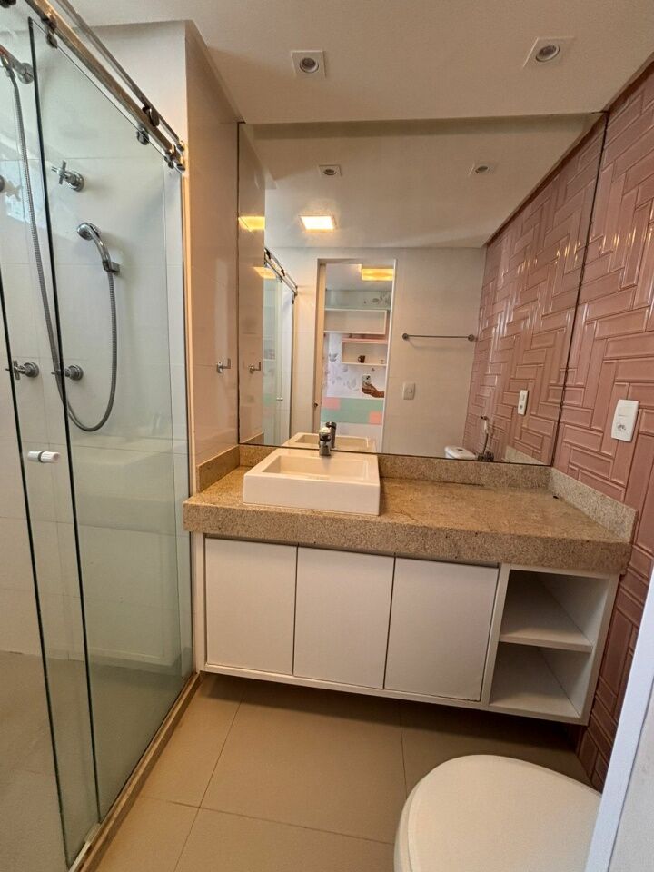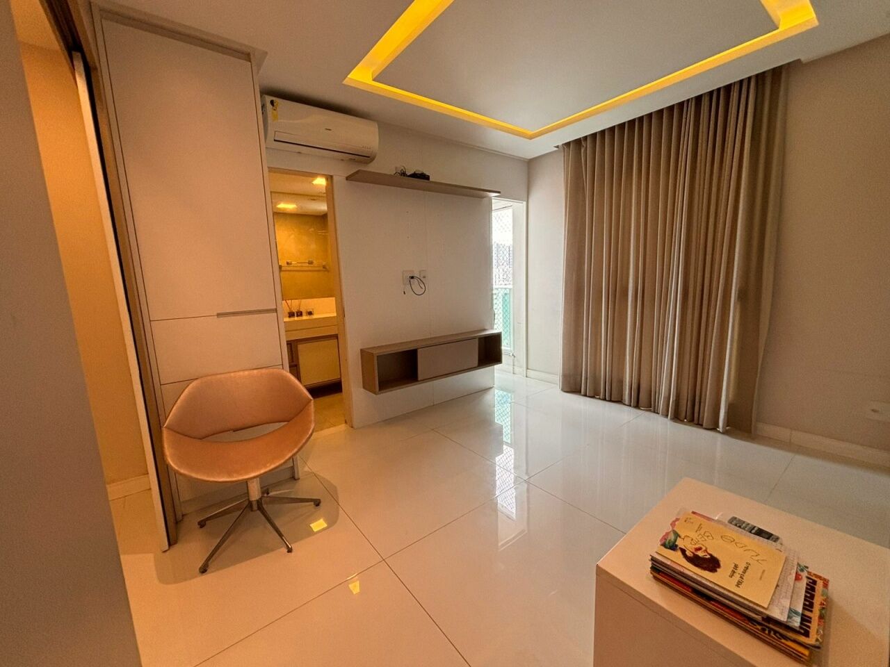 Excelente apartamento, fino acabamento, de 187m², com 4 quartos, 3 suítes, closet, gabinete, varanda com fechamento em reiki, living amplo, sala de estar, sala de jantar, lavabo, armários planejados em todos os cômodos, projeto de iluminação, teto rebaixado, ar condicionado, cozinha espaçosa, área de serviço, andar alto, e três vagas de garagem.