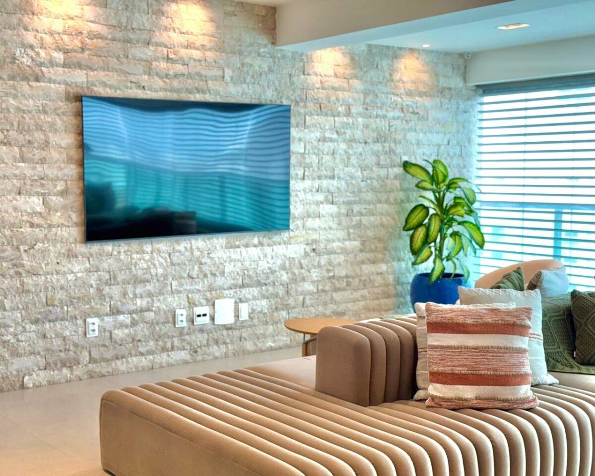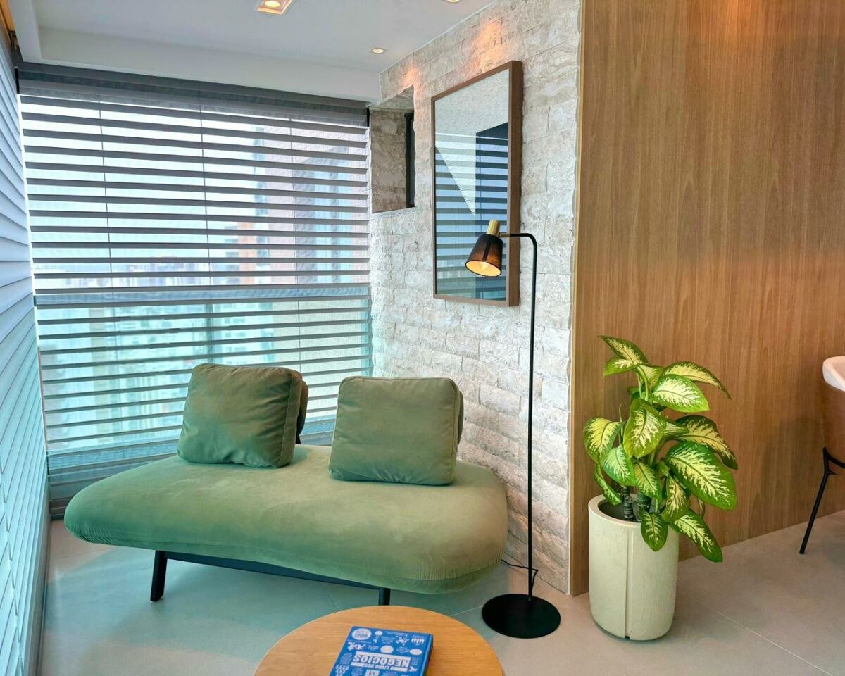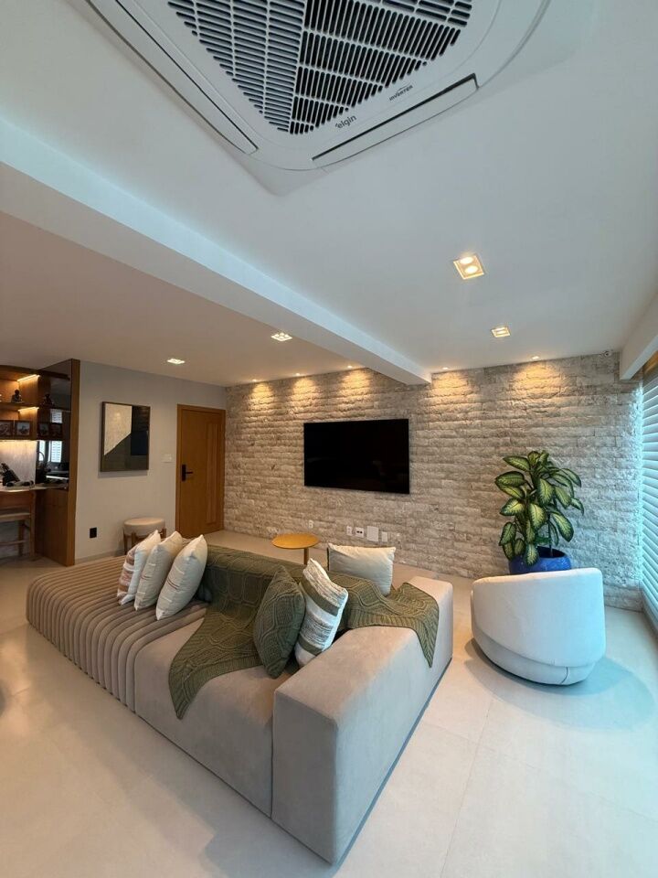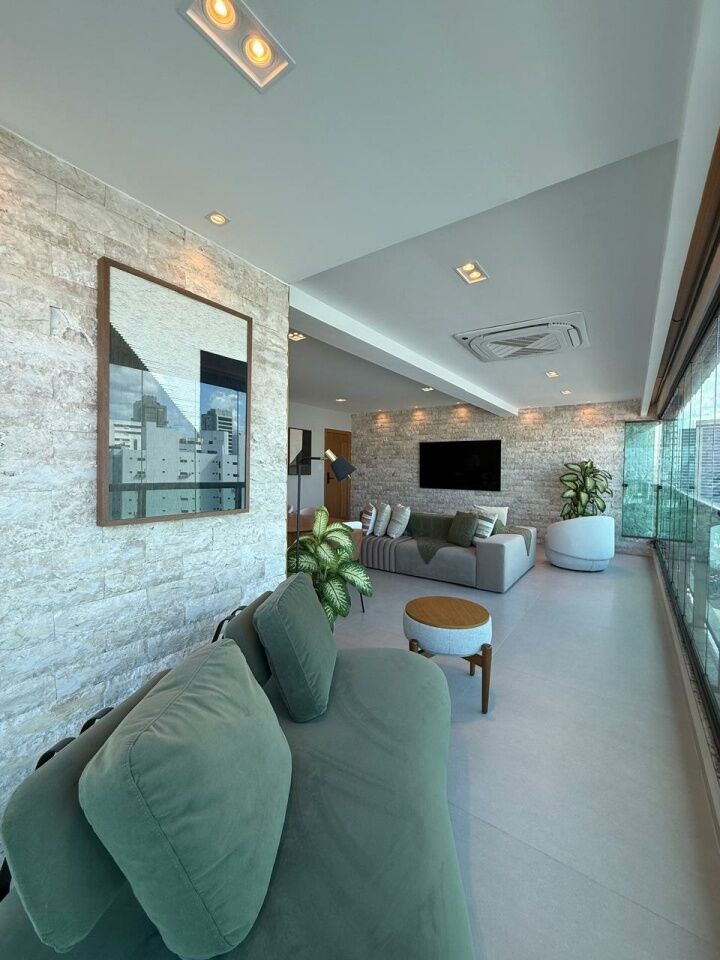 Excelente apartamento, nascente, porteira fechada, vista mar, finamente decorado, de 105m², com 2 quartos, 2 suítes, piso frio, varanda incorporada com fechamento em reiki, dining room, living room, lavabo, armários planejados em todos os cômodos, ambientes climatizados, cozinha espaçosa em conceito aberto, móveis e decoração escolhidos por designers, área de serviço com banheiro, projeto de iluminação, e duvas vagas de garagem.