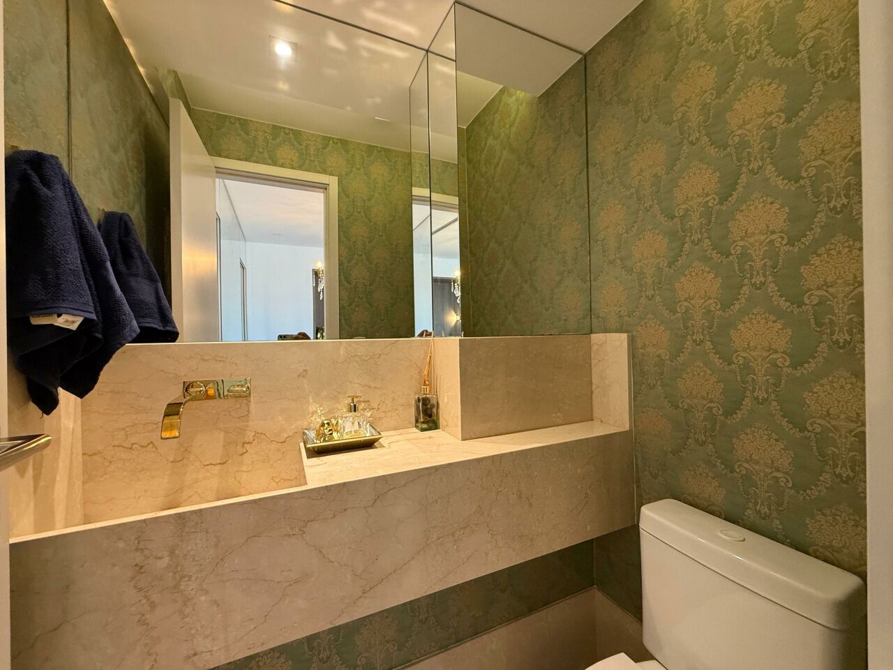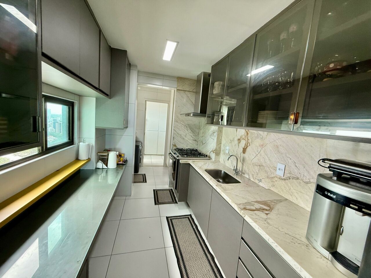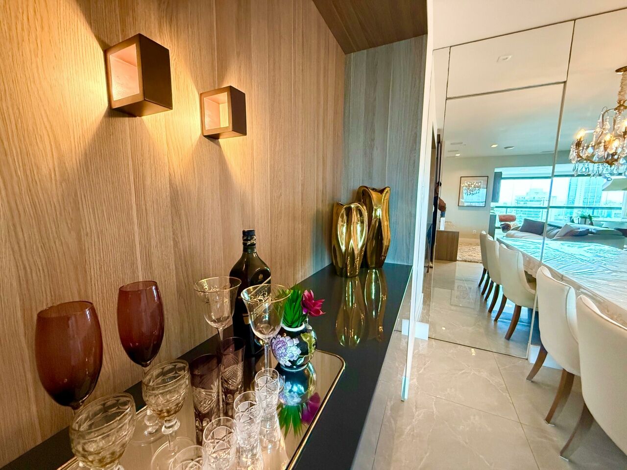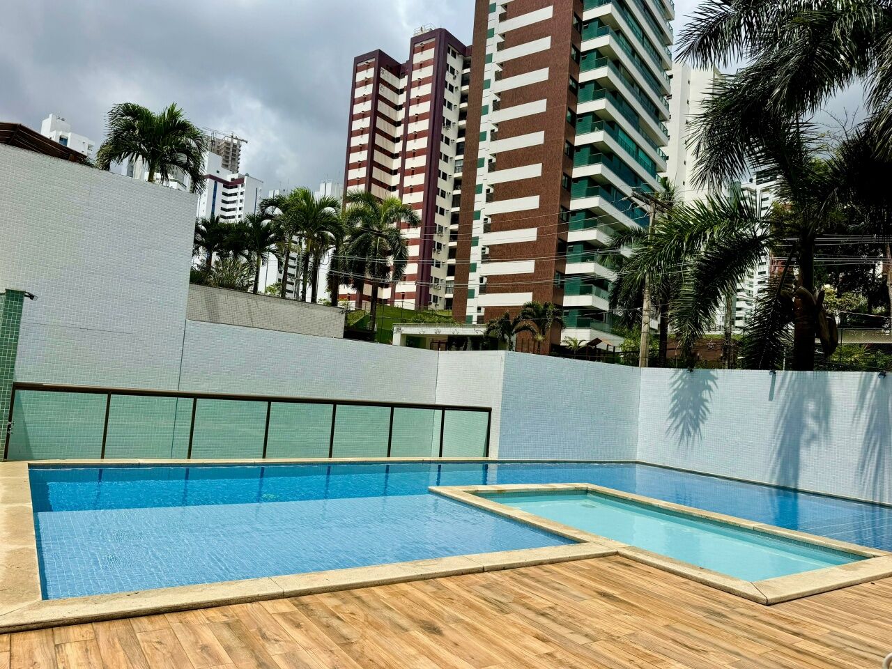Excelente apartamento, porteira fechada, nascente, fino acabamento, de 162m², com 3 quartos, 3 suítes, piso em porcelanato, home office, varanda goumet incoporada com fechamento em reiki, sala de jantar, sala de estar, lavabo, armários planejados em todos os cômodos, projeto de iluminação, rebaixamento em gesso, cozinha espaçosa, área de serviço, vista mar, andar alto, e três vagas de garagem.