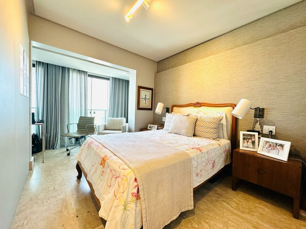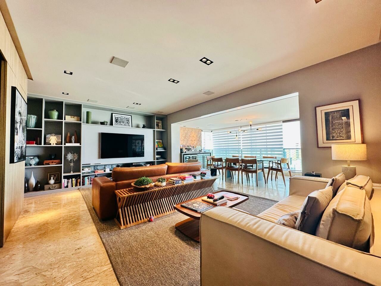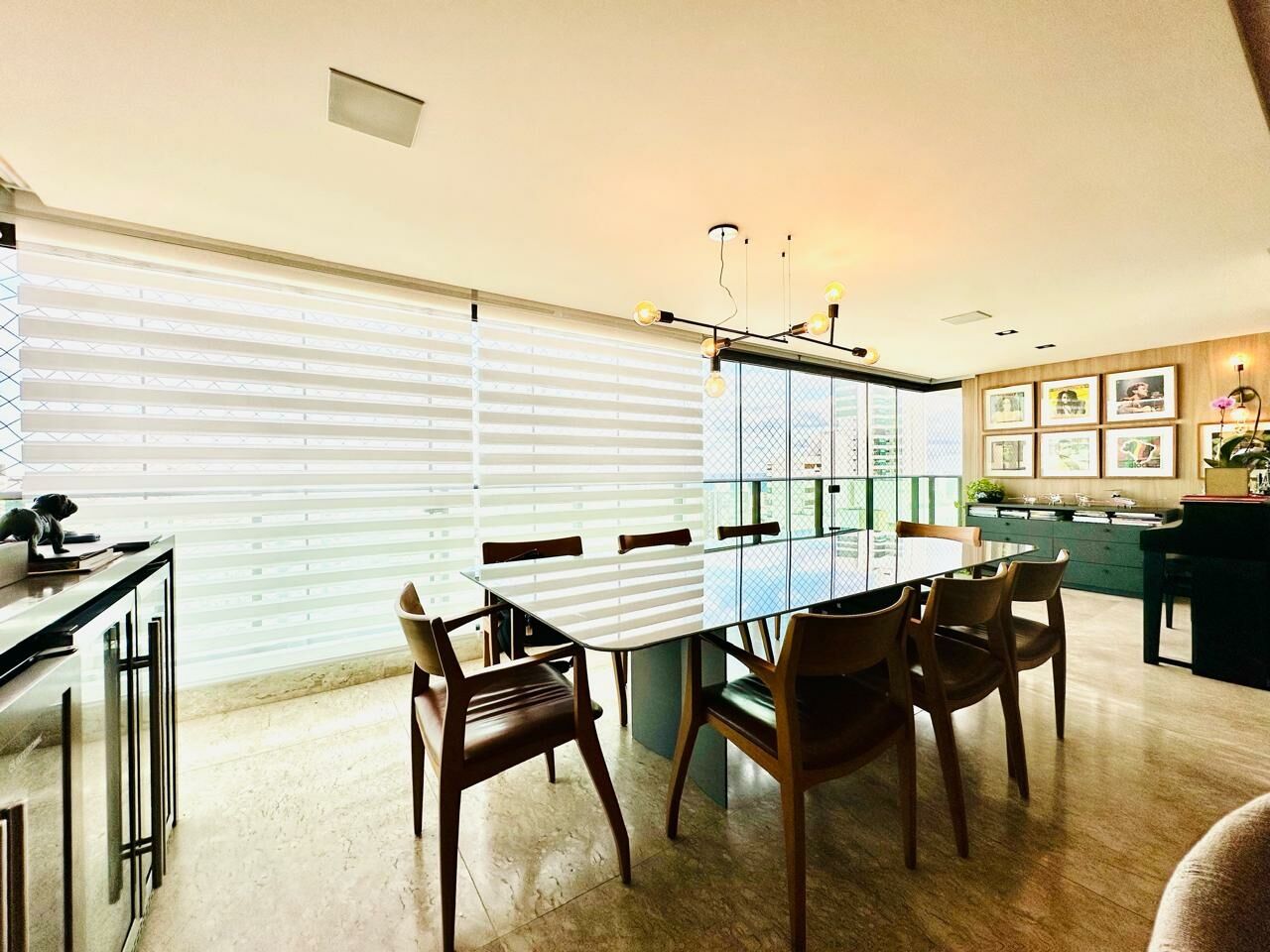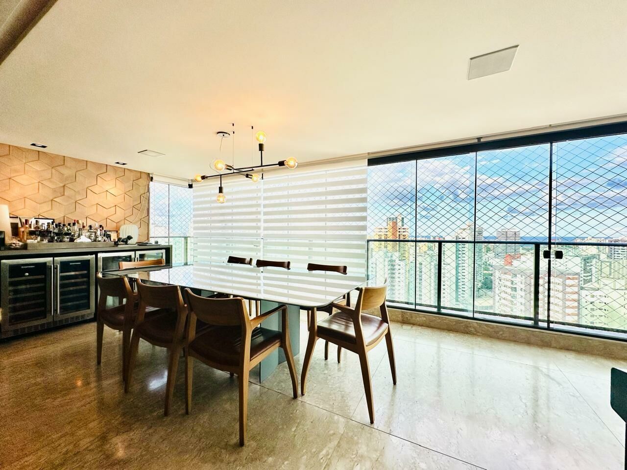 Excelente apartamento, nascente, porteira fechada, de 167m², com 04 quartos, 03 suítes, piso frio, closet, varanda gourmet incorporada com fechamento em reiki, escrit´rio, living amplo, sala de estar, sala de jantar, lavabo, armários planejados SCA em todos os cômodos, bancadas em granito, ar condicionado, teto rebaixado com projeto de iluminação, cozinha espaçosa, área de serviço com banheiro, andar alto, ventilação cruzada, e quatro vagas de garagem mais depósito.