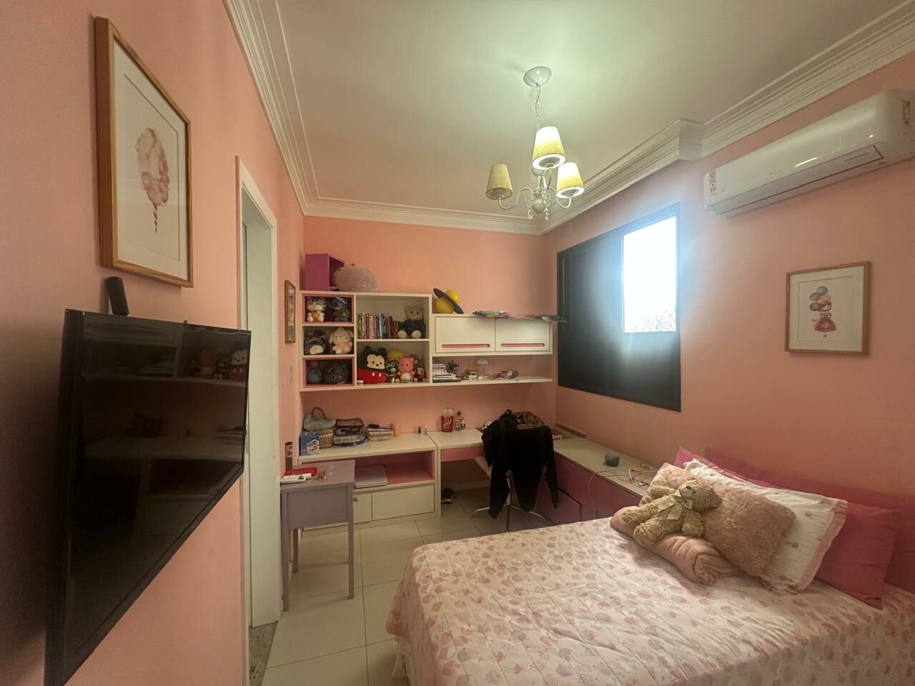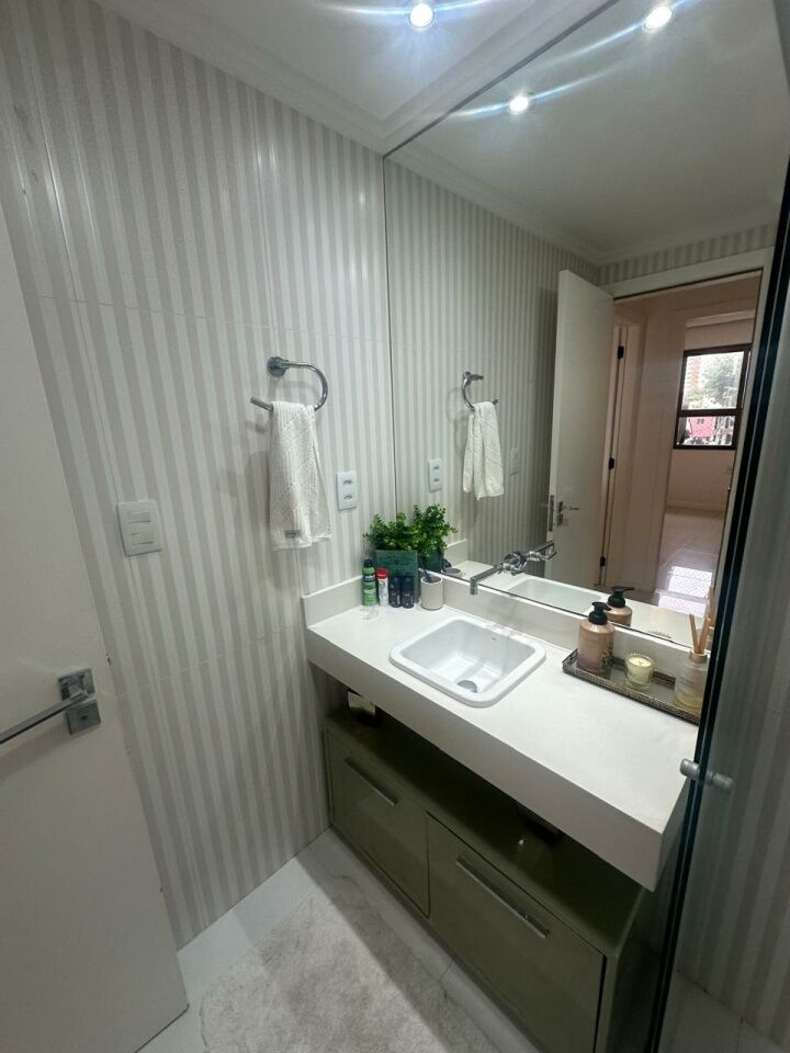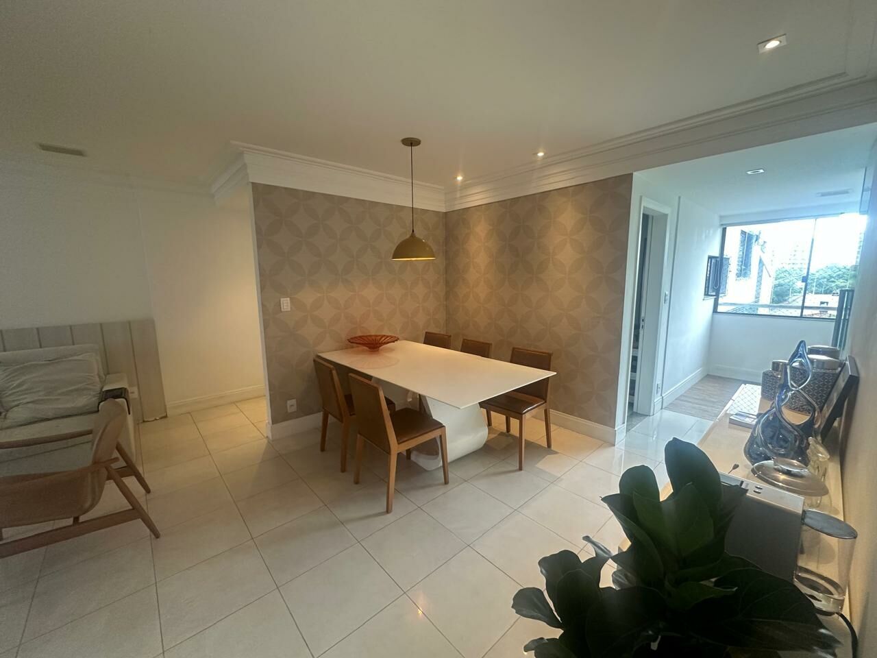 Excelente apartamento, nascente, fino acabamento, de 102m², com 3 quartos, 1 suíte, piso frio, gabinete, varanda incorporada com fechamento em reiki, living amplo, sala de estar, sala de jantar, lavabo, projeto de iluminação com teto rebaixado em gesso, armários planejados em todos os cômodos, ar condicionado, cozinha espaçosa, dependência completa, andar intermediário, e duas vagas de garagem.