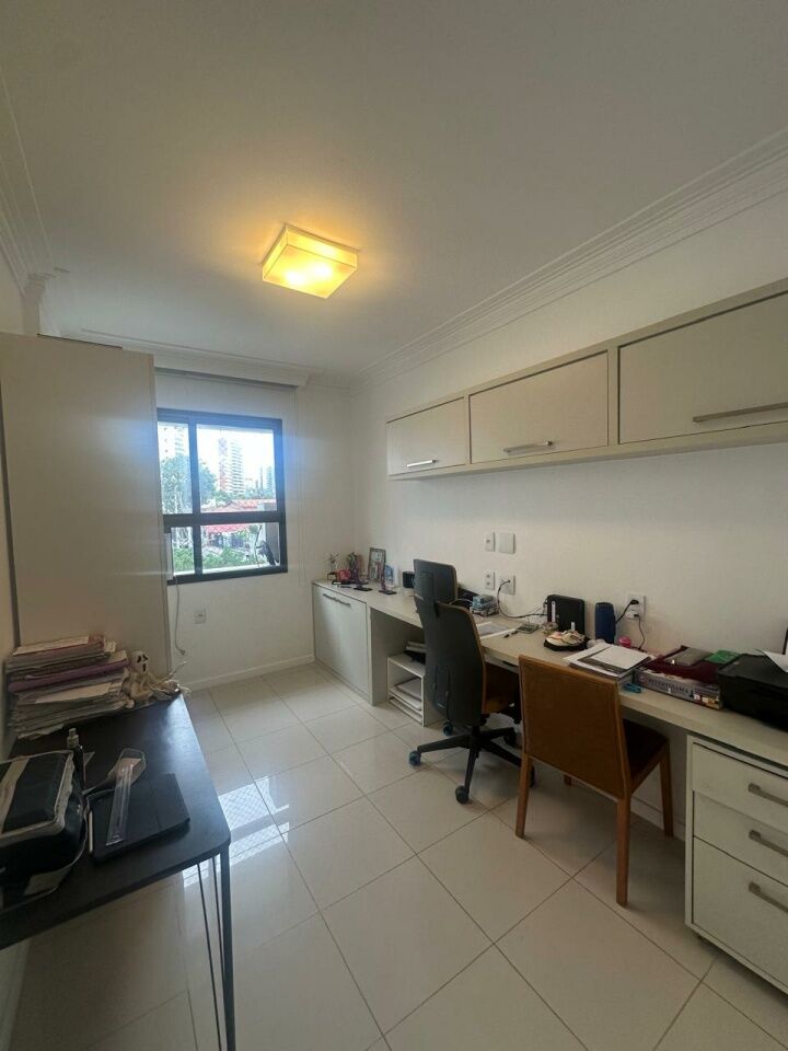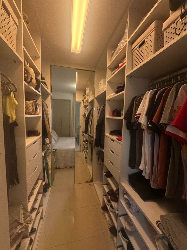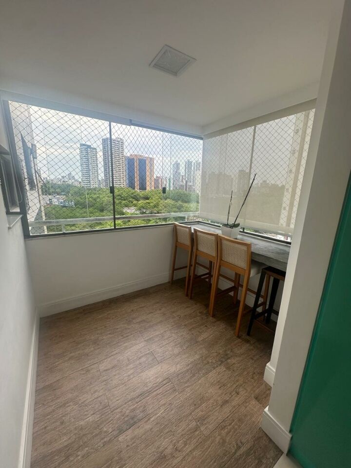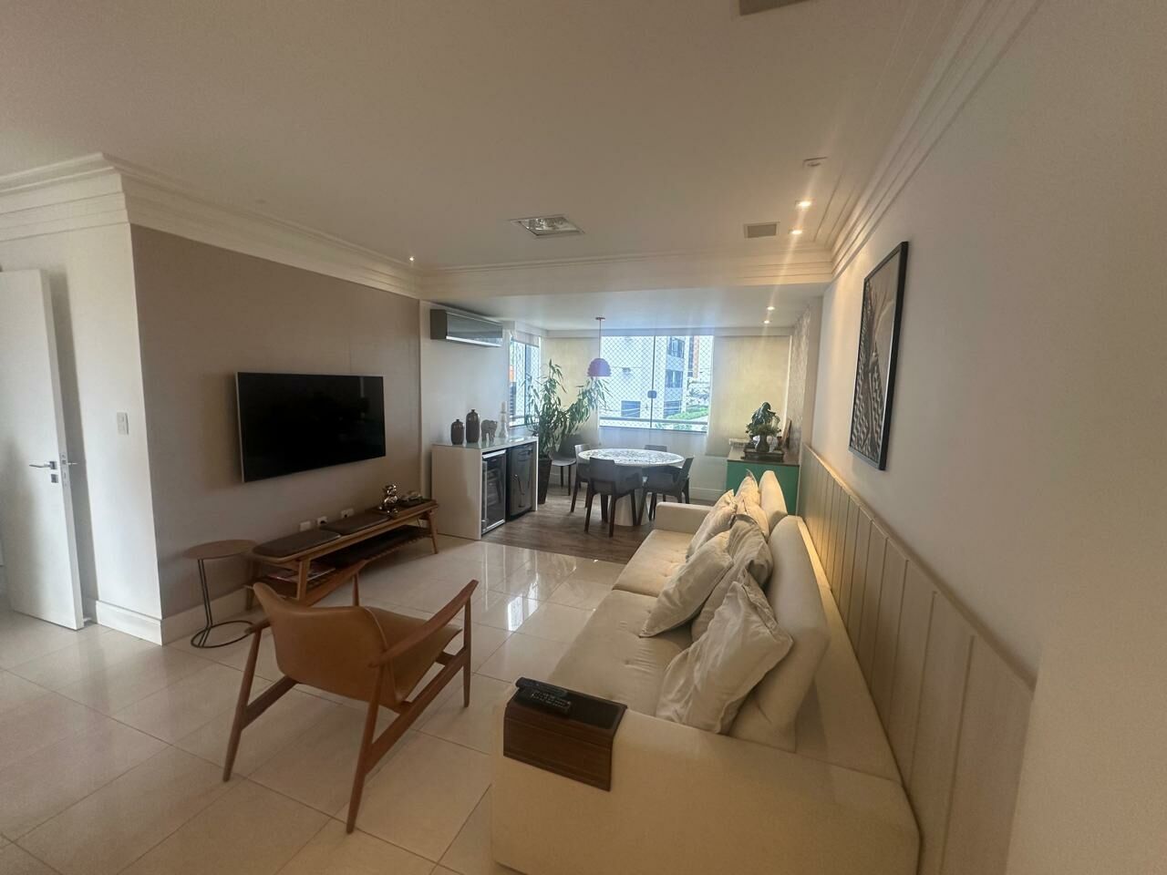 Excelente apartamento, nascente, fino acabamento, de 102m², com 3 quartos, 1 suíte, piso frio, gabinete, varanda incorporada com fechamento em reiki, living amplo, sala de estar, sala de jantar, lavabo, projeto de iluminação com teto rebaixado em gesso, armários planejados em todos os cômodos, ar condicionado, cozinha espaçosa, dependência completa, andar intermediário, e duas vagas de garagem.