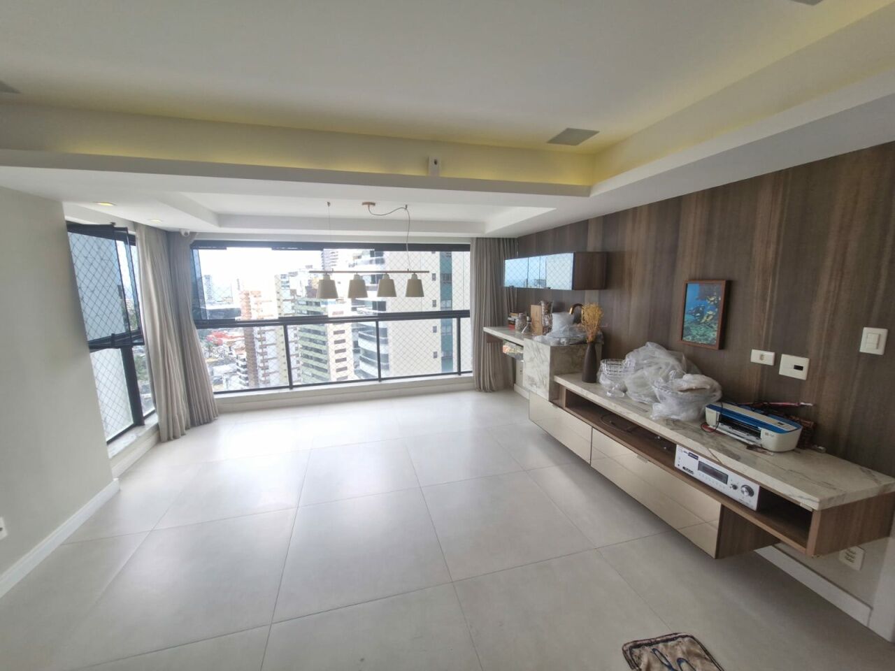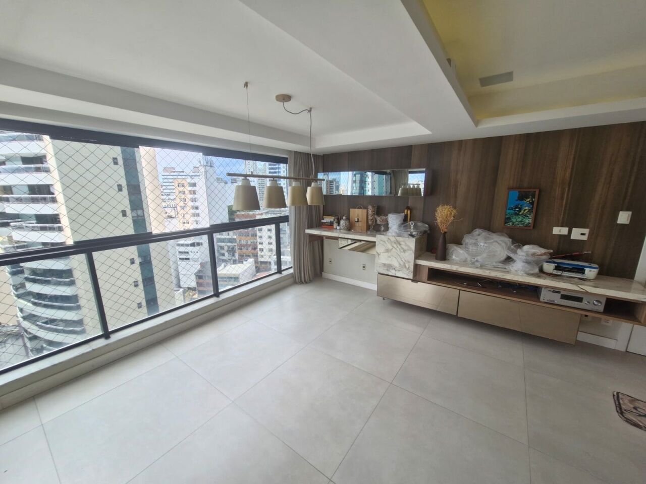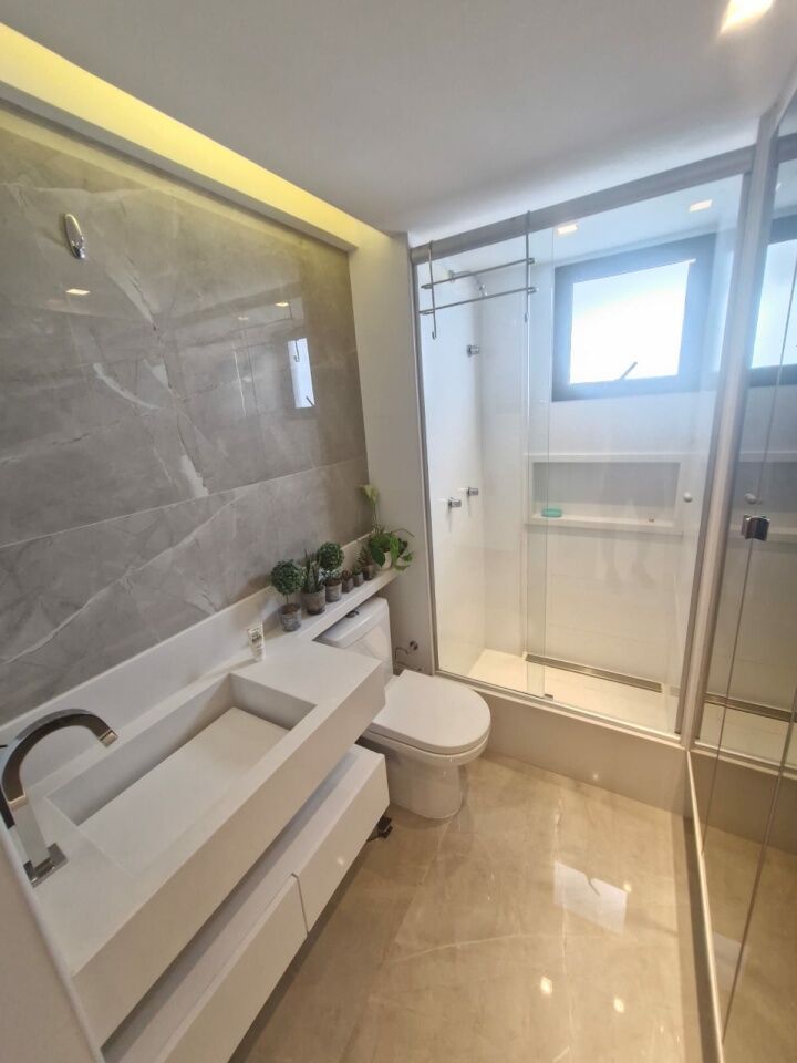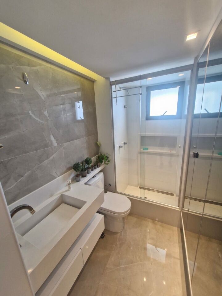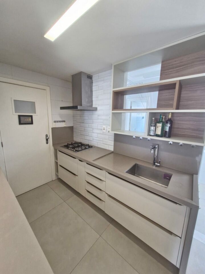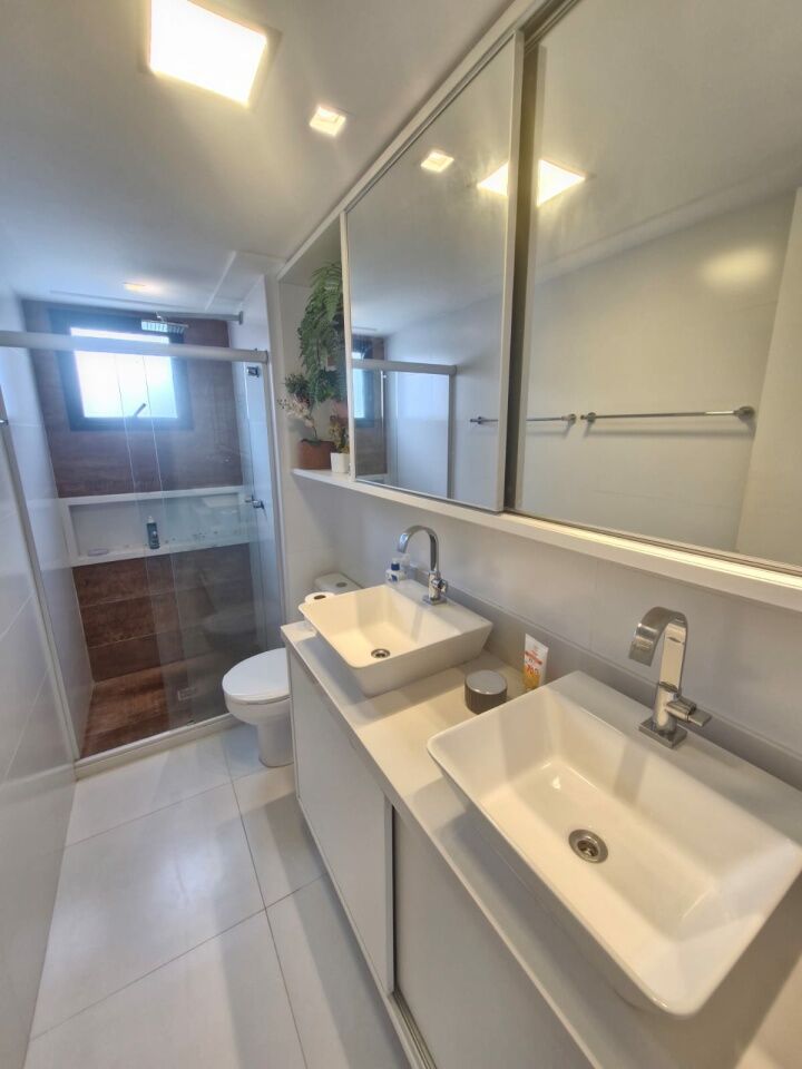 Excelente apartamento, fino acabamento, de 102m², orignalmente com 3 quartos, revertidos pra 2 suítes, piso frio, varanda incorporada com fechamento em reiki, living amplo, sala de estar, sala de jantar, lavabo, armários planejados em todos os cômodos, ar condicionado, cozinha espaçosa, dependência completa, andar baixo, e duas vagas de garagem.