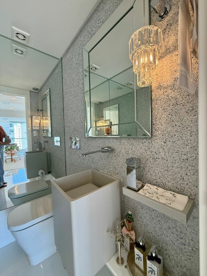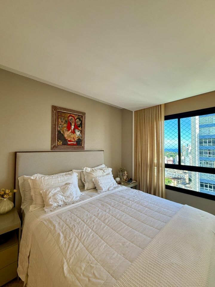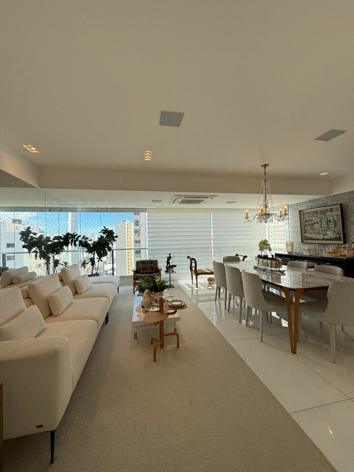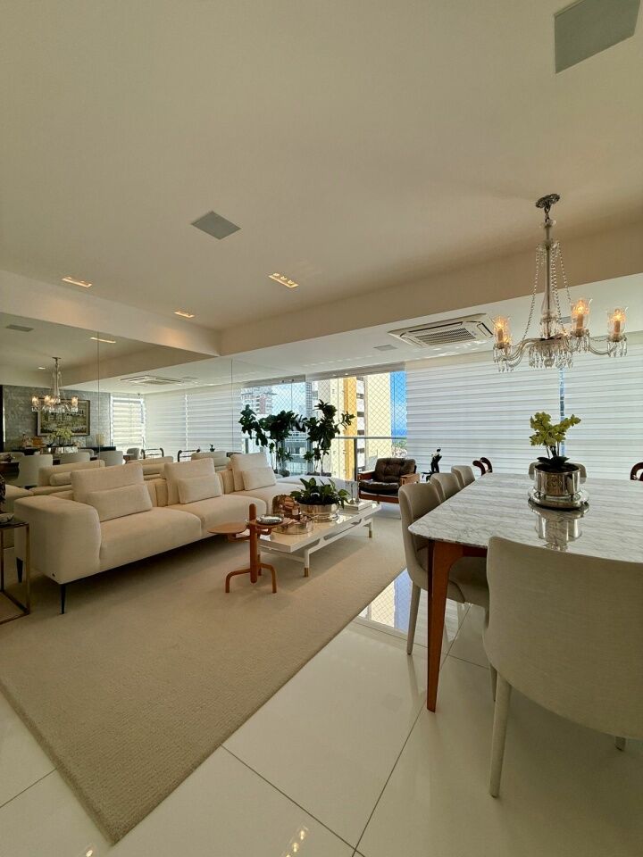 Excelente apartamento, porteria fechada, fino acabamento, de 108m², originalmente com 03 quartos, revertidos pra 02 suítes, closet, varanda incorporada com fechamento em reiki, living amplo, lavabo, espelhos ornato, portas laqueadas, piso nanoglass, sala de estar, sala de jantar, armários planejados Kitchens em todos os cômodos, projeto de iluminação, teto rebaixado, ar condicionado, cozinha espaçosa, vista mar, área de serviço, andar intermediário.