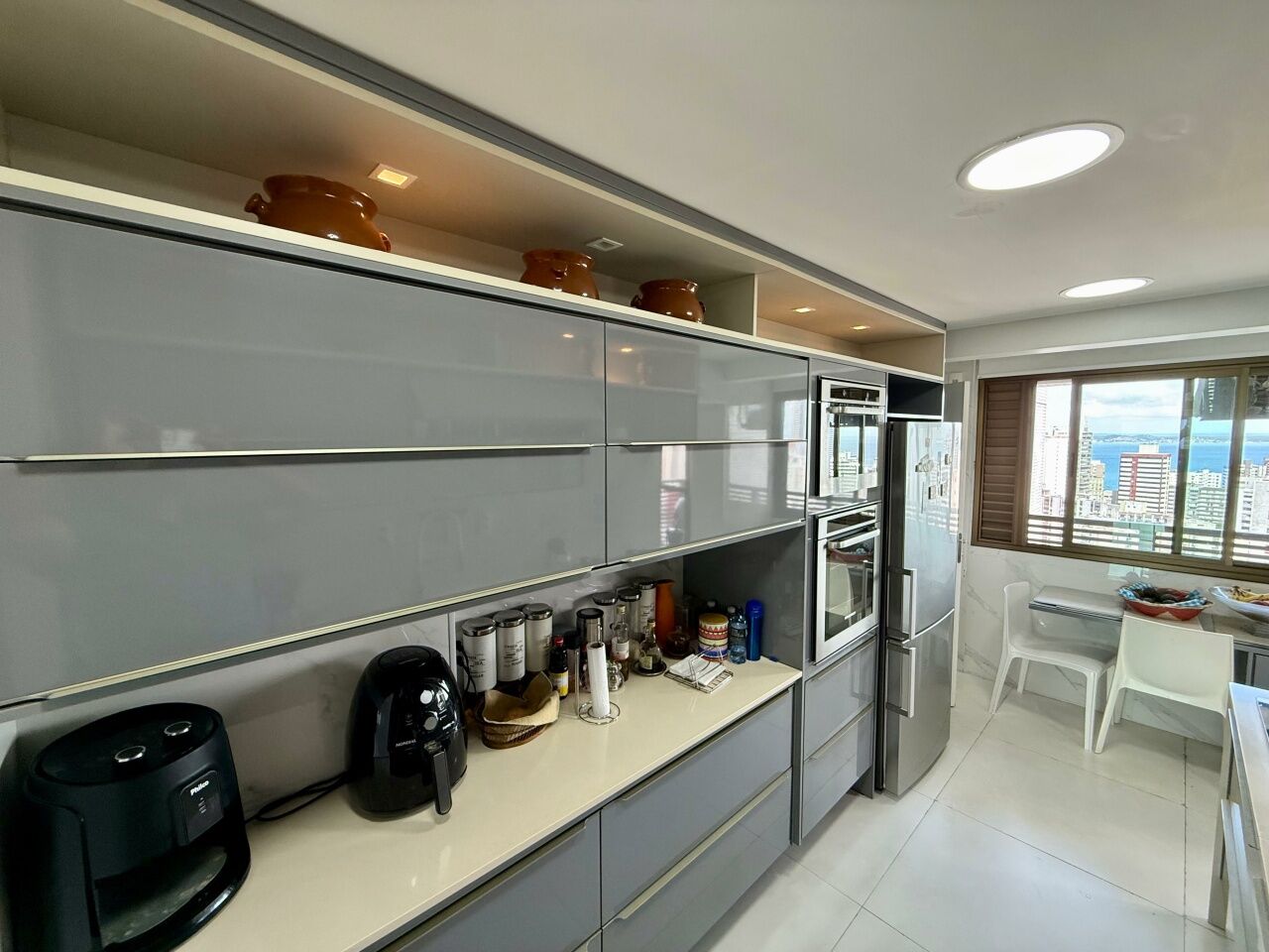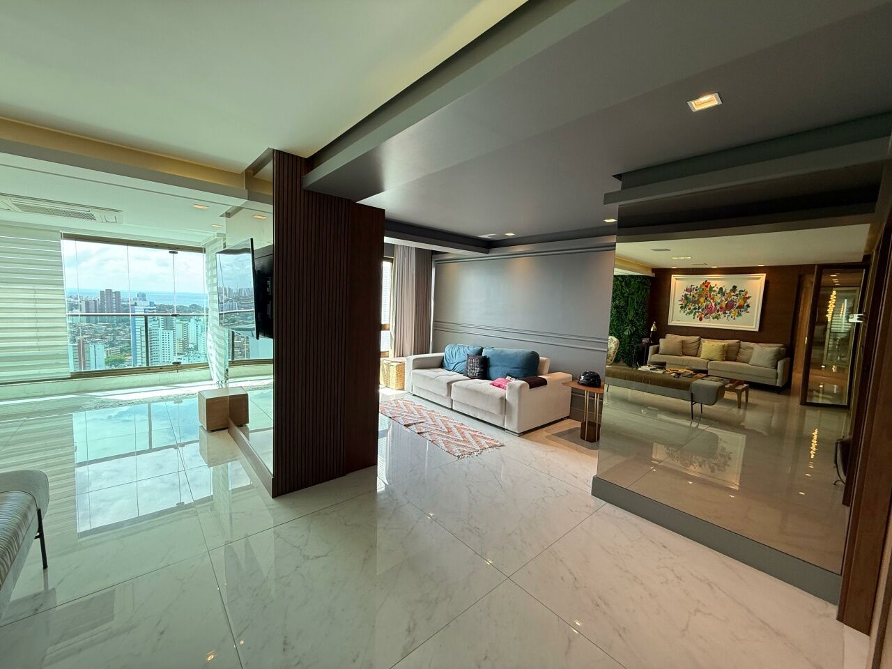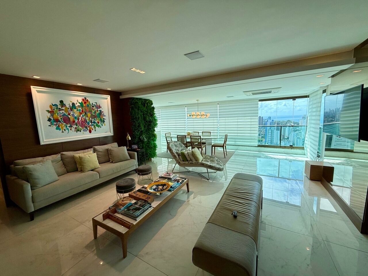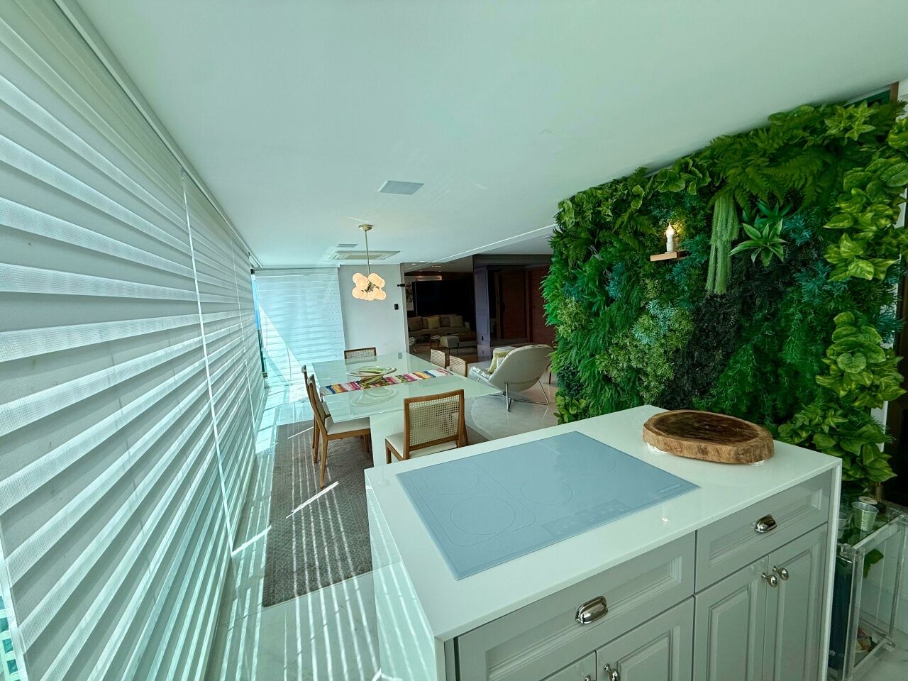 Excelente apartamento alto padrão, porteira fechada, nascente, vista mar, finamente decorado, de 185m², com 3 quartos, 3 suítes, closet, gabinete, varanda gourmet incoporada com fechamento em reiki, home theater, adega seca, living amplo, sala de estar, sala de jantar, lavabo, armários planejados em todos os cômodos, projeto de iluminação, teto rebaixado, ar condicionado, cozinha espaçosa, área de serviço, dependência completa, andar alto, e três vagas de garagem mais depósito.