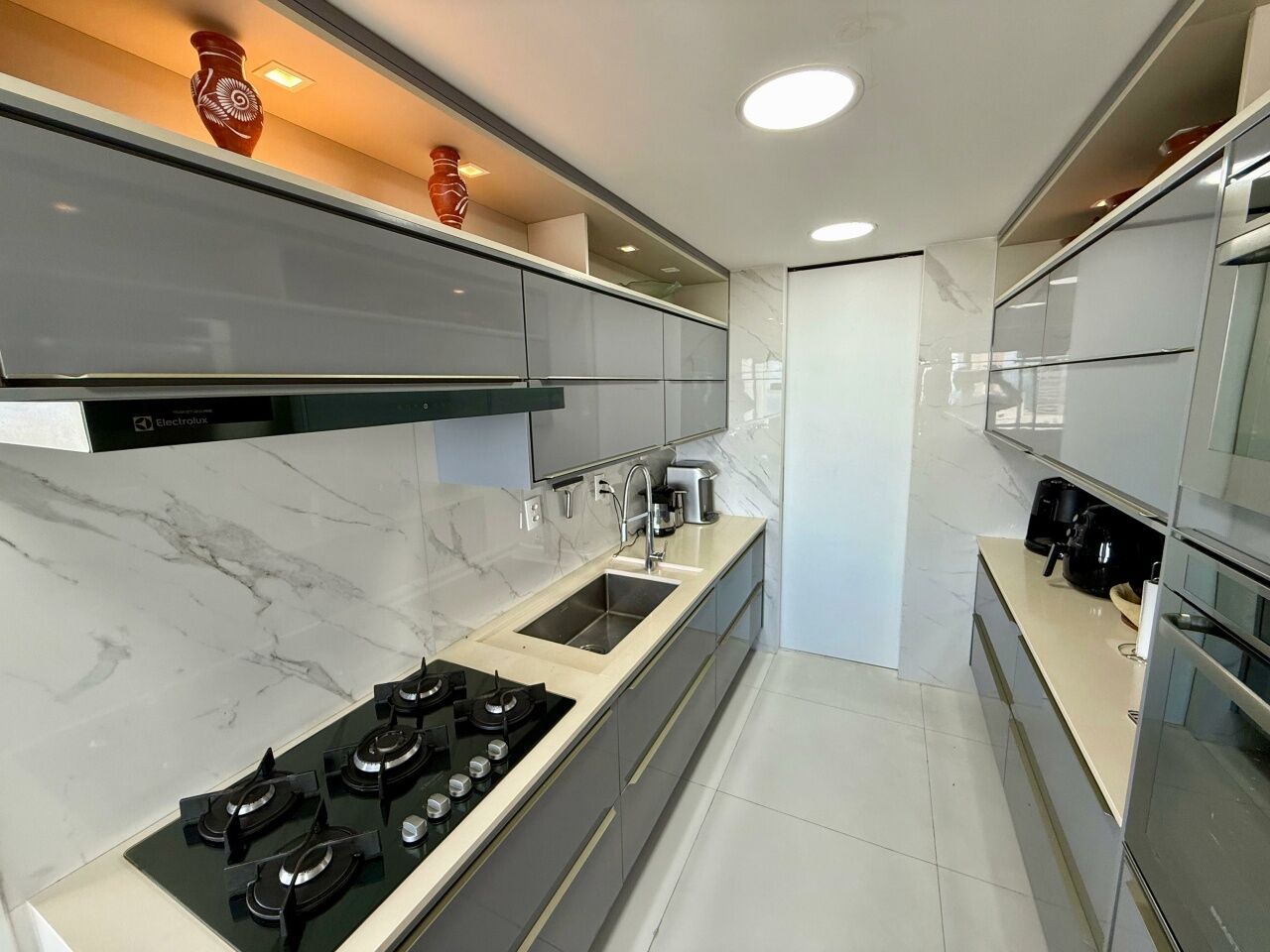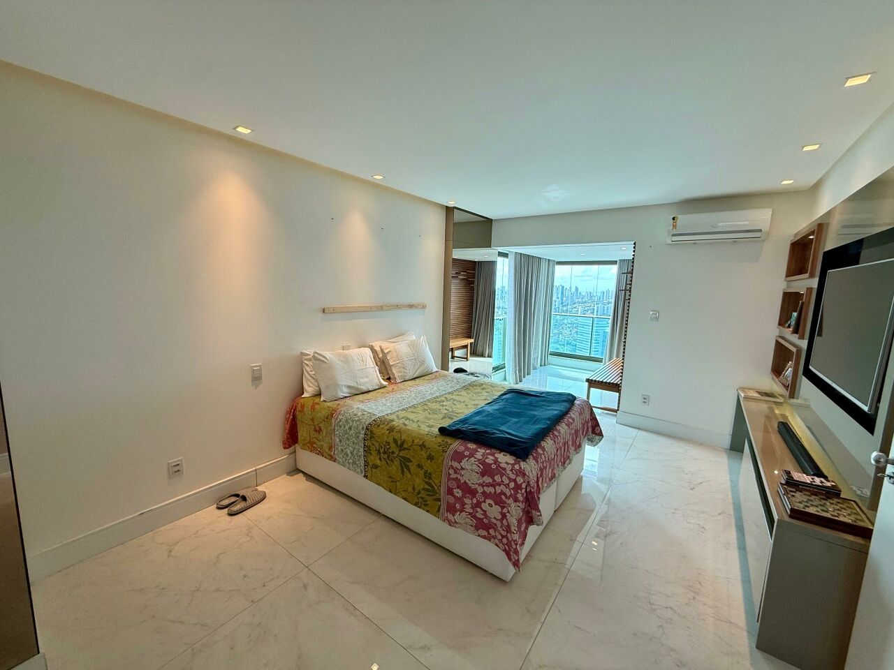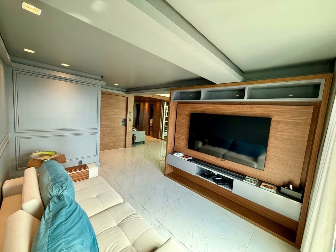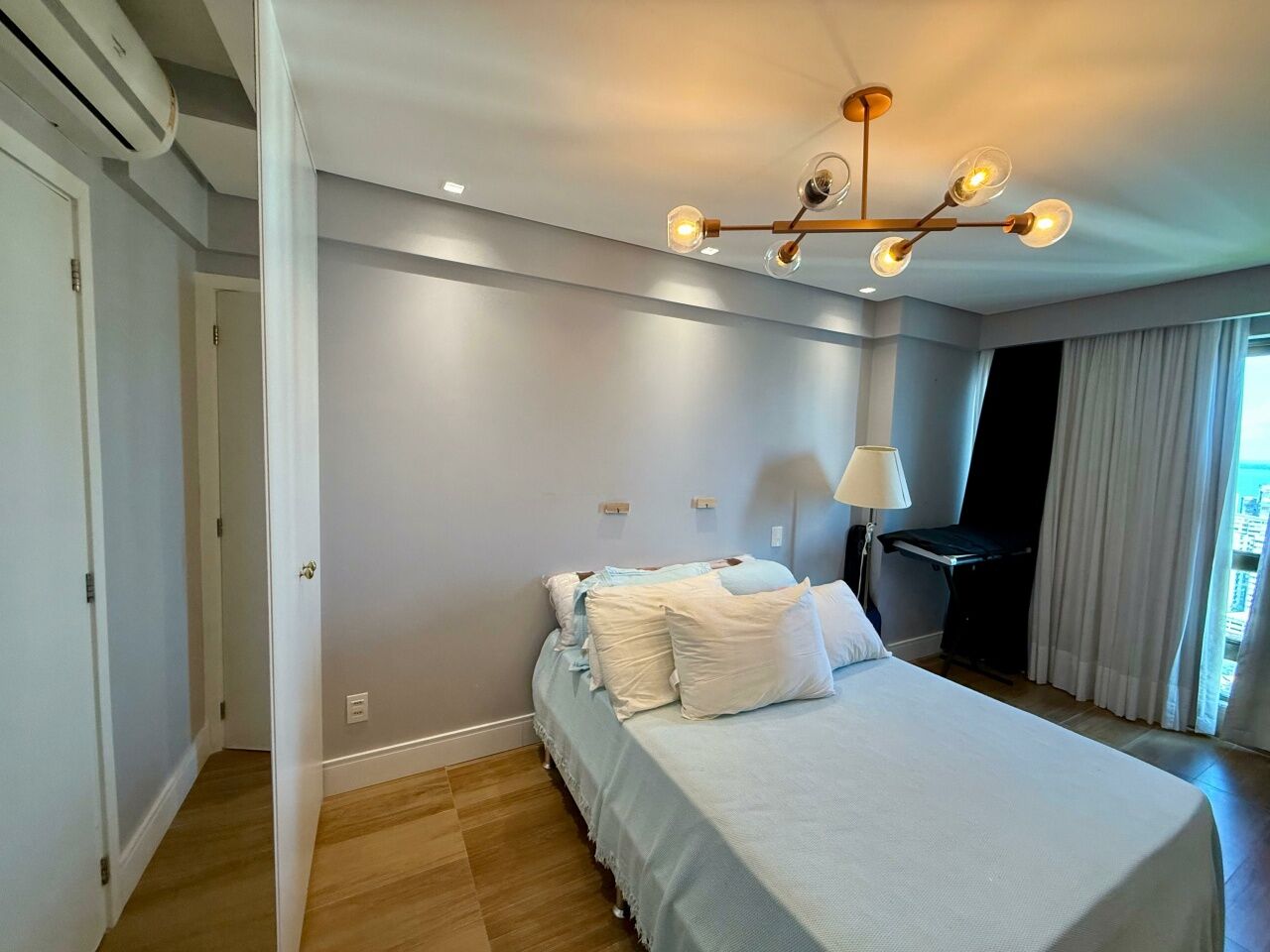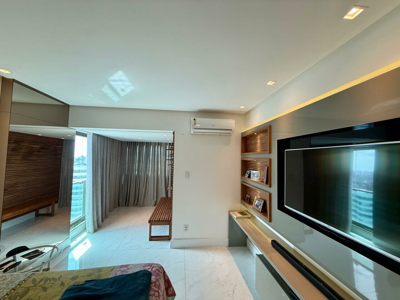 Excelente apartamento alto padrão, porteira fechada, nascente, vista mar, finamente decorado, de 185m², com 3 quartos, 3 suítes, closet, gabinete, varanda gourmet incoporada com fechamento em reiki, home theater, adega seca, living amplo, sala de estar, sala de jantar, lavabo, armários planejados em todos os cômodos, projeto de iluminação, teto rebaixado, ar condicionado, cozinha espaçosa, área de serviço, dependência completa, andar alto, e três vagas de garagem mais depósito.