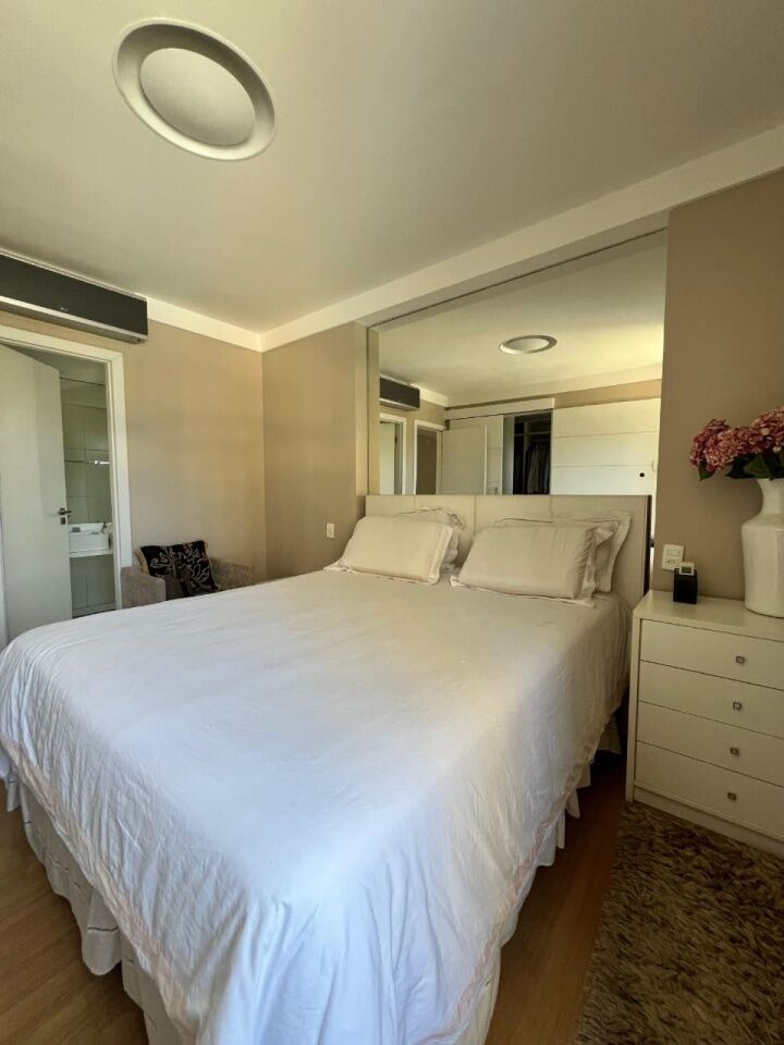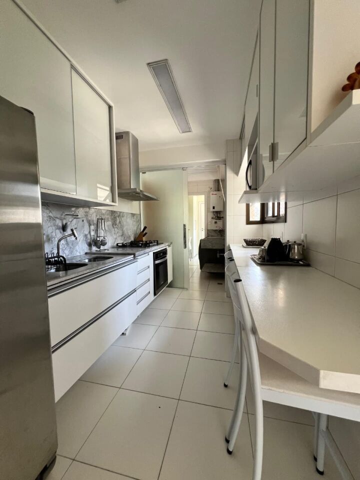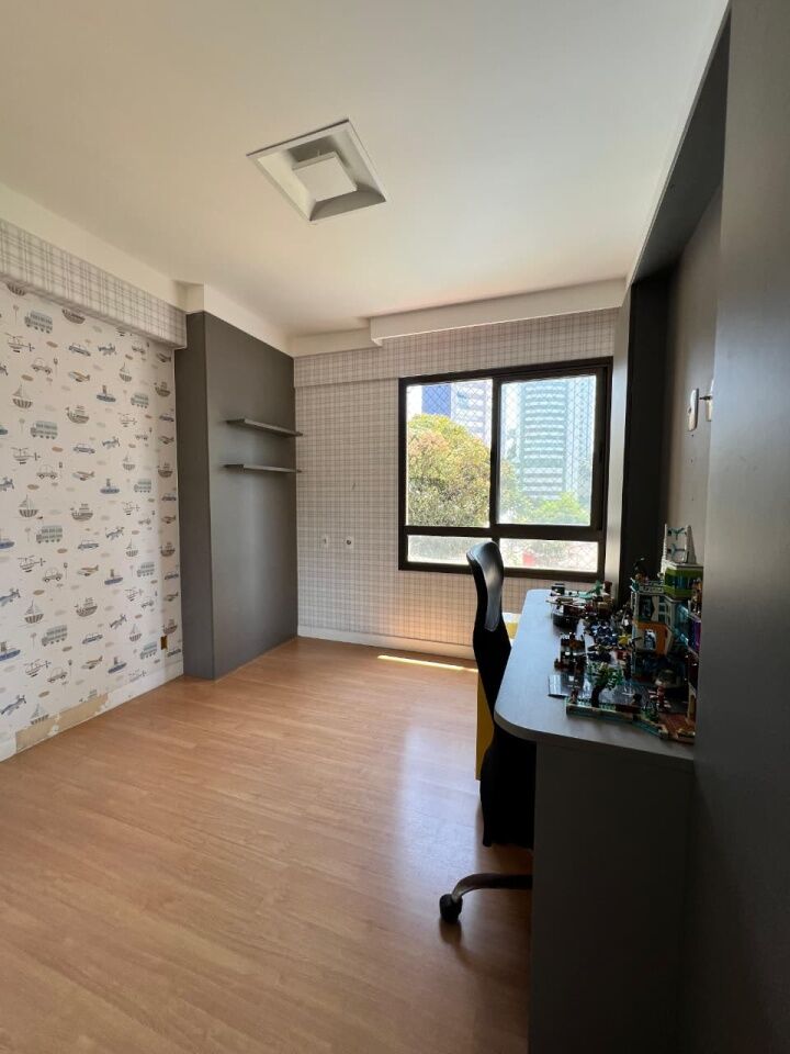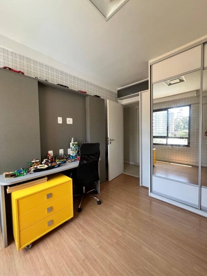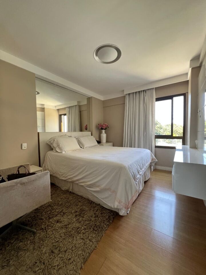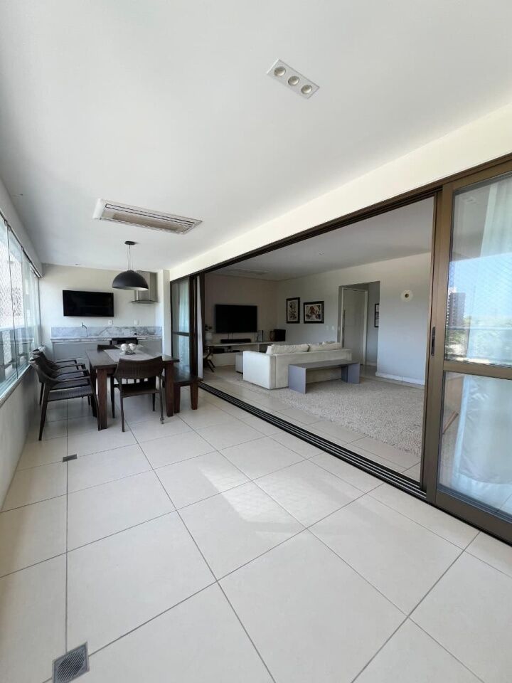 Excelente apartamento, nascente, fino acabamento, de 171m², com 3 quartos, 3 suítes, closet, piso frio, varanda gourmet com fechemento em reiki, gabinete, home office, sala de estar, sala de jantar, lavabo, armários planejados em todos os cômodos, ambientes climatizados, cozinha espaçosa, projeto de iluminação e teto rebaixado em gesso, andar intermediário, área de serviço, dependência completa, e quatro vagas de garagem.