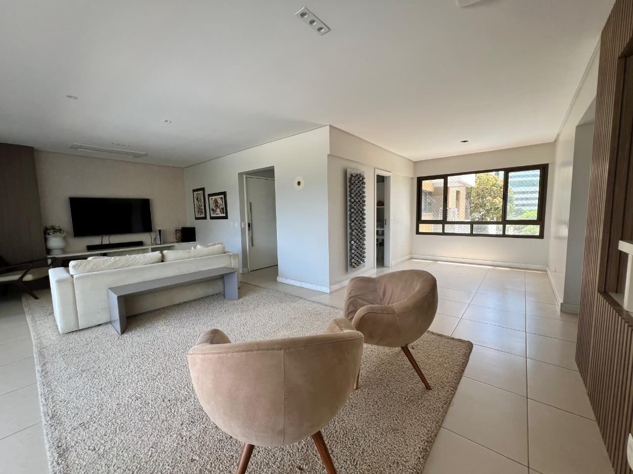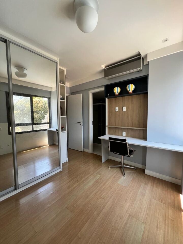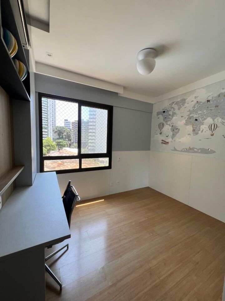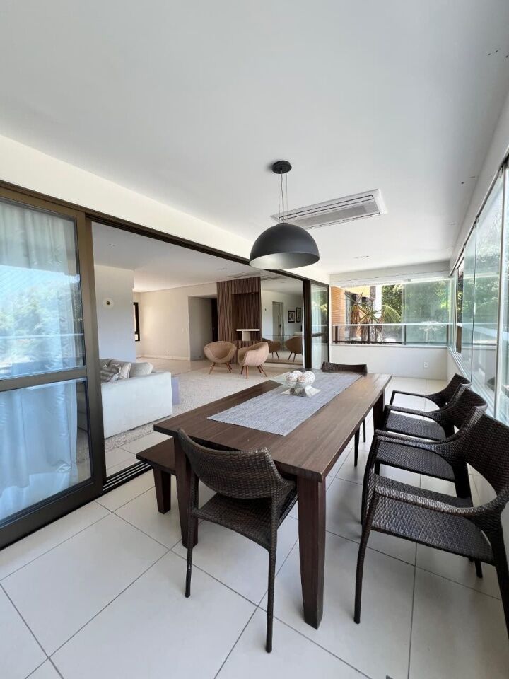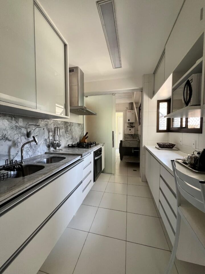 Excelente apartamento, nascente, fino acabamento, de 171m², com 3 quartos, 3 suítes, closet, piso frio, varanda gourmet com fechemento em reiki, gabinete, home office, sala de estar, sala de jantar, lavabo, armários planejados em todos os cômodos, ambientes climatizados, cozinha espaçosa, projeto de iluminação e teto rebaixado em gesso, andar intermediário, área de serviço, dependência completa, e quatro vagas de garagem.