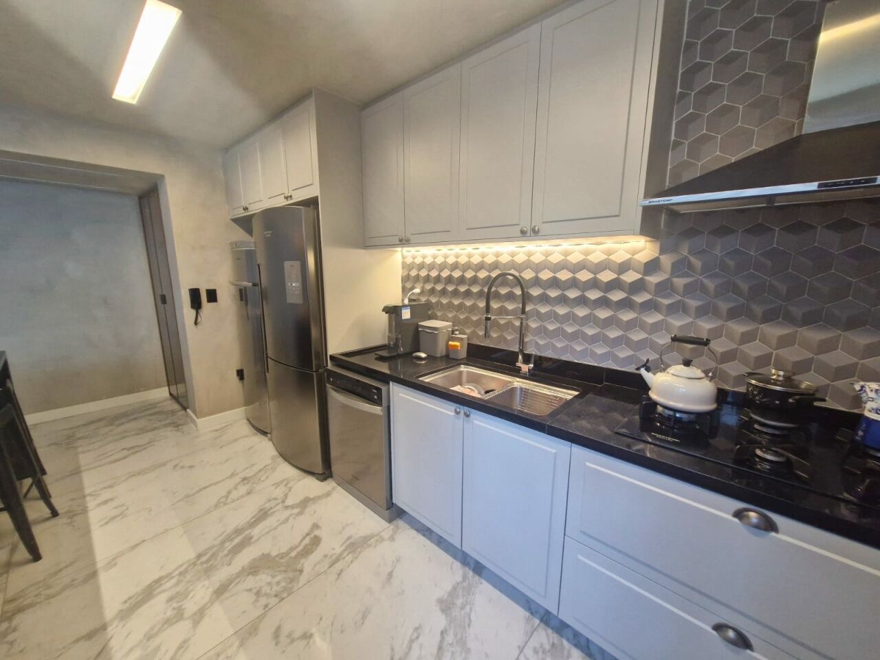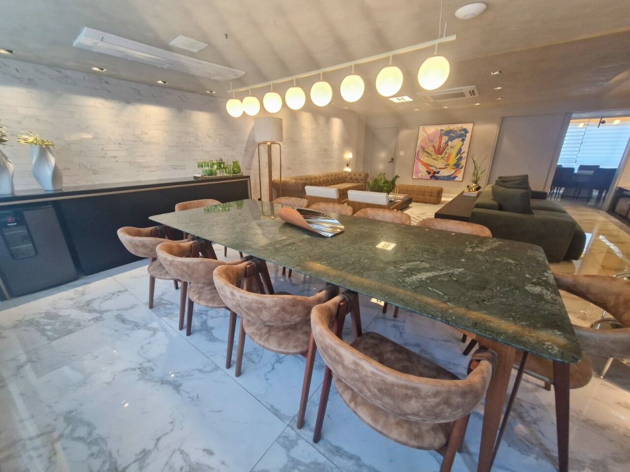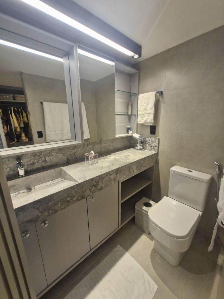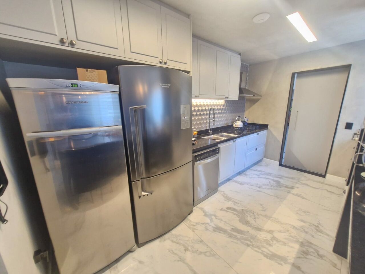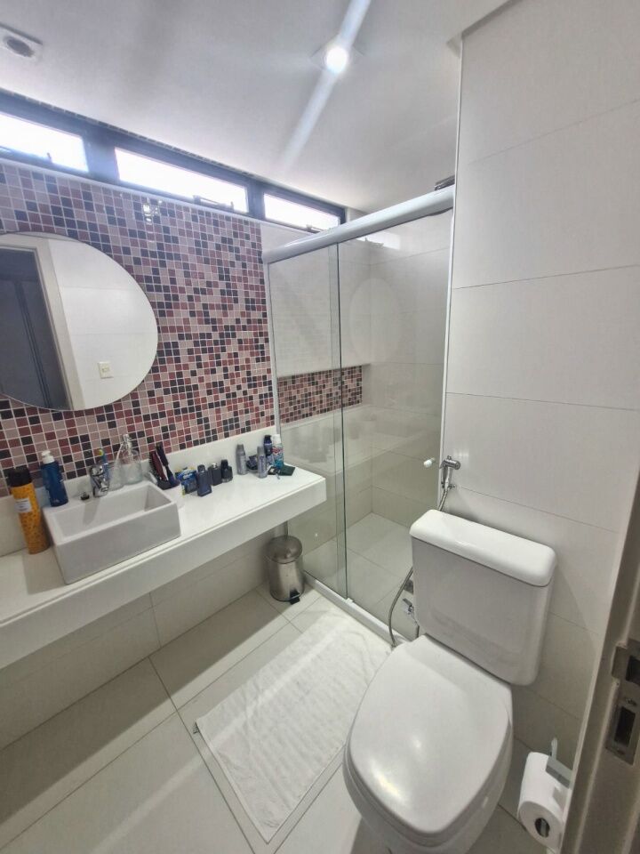 Excelente apartamento, porteira fechada, finamente decorado, de 200m², com 3 quartos, 3 suítes, piso frio, gabinete, closet, adega varanda com reiki, dining room, living room, lavabo, armários planejados em todos os cômodos, ambientes climatizados, cozinha na varanda, móveis e decoração definidos por designers, projeto de iluminação com teto rebaixado, depedência completa, e quatro vagas de garagem.
