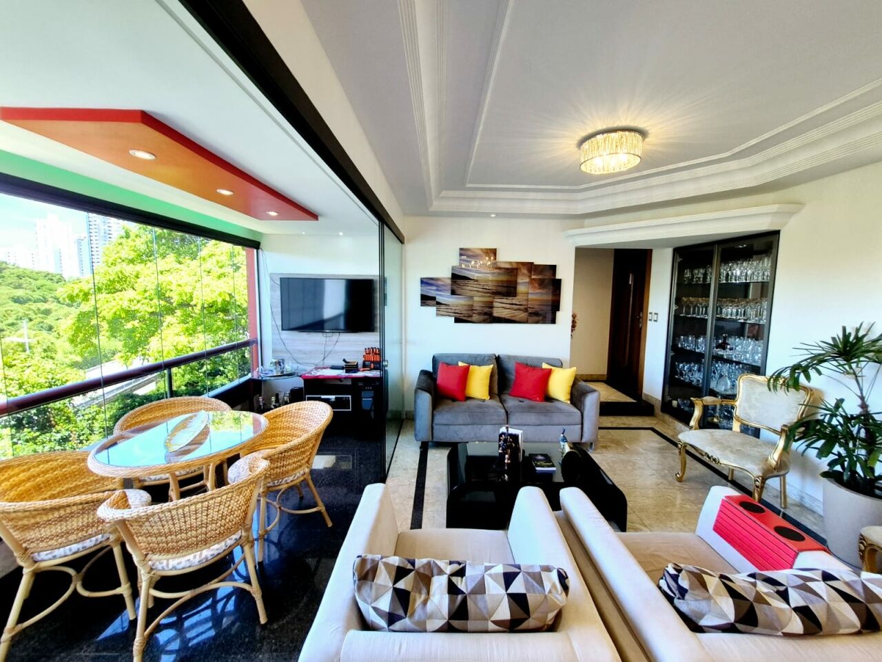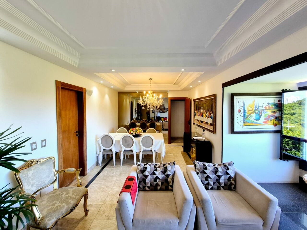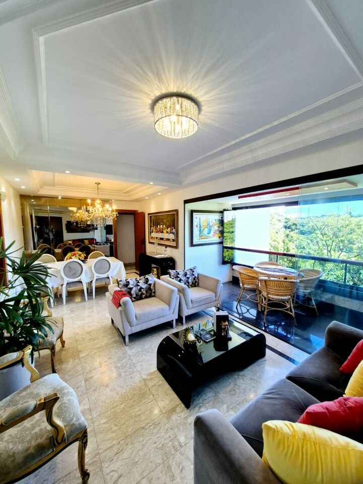 Excelente apartamento, finamente decorado, de 135m², 3 quartos, 1 suíte, nascente, piso frio, home office, home teather, varanda com fechamento em reiki, dining room, living room, lavabo, armários planejados em todos os cômodos, ambientes climatizados, cozinha com coifa, dependência, área de serviço, andar baixo, vista panorâmica, e 2 vagas de garagem.