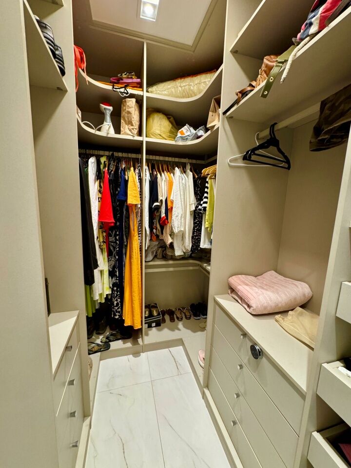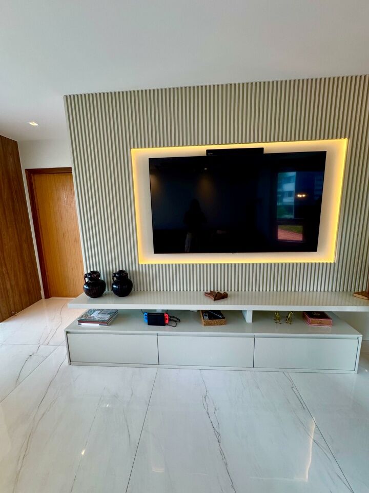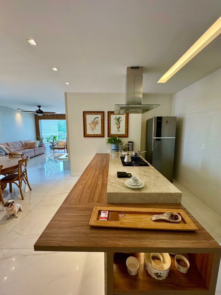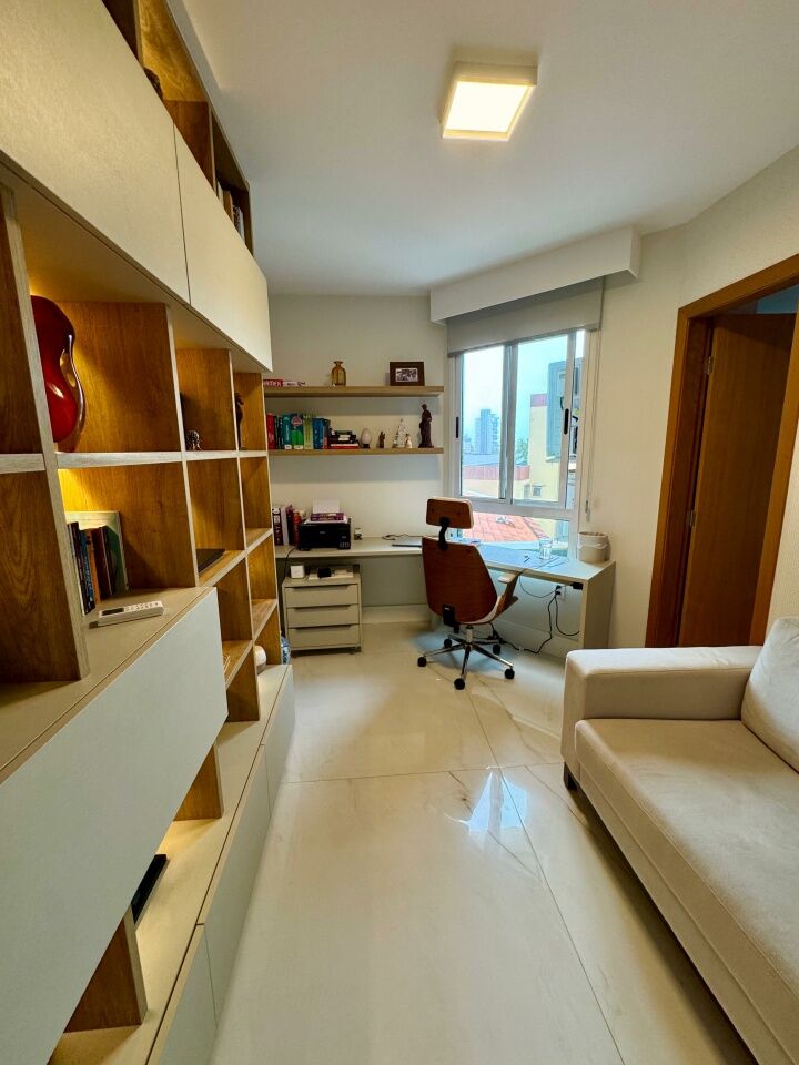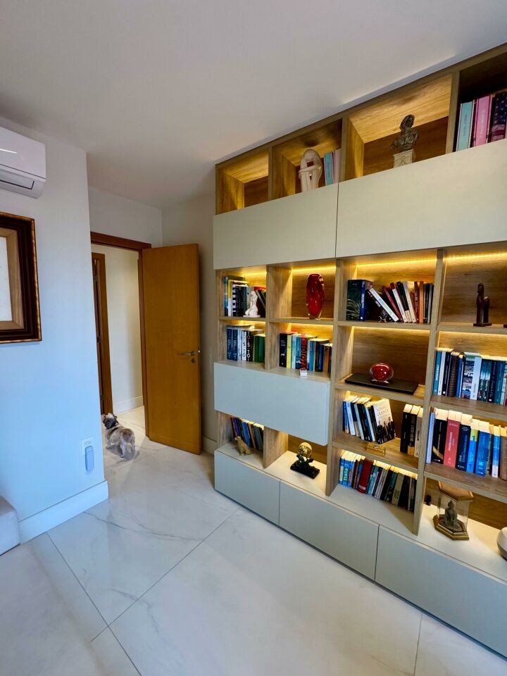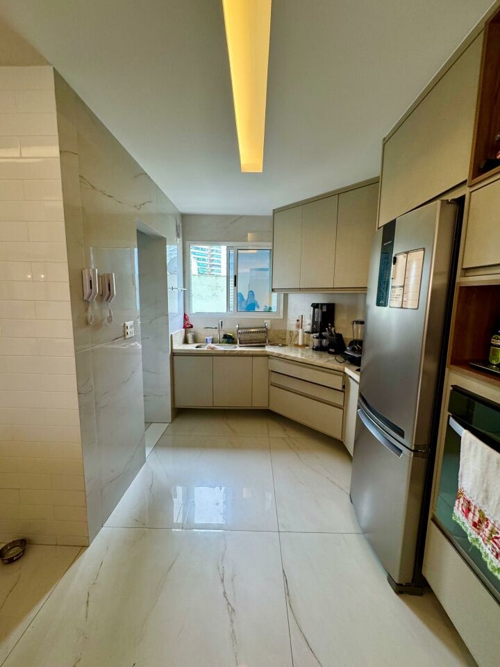 Excelente apartamento, nascente, finamente decorado, de 185m², com 4 quartos, 4 suítes, closet, piso em porcelanato, gabinete, varanda canadense, incorporada com fechamento em reiki, living amplo, sala de estar, sala de jantar, lavabo, armários planejados Romanzza em todos os cômodos, ambientes climatizados, roupeiro, projeto de iluminação, teto com rebaixamento em gesso, cozinha em ilha com coifa flutuante, dependência completa, andar baixo, vista mar frontal, e três vagas de garagem cobertas, mais depósito.