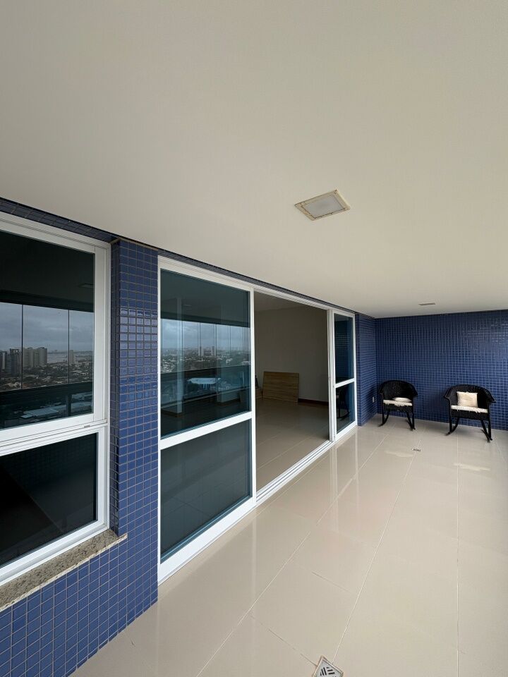 Excelente apartamento, nascente, finamente decorado, de 146m², com 3 quartos, 3 suítes, varanda gourmet incorporada com fechemento em reiki, ?piso em porcelanato, bancadas em Nanoglass, gabinete, sala de estar, sala de jantar, lavabo, armários planejados em todos os cômodos, ambientes climatizados, cozinha espaçosa, projeto de luminotecnico e rebaixamento gesso, cortinas automatizadas, vista mar, andar alto, dependência completa, e três vagas de garagem cobertas, mais depósito.