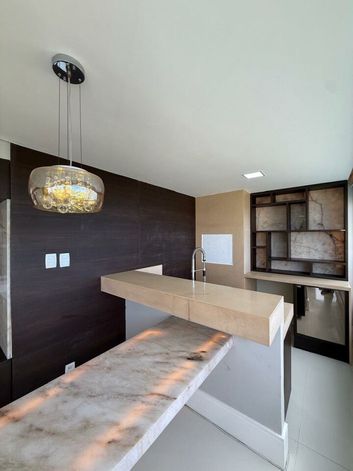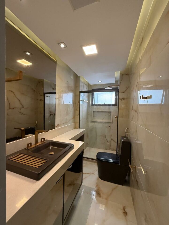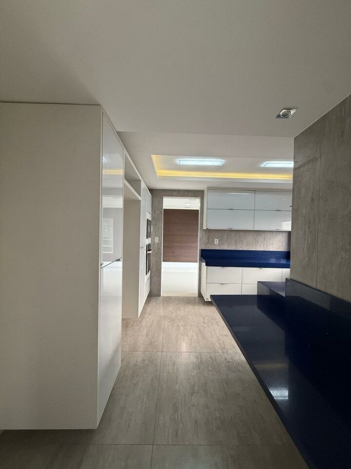Excelente apartamento, nascente, vista mar, fino acabamento, com 226m², com 3 quartos, 3 suítes, piso fio, closet, home office, varanda gourmet incorporada com fechamento em reiki, living amplo, sala de estar, sala de jantar, lavabo, armários planejados em todos os cômodos, projeto de iluminação, teto com rebaixamento em gesso, ar condicionado, cozinha espaçosa, área de serviço com banheiro, vista mar, despensa, dependência completa, andar alto e três vagas de garagem mais depósito.