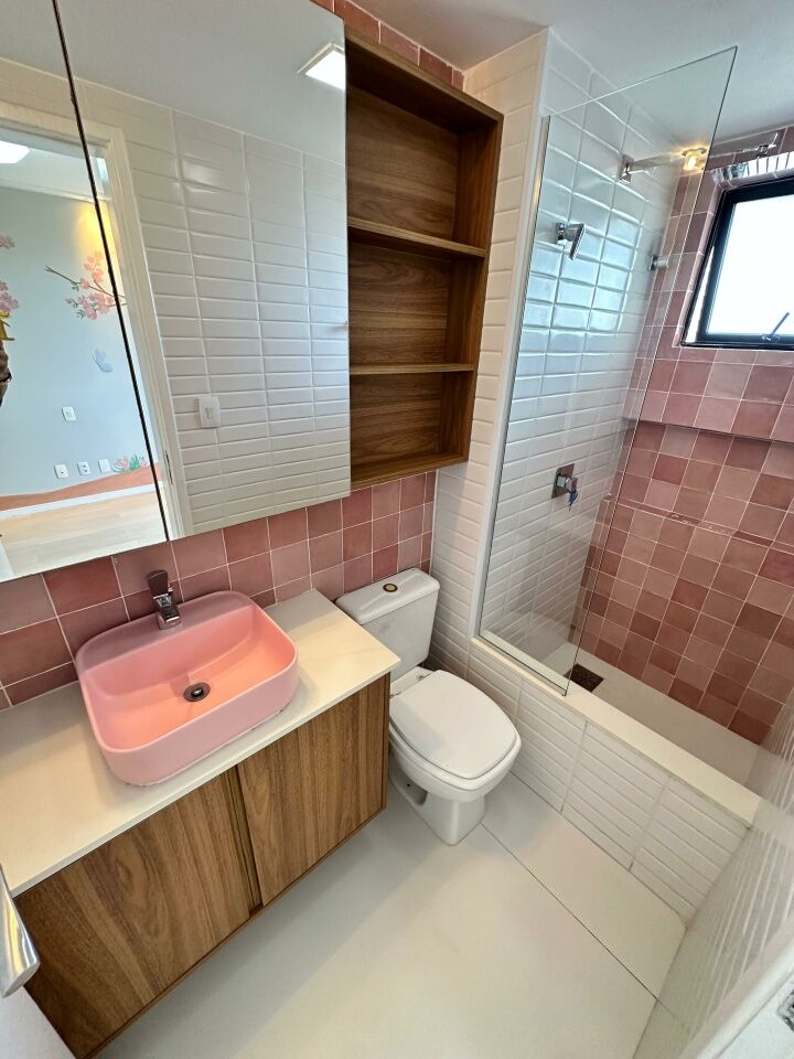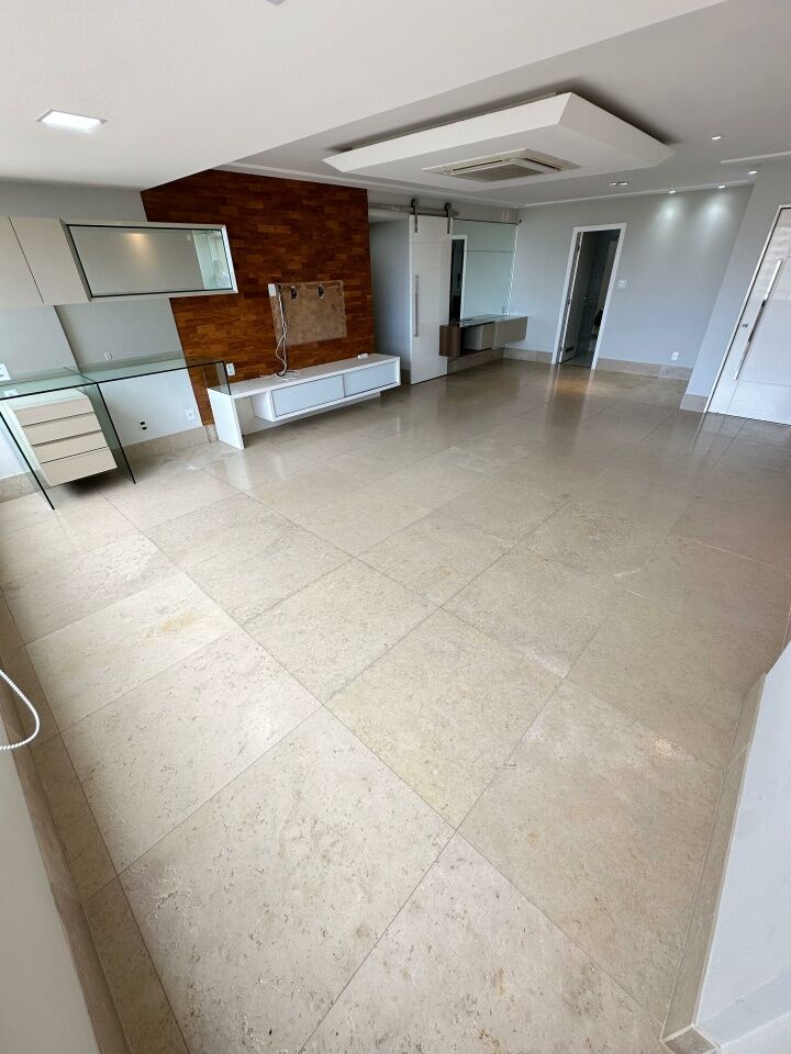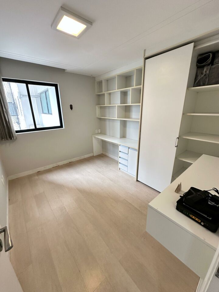 Excelente apartamento, fino acabamento, de 158m², com 4 quartos, 2 suítes, piso frio, varanda incorporada com fechamento em reiki, living amplo, sala de estar, sala de jantar, lavabo, teto rebaixado, projeto de iluminação, ambientes climatizados, cozinha espaçosa, área de serviço com banheiro, vista mar, andar alto, duas vagas de garagem.