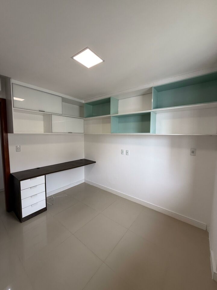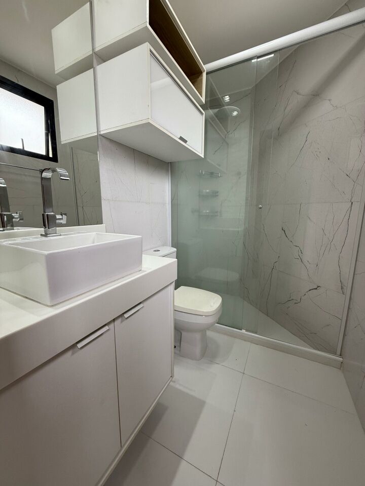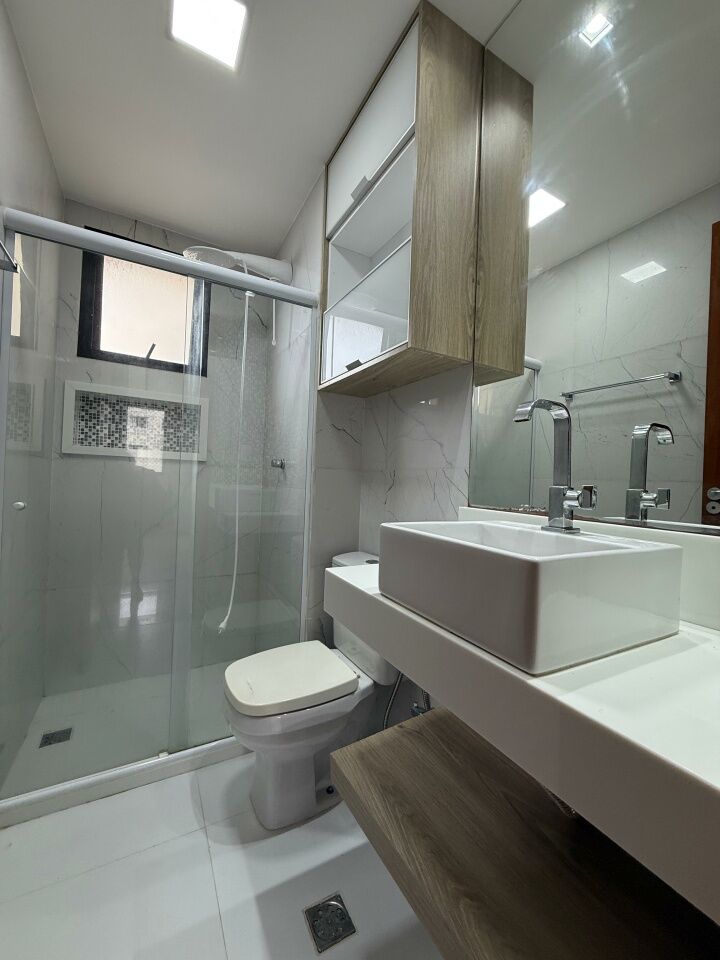 Excelente apartamento, nascente, fino acabamento, com 95m², com 3 quartos, 1 suíte, piso em porcelanato, home office, varanda incorporada com fechamento em reiki, living amplo, sala de estar, sala de jantar, lavabo, armários planejados em todos os cômodos, projeto de iluminação, teto com rebaixamento em gesso, ar condicionado, cozinha espaçosa, área de serviço com banheiro, andar alto e duas vagas de garagem cobertas.