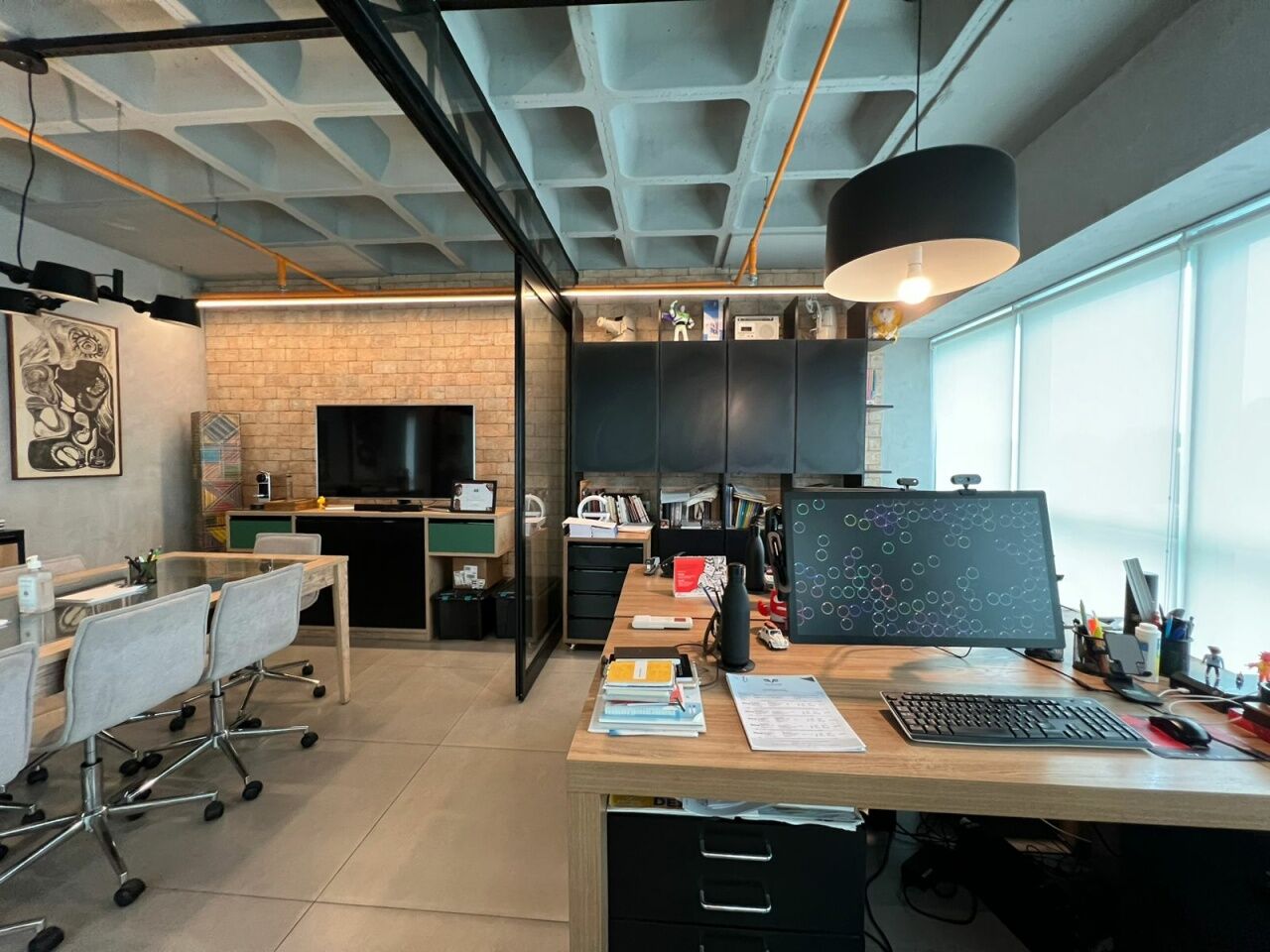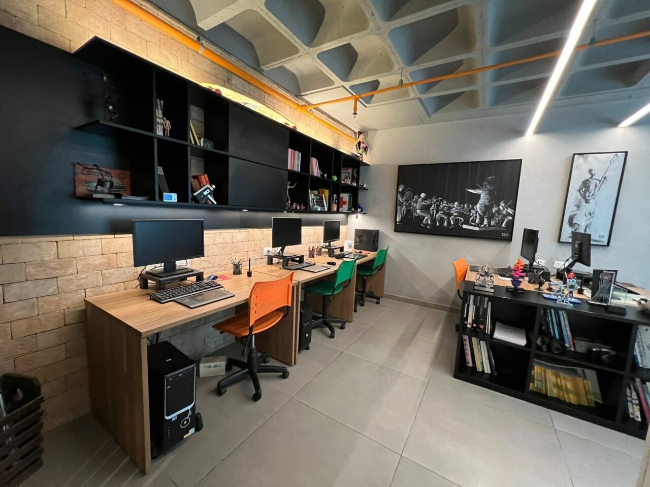 Excelente Sala Comercial e Odonto-médica, 65m², andar baixo, fachada moderna, sala toda reformada com piso em porcelanato, projeto de iluminação, ar condicionados K7 de 4 Vias, moveis e armários planejados em todos os cômodos, e duas vagas de garagem.