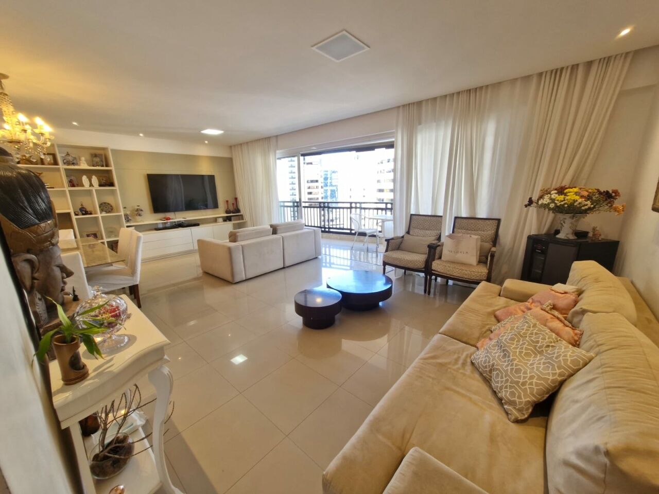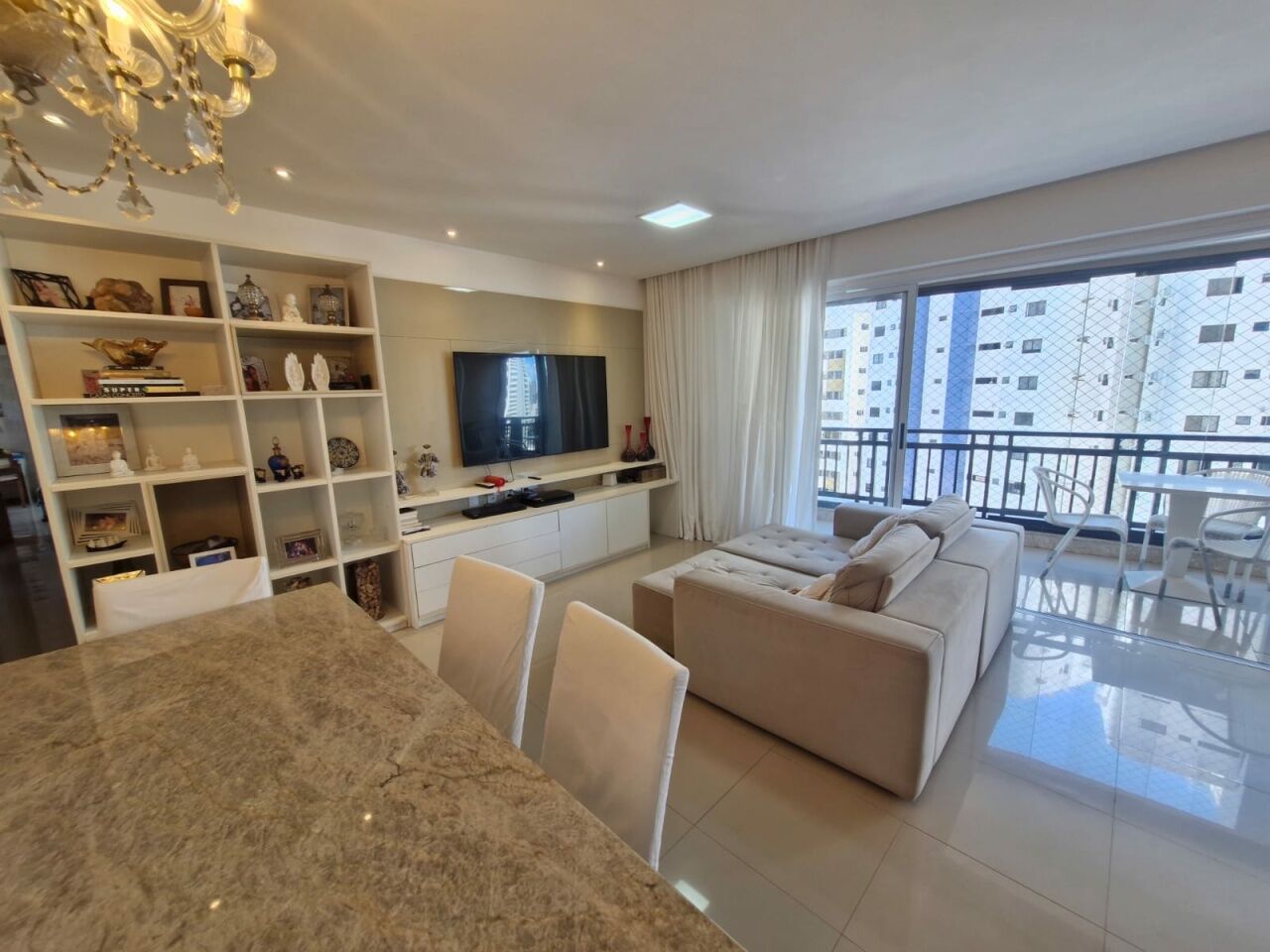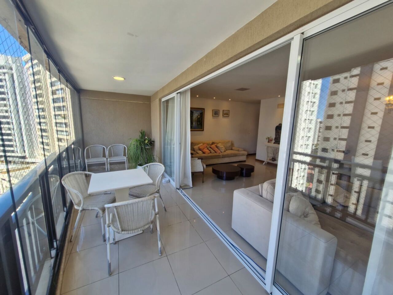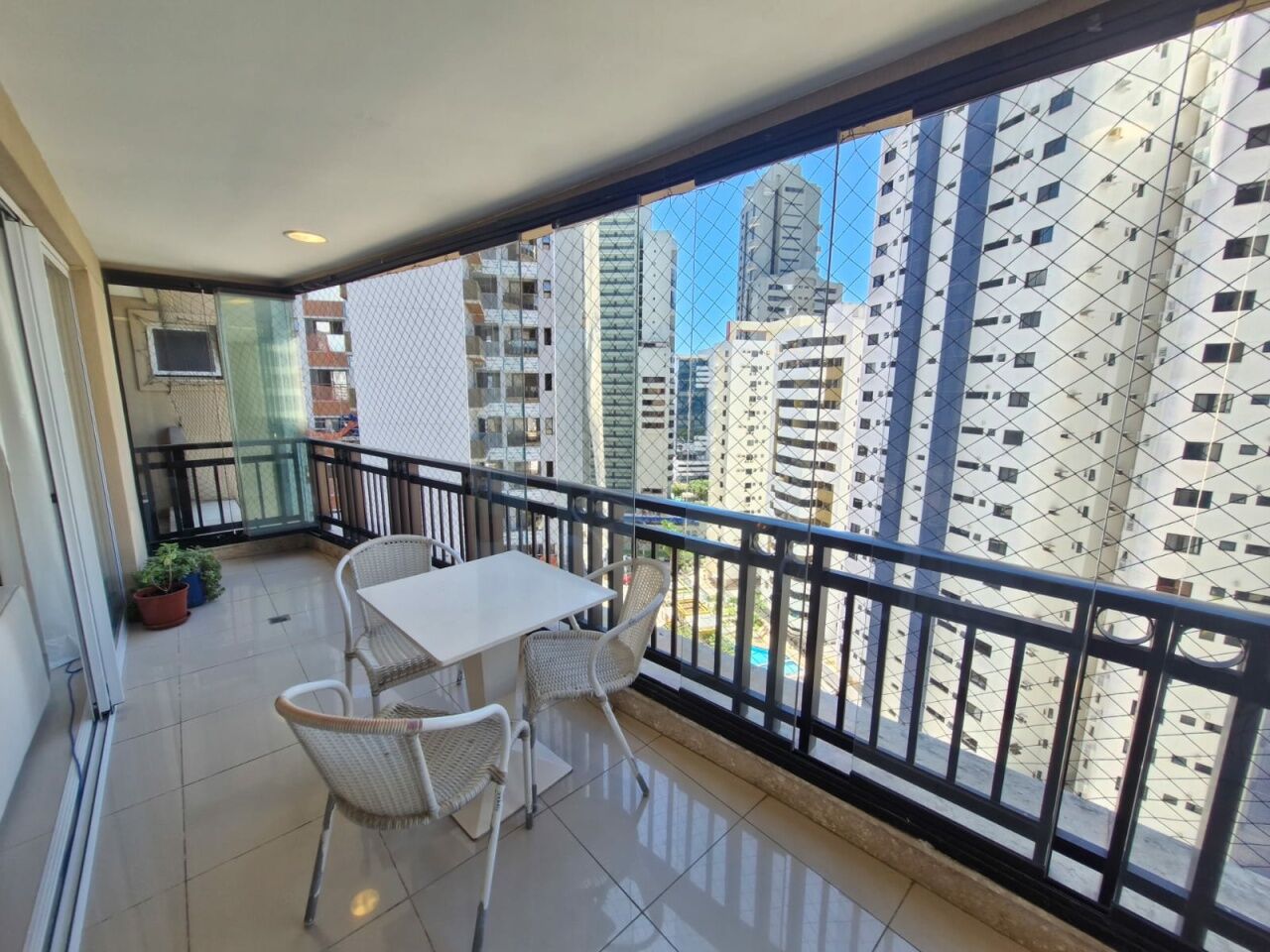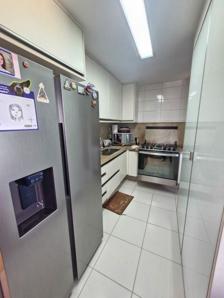 Excelente apartamento, nascente total, fino acabamento, de 155m², com 4 quartos, 4 suítes, piso frio, varanda com fechamento em reiki, sala de estar, sala de jantar, living amplo, lavabo, teto rebaixado com projeto de iluminação, armários planejados Florense em todos os cômodos, ar condicionado, cozinha espaçosa, ventilação cruzada, andar alto, e duas vagas de garagem.