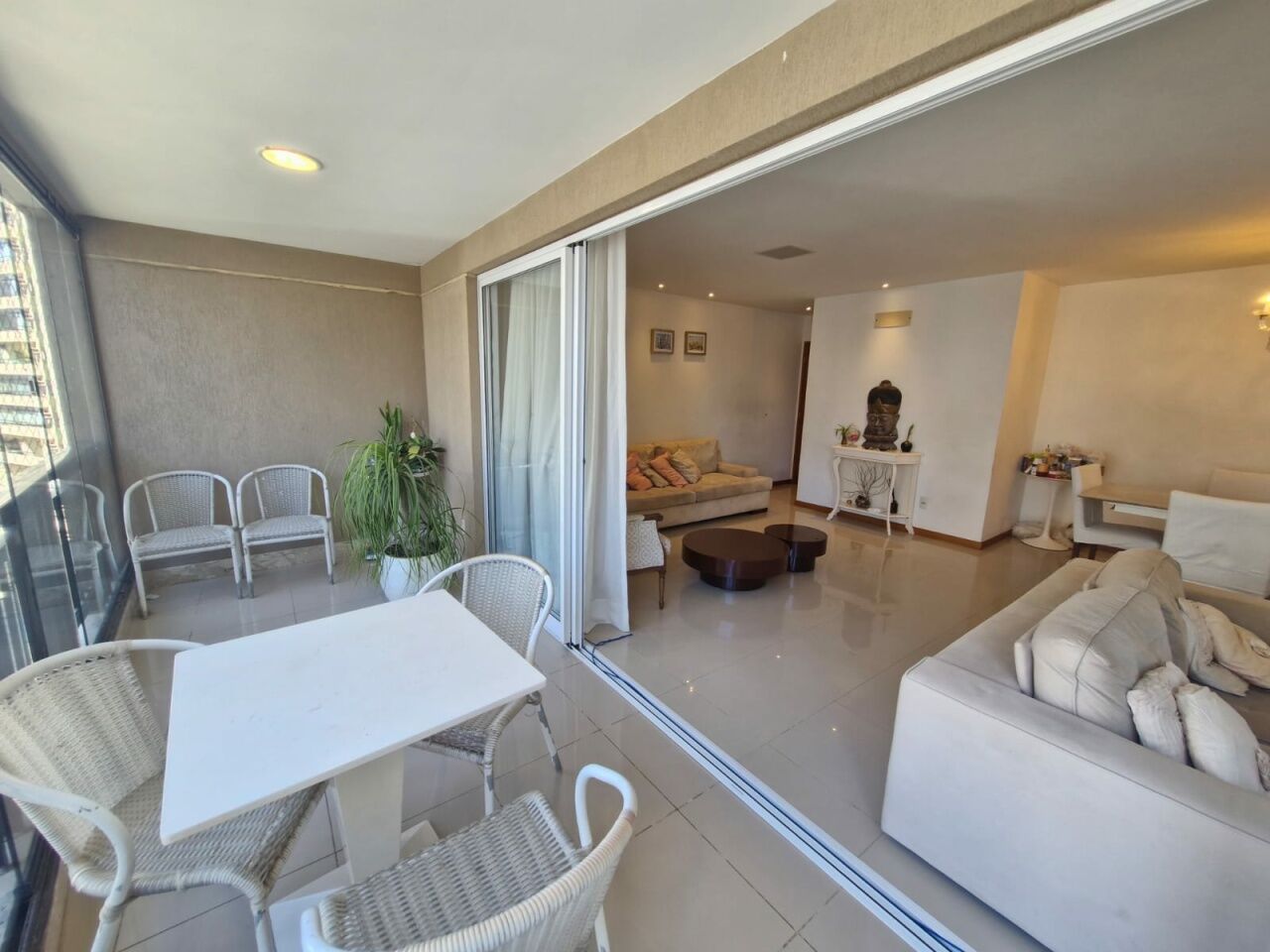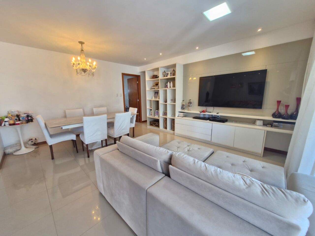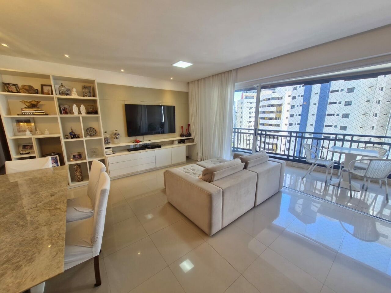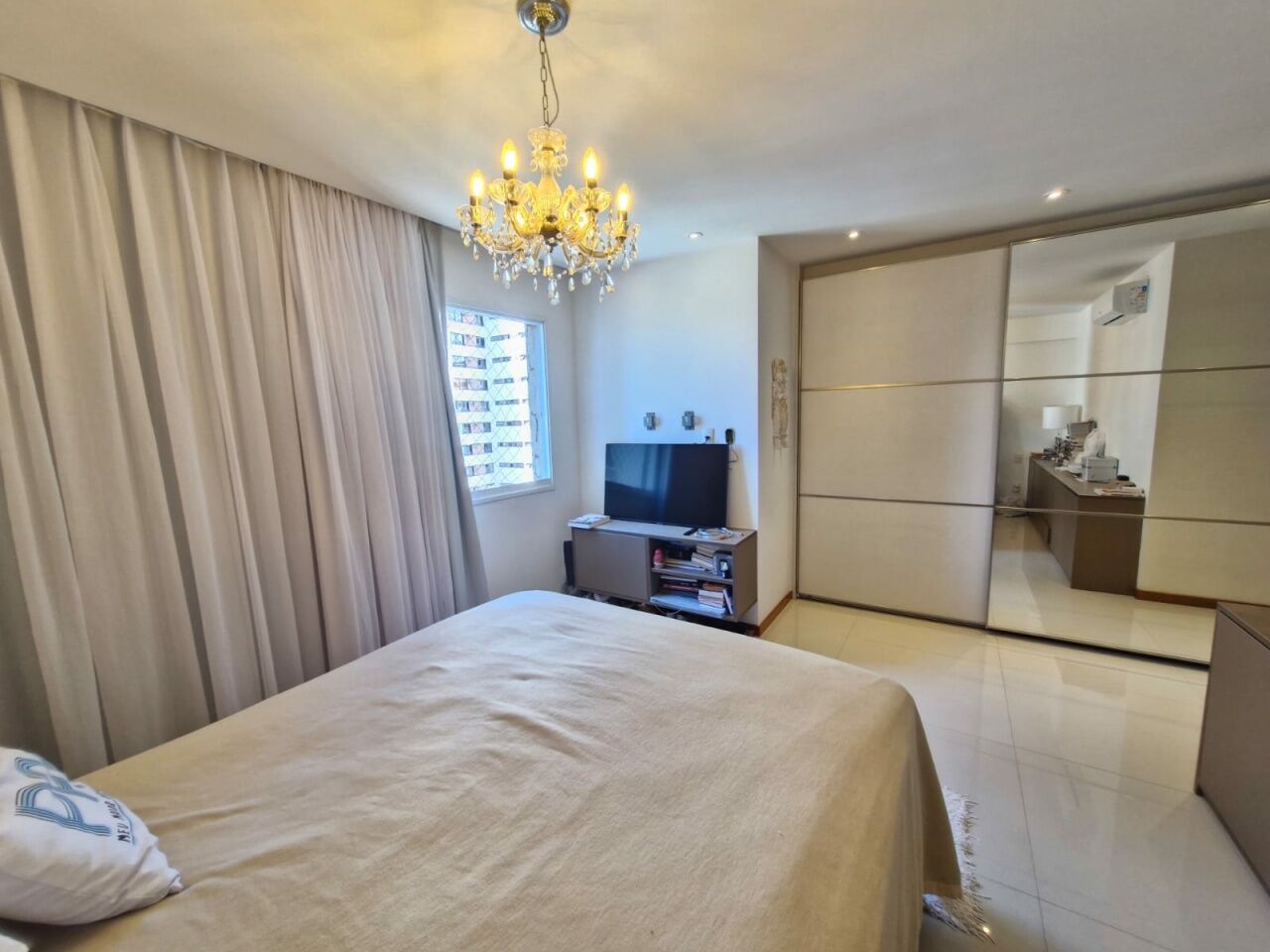 Excelente apartamento, nascente total, fino acabamento, de 155m², com 4 quartos, 4 suítes, piso frio, varanda com fechamento em reiki, sala de estar, sala de jantar, living amplo, lavabo, teto rebaixado com projeto de iluminação, armários planejados Florense em todos os cômodos, ar condicionado, cozinha espaçosa, ventilação cruzada, andar alto, e duas vagas de garagem.