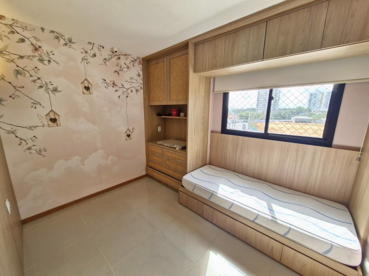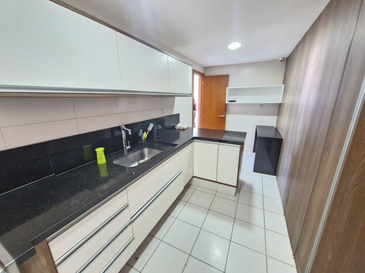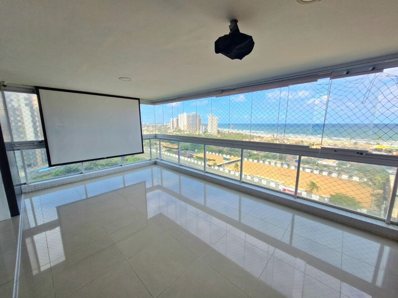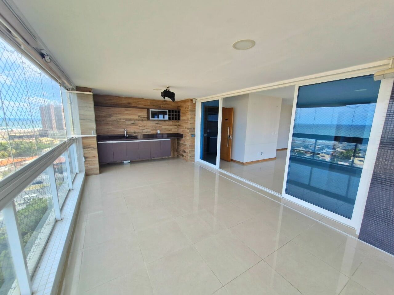 Excelente apartamento, nascente total, vista mar, fino acabamento, com 155m², com 3 quartos, 3 suítes, piso em porcelanato, closet, varanda gourmet incorporada com fechamento em reiki, bancada com ponto elétrico e hidráulico, living amplo, sala de estar, sala de jantar, lavabo, armários planejados em todos os cômodos, projeto de iluminação, teto com rebaixamento em gesso, ar condicionado, cozinha espaçosa, área de serviço, despensa, dependencia completa, andar alto e três vagas de garagem soltas mais depósito.