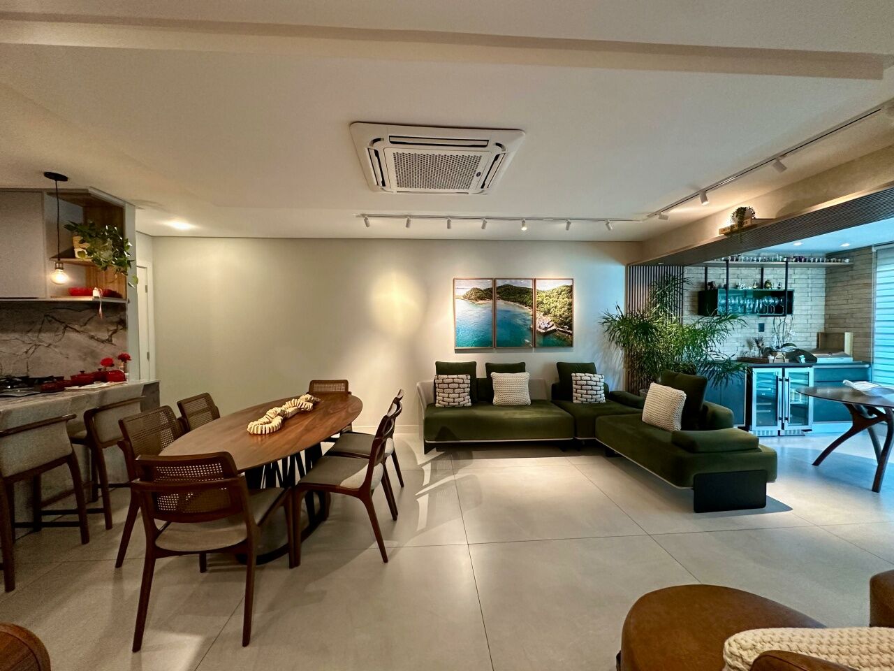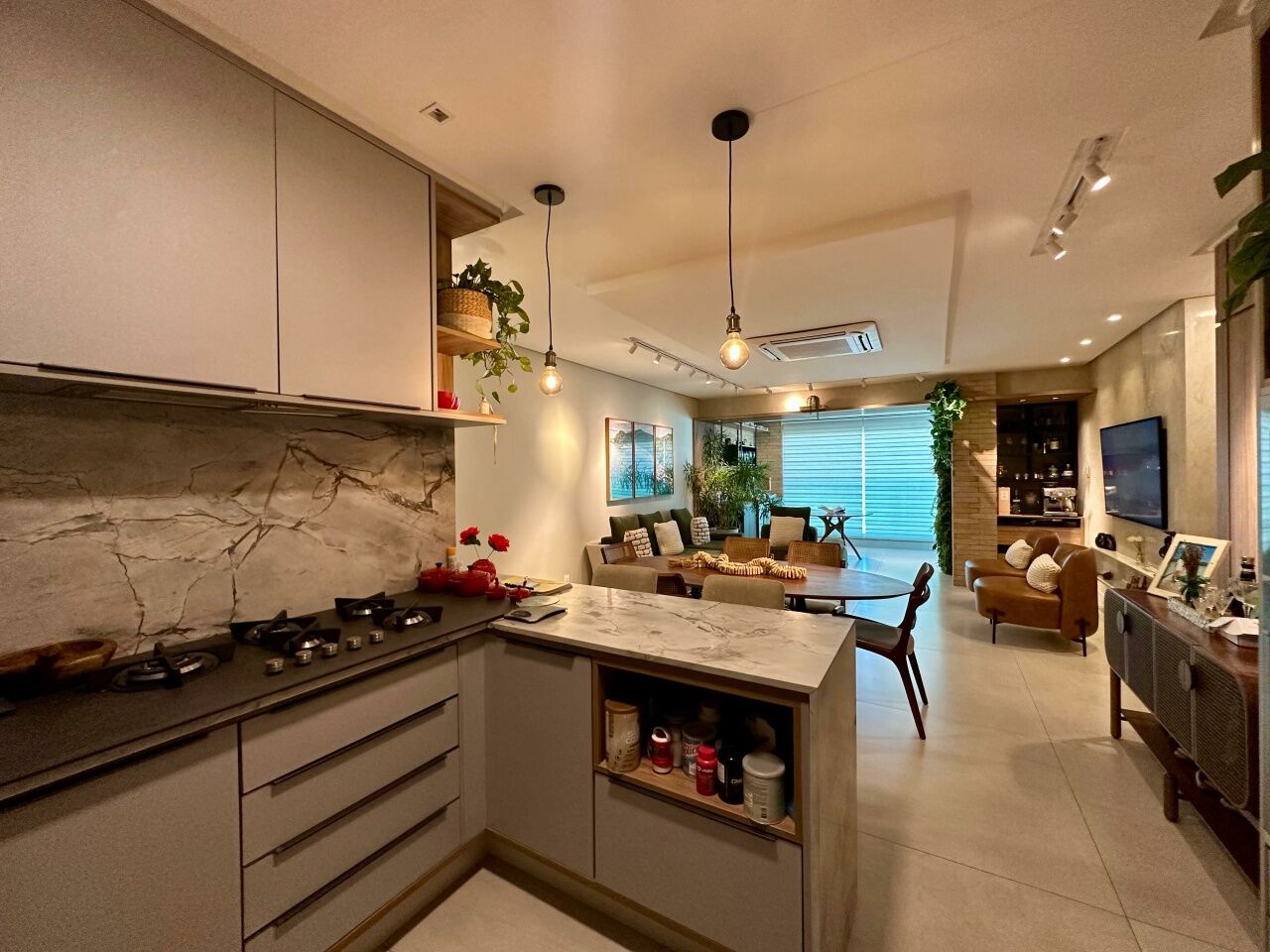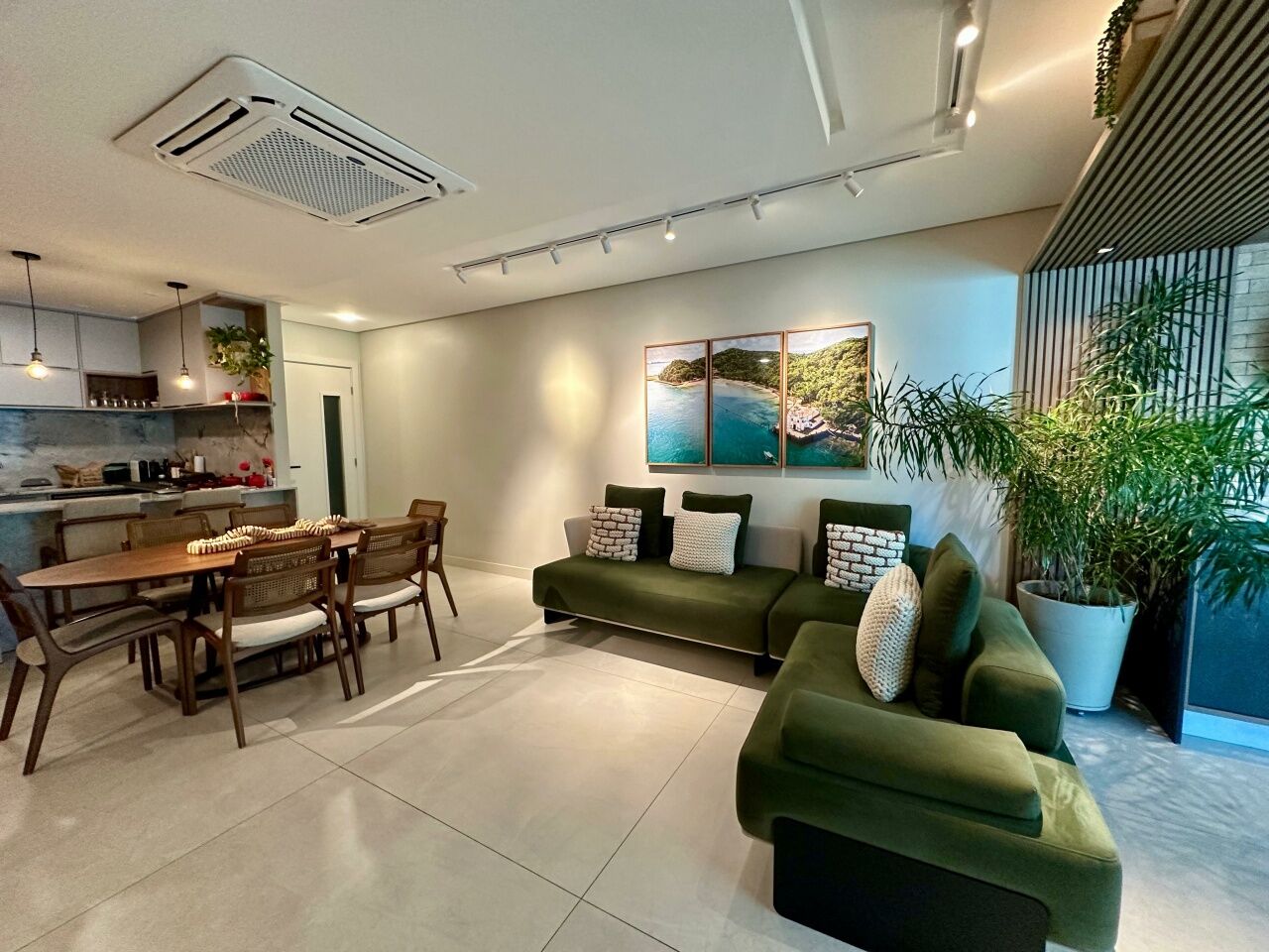 Excelente apartamento, nascente, fino acabamento, de 117m², com 3 quartos, 3 suítes, closet, piso em porcelanato, varanda gourmet incorporada com fechamento em reiki, living amplo, sala de estar, sala de jantar, lavabo, teto rebaixado, projeto de iluminação, ambientes climatizados, cozinha americana, área de serviço com banheiro, andar alto, duas vagas de garagem soltas.