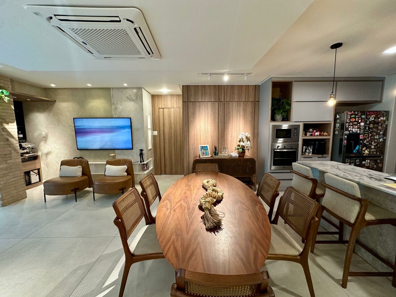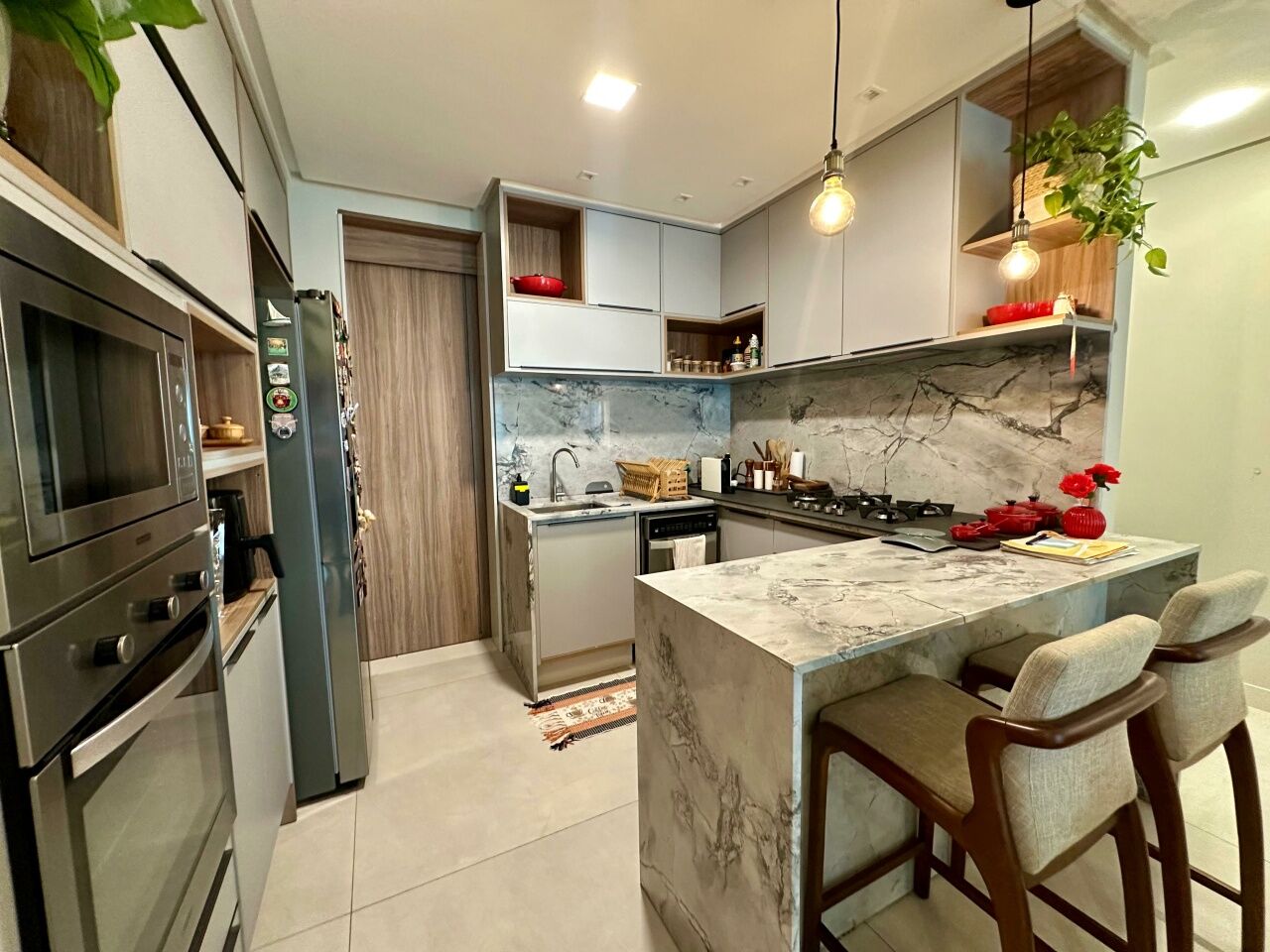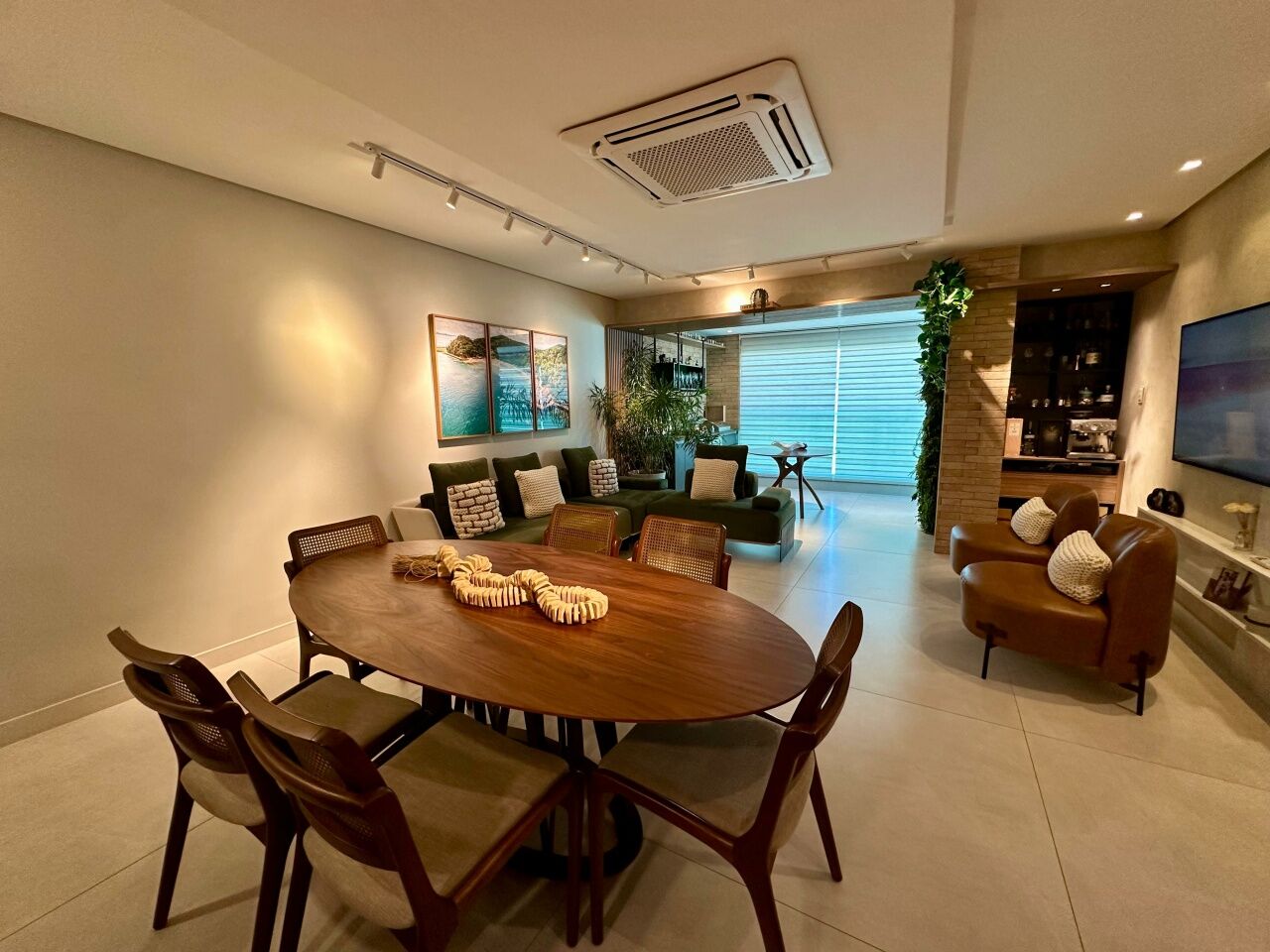 Excelente apartamento, nascente, fino acabamento, de 117m², com 3 quartos, 3 suítes, closet, piso em porcelanato, varanda gourmet incorporada com fechamento em reiki, living amplo, sala de estar, sala de jantar, lavabo, teto rebaixado, projeto de iluminação, ambientes climatizados, cozinha americana, área de serviço com banheiro, andar alto, duas vagas de garagem soltas.