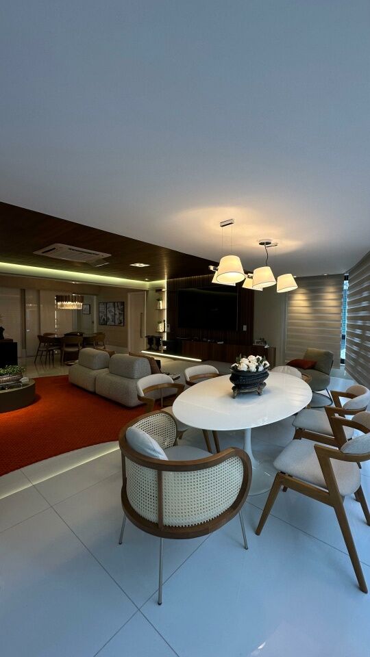 Excelente apartamento, fino acabamento, de 192m², 3 quartos, 3 suítes, 02 closet's, piso nanogless, varanda incorporada com fechamento em reiki, living amplo, lavabo, sala de estar, sala de jantar, home office, home teather, armários planejados kitchens em todos os cômodos, ar condicionado, cozinha espaçosa, projeto de iluminação com teto rebaixado, despensa, dependência completa, andar intermediário, área de serviço, e quatro vagas de garagem.