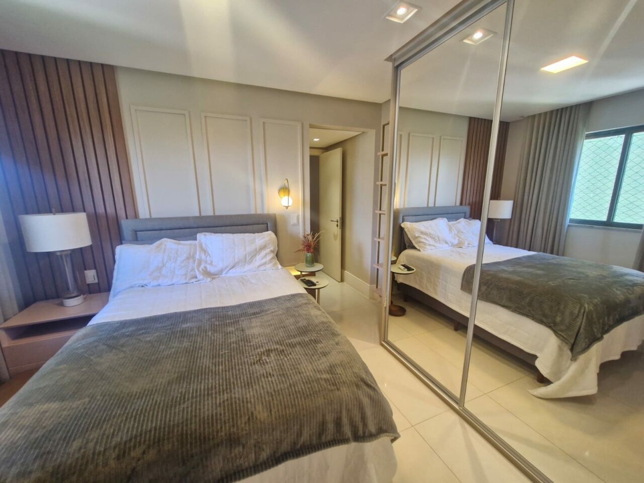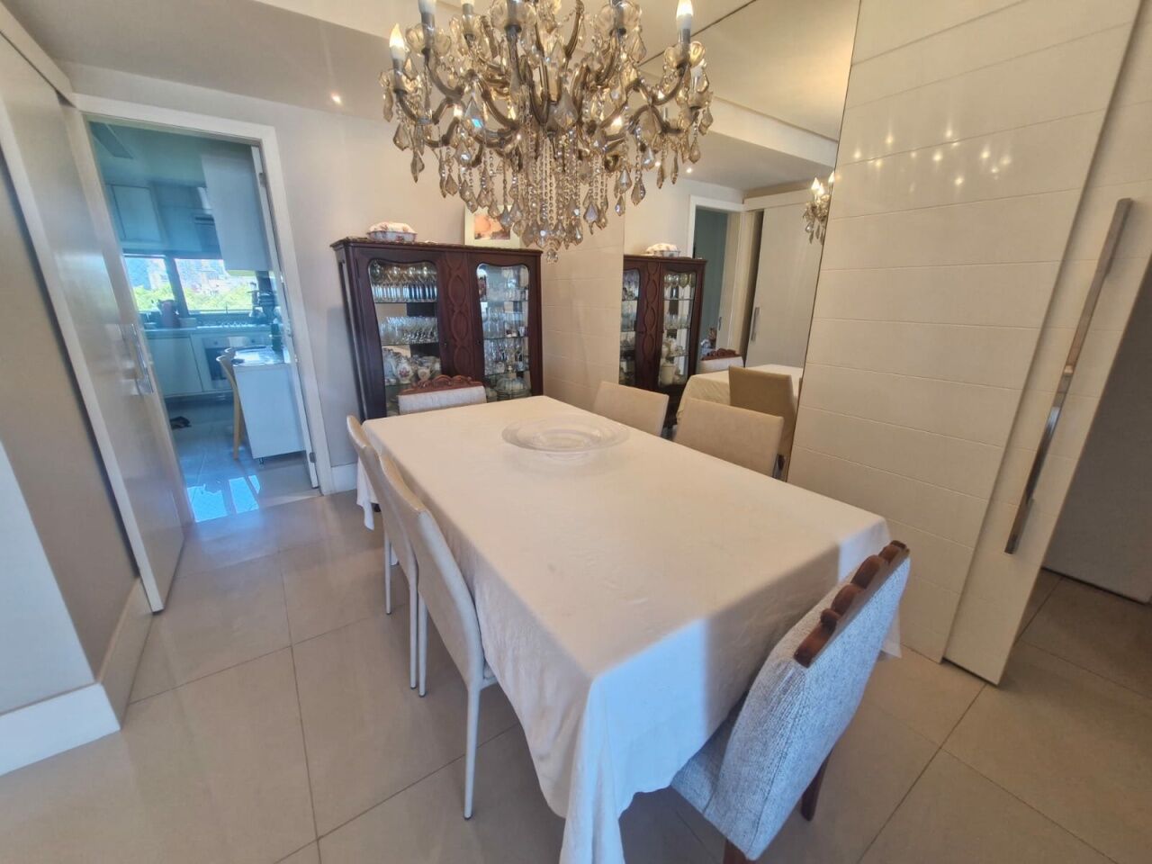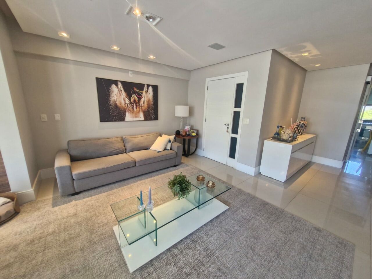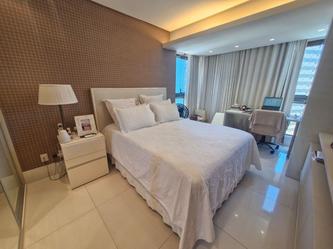 Excelente apartamento, nascente, fino acabamento, de 147m², originalmente com 4 quartos, revertidos pra 3 suítes, piso frio, varanda gourmet integrada com churrsqueira e fechamento em reiki, living amplo, projeto de iluminação, teto rebaixado, lavabo, sala de estar, sala de jantar, armários planejados em todos os cômodos, ar condicionado, cozinha espaçosa, área de serviço, dependencia completa, andar alto, vista mar, e três vagas de garagem.