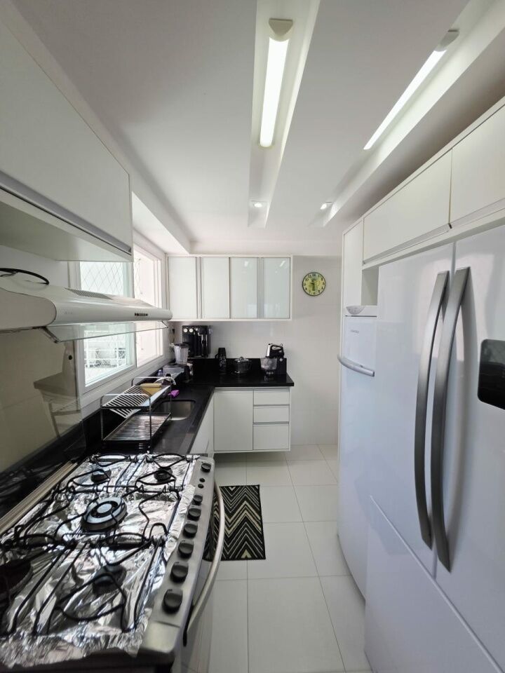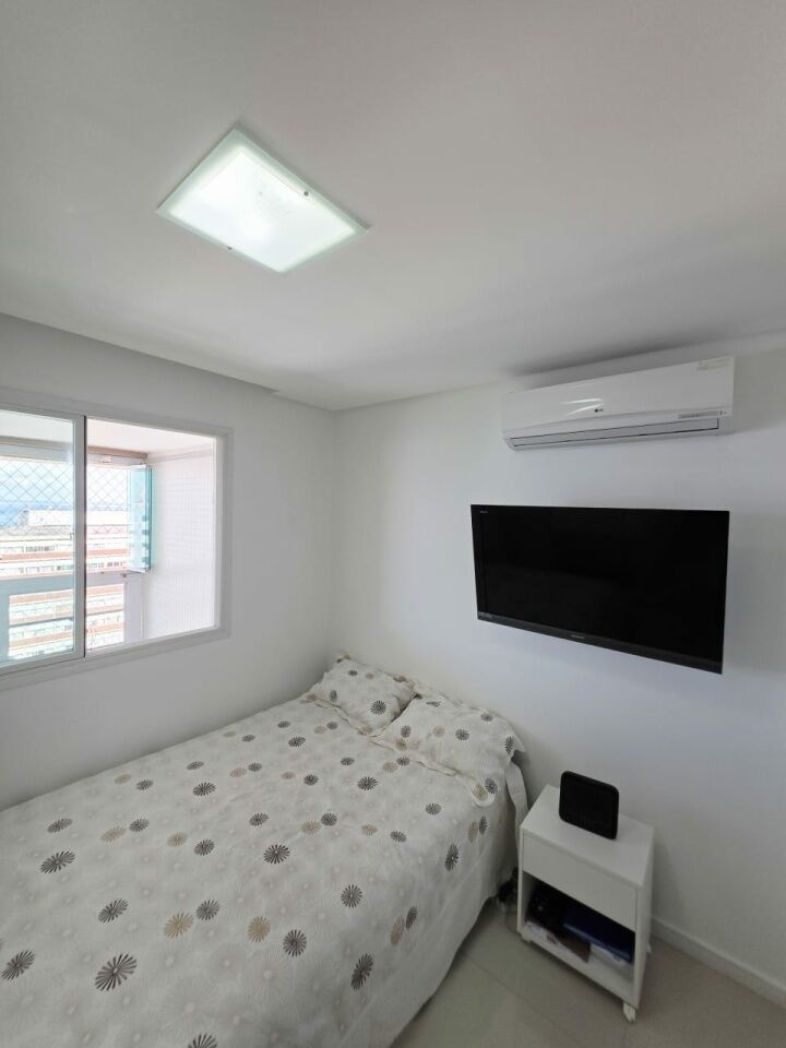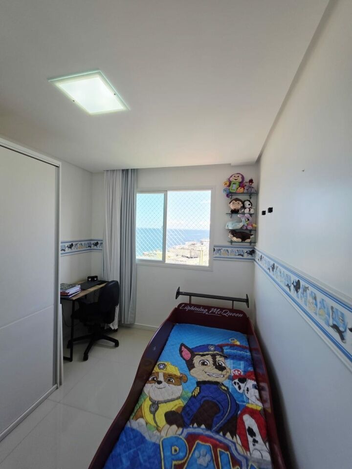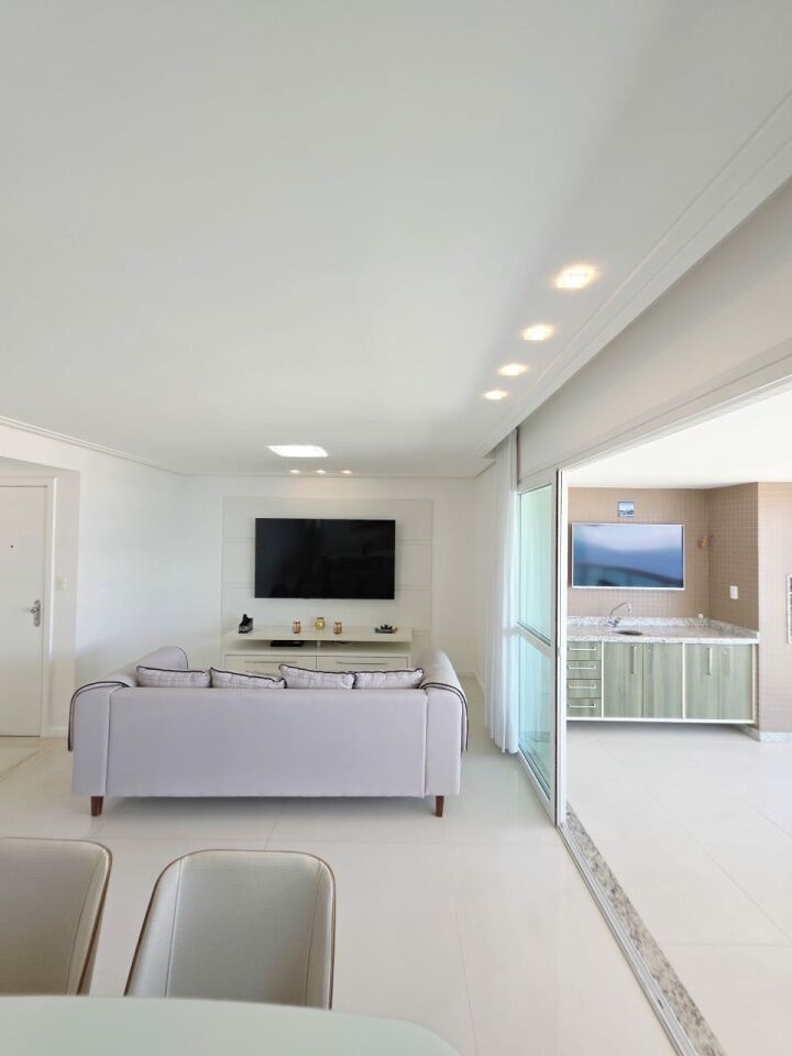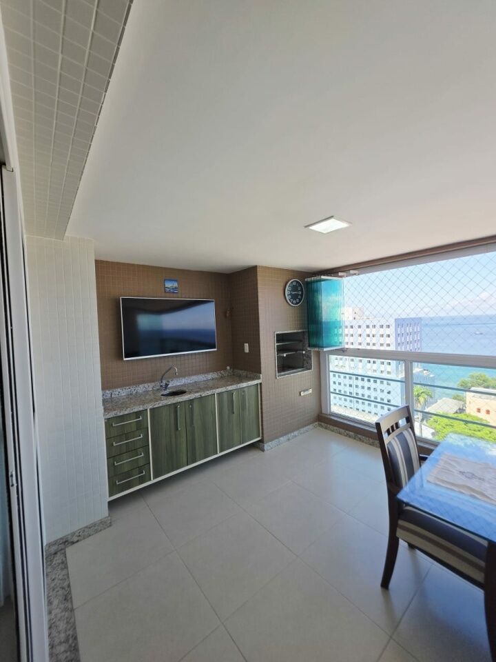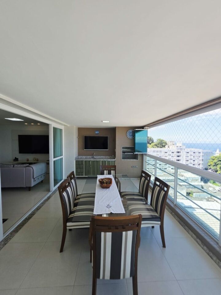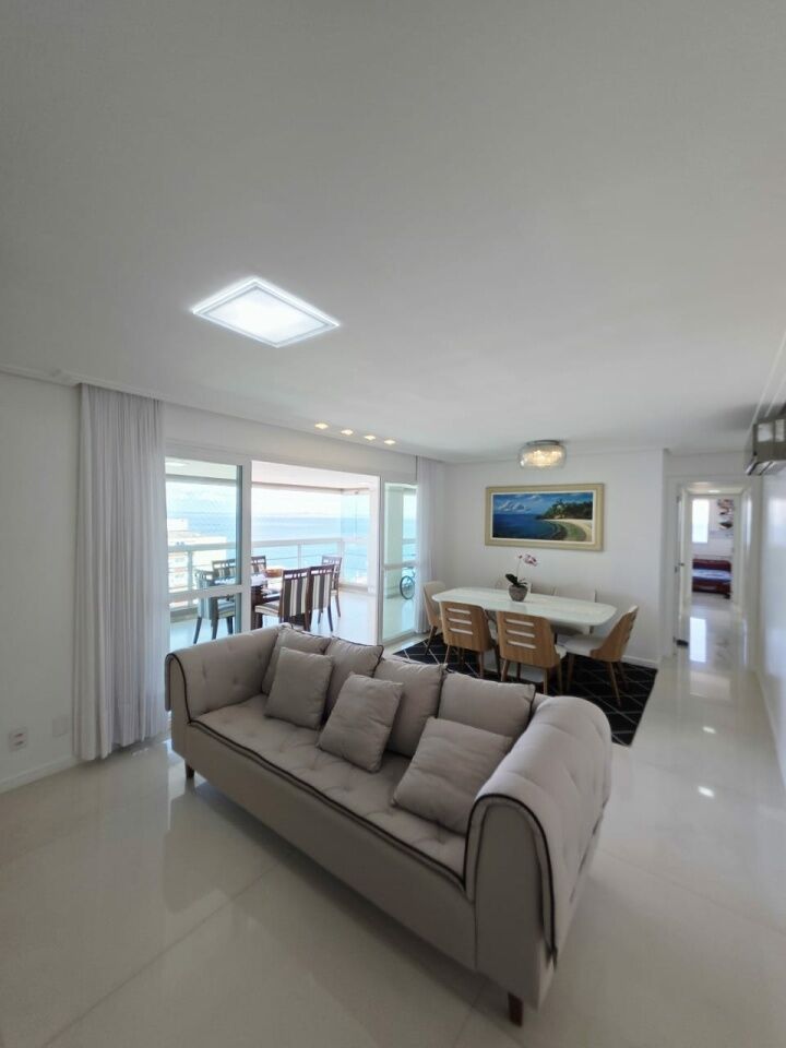 Excelente apartamento, nascente, vista mar, fino acabamento, de 143m², com 4 quartos, 1 suíte, gabinete, varanda gourmet com fechamento em reiki, sala de estar, sala de jantar, armários planejados em todos os cômodos, ambientes climatizados, cozinha espaçosa, área de serviço, teto rebaixado em gesso com projeto de iluminação, dependência completa, andar alto, e três vagas de garagem soltas.
