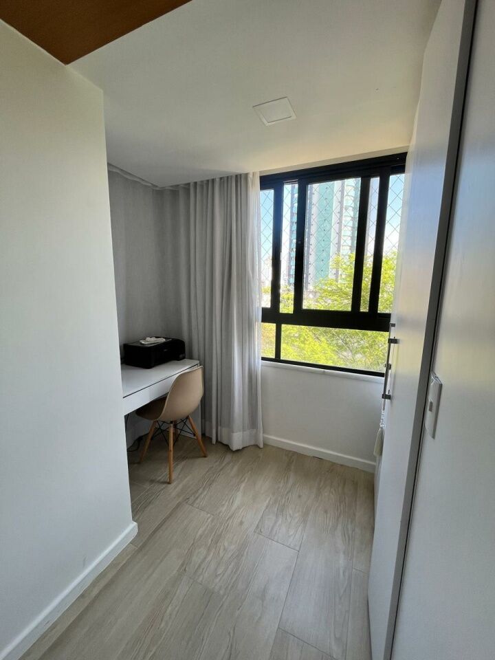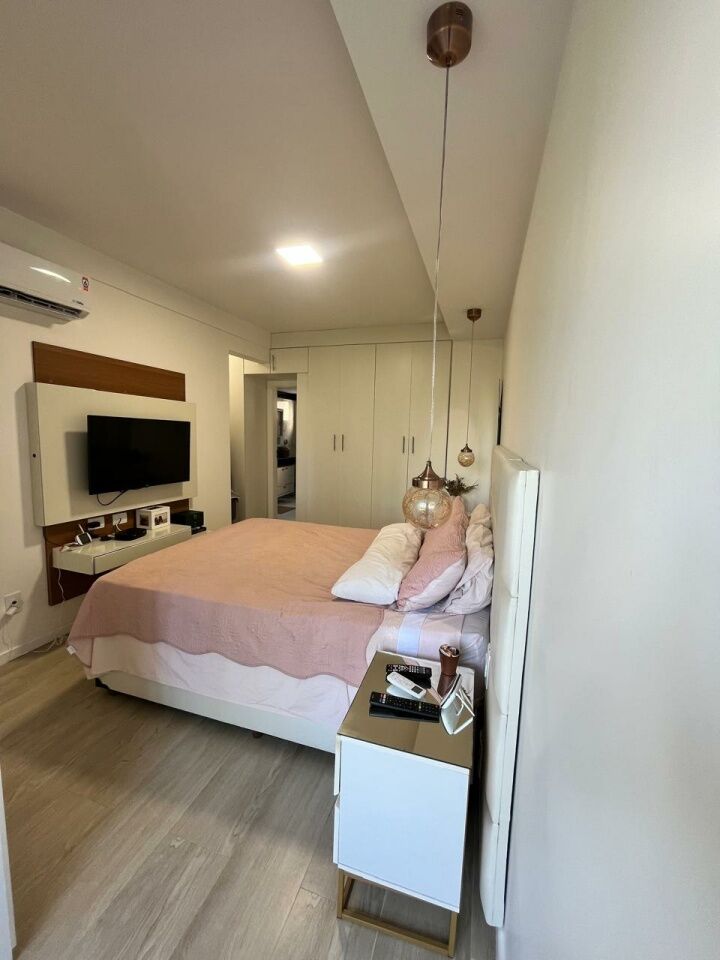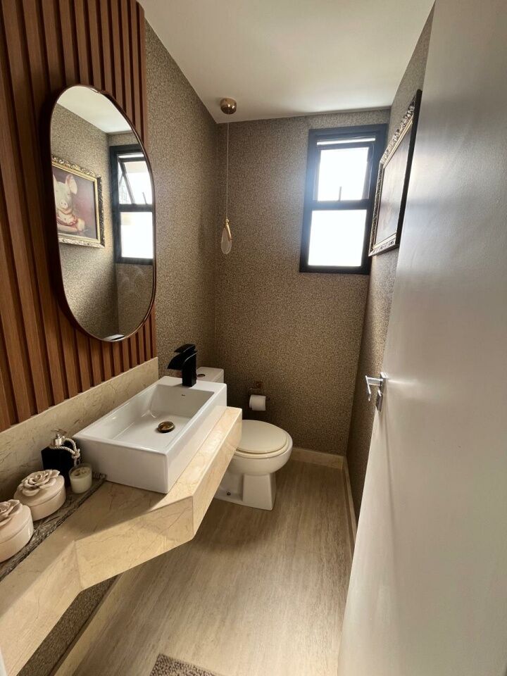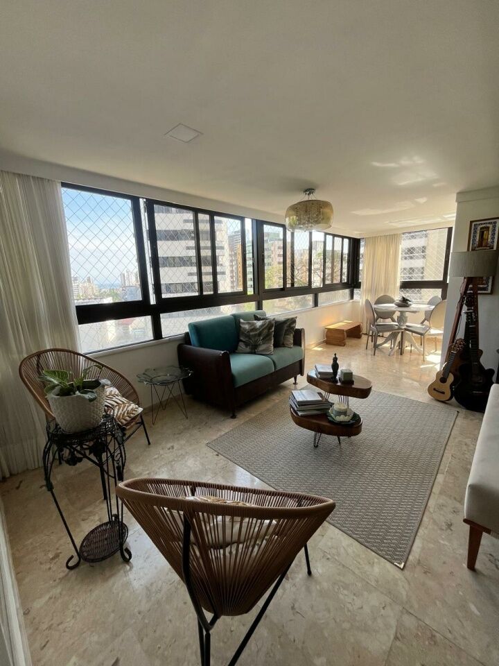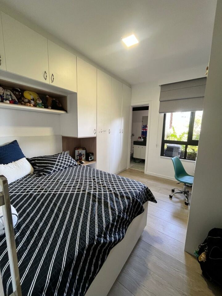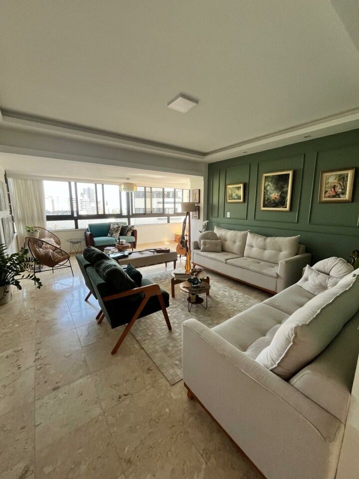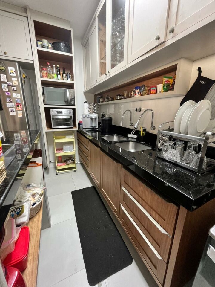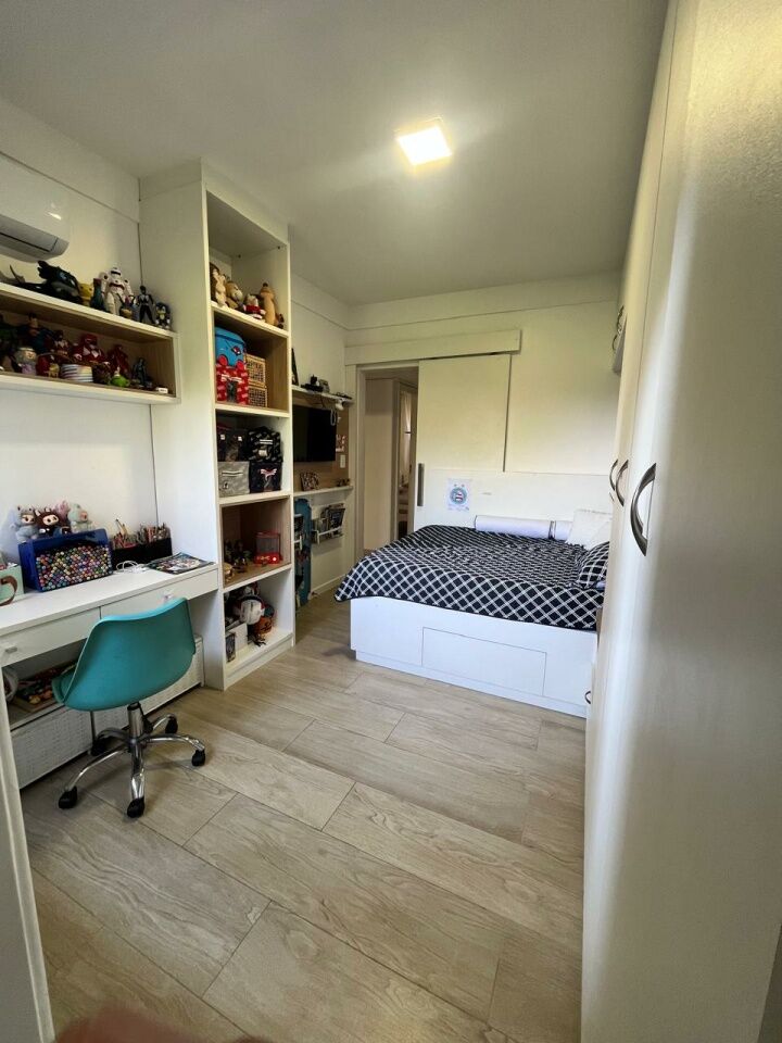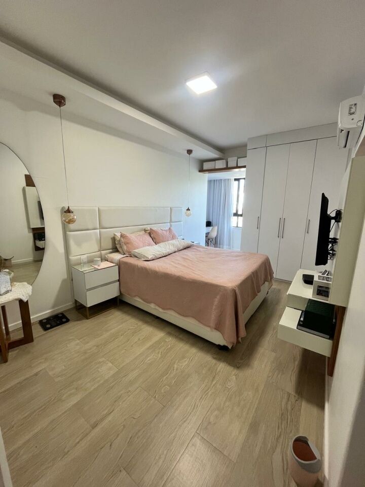 Excelente apartamento, totalmente reformado, fino acabamento, com 200m², 4 quartos, revertidos pra 3 quartos, sendo 2 suítes, piso mármore bege Bahia em toda sala, gabinete, varanda incorporada com bancada gourmet e com fechamento em reiki, living amplo, sala de estar, sala de jantar, lavabo, armários planejados em todos os cômodos, projeto de iluminação, teto com rebaixamento em gesso, ar condicionado, cozinha espaçosa, dependência completa, área de serviço, andar intermediário, e três vagas de garagem.