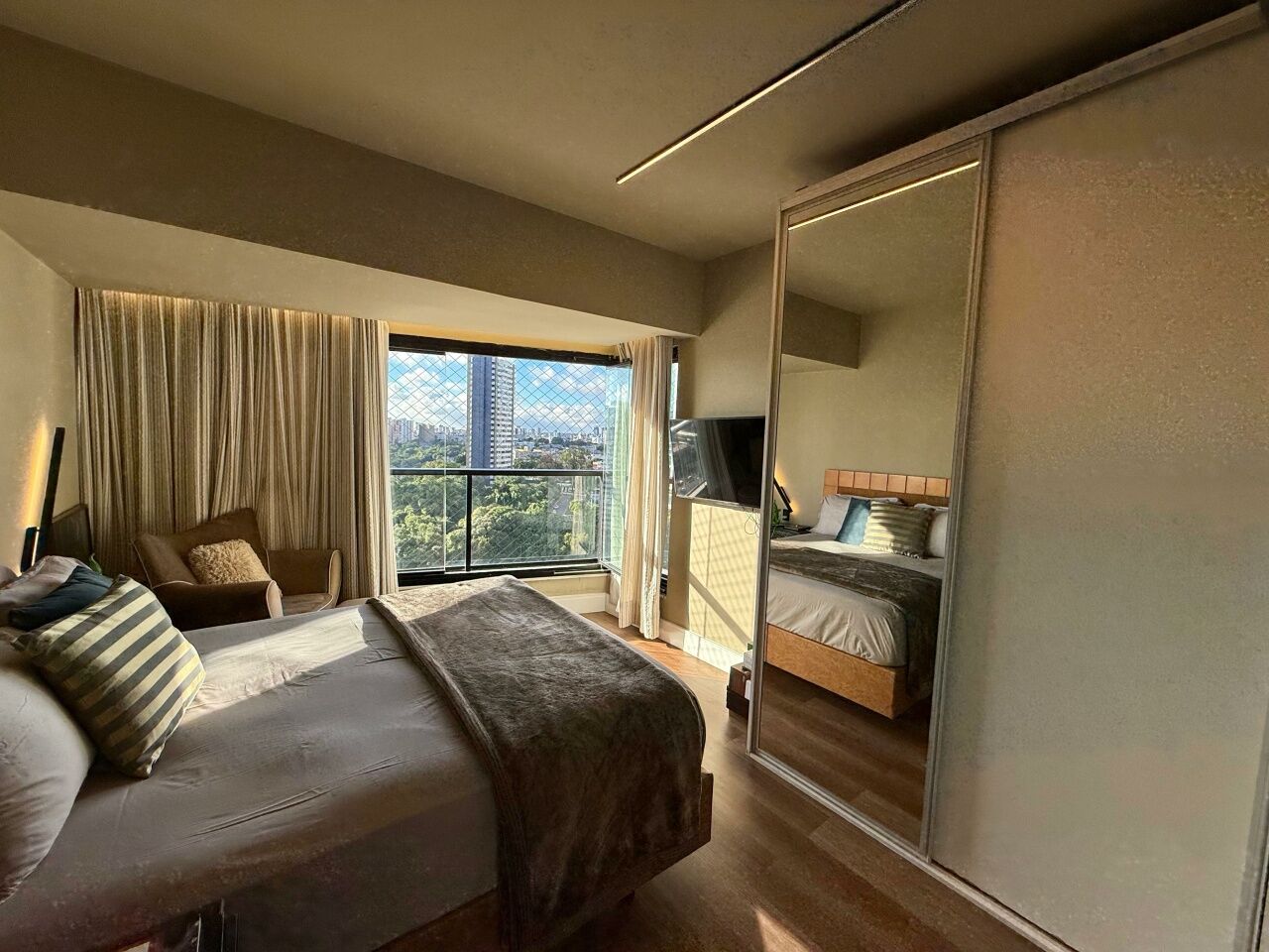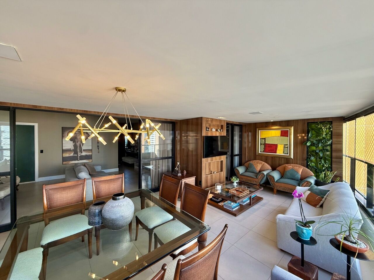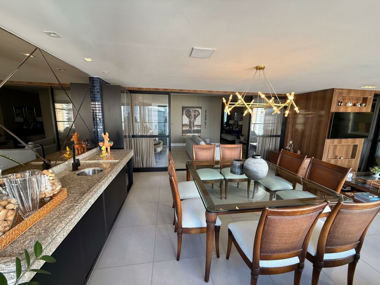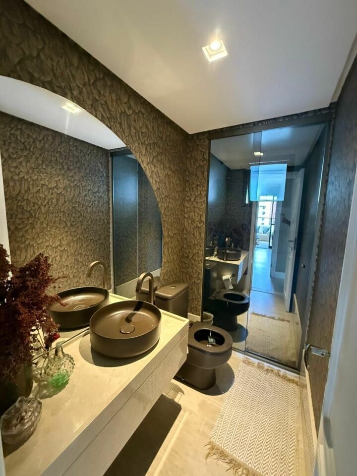Belíssimo apartamento originalmente 3 quartos, atualmente revertido para 2 suítes com suíte master com closet, dependência, 140m2, nascente total, sanitário social, finamente decorado, alto luxo, moderno, pronto para morar, 2 vagas de garagem.