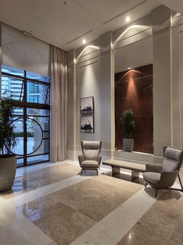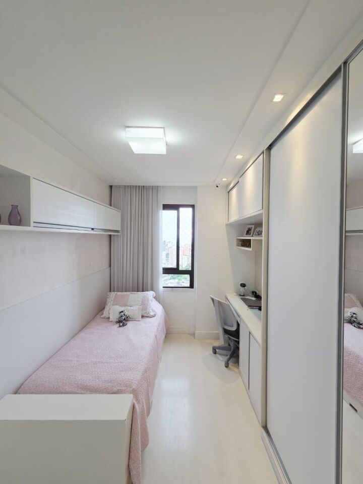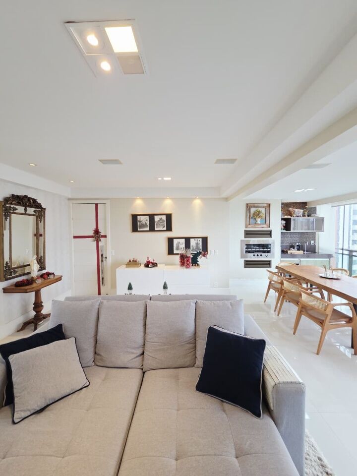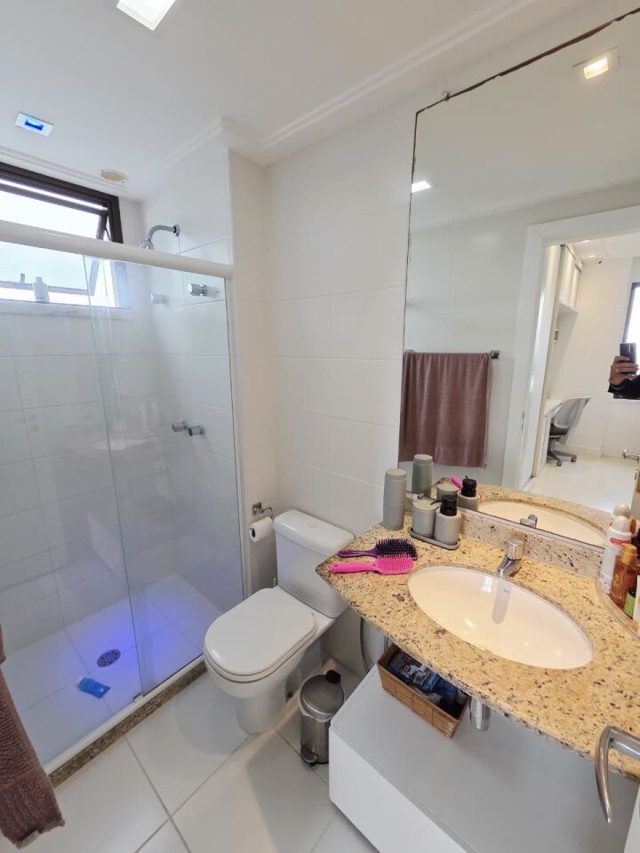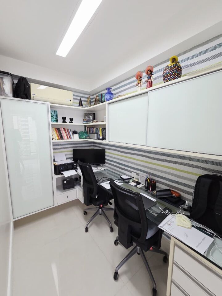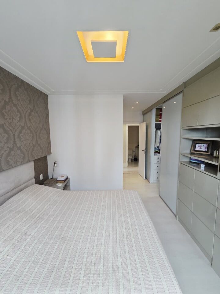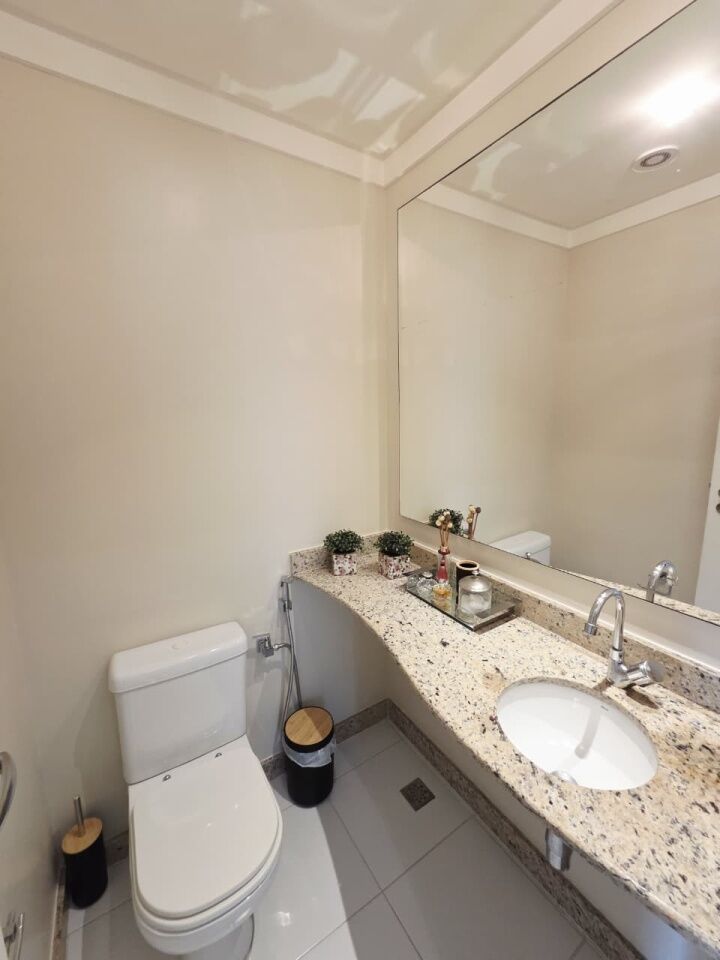 Excelente apartamento, nascente, fino acabamento, 149m², com 3 quartos, 3 suítes, varanda gourmet incorporada com fechamento em reiki, closet, gabinete, living amplo, sala de estar, sala de jantar, lavabo, armários planejados em todos os cômodos, projeto de iluminação, ar condicionado, cozinha espaçosa, dependência completa, área de serviço, e três vagas de garagem.