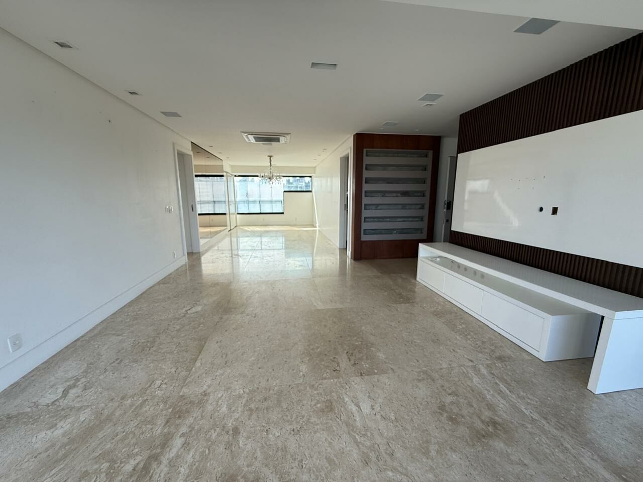 Excelente apartamento, fino acabamento, 275M² com 4 quartos, 04 suítes, lavabo, estar íntimo, living amplo com varandas incorporadas, portas de acesso blindadas, Adega Joshua para 1200 garrafas, armários Kitchens em todo o apartamento, piso em mármore na sala, projeto de iluminação indireta e todo climatizado com ar-condicionado cassete na sala e split nos quartos e gabinete, cozinha espaçosa, área de serviço e dependência completa, quatro vagas de garagem e depósito.