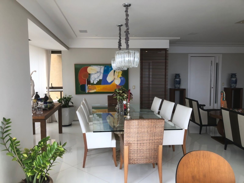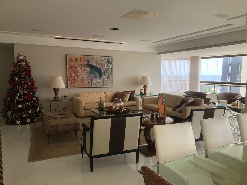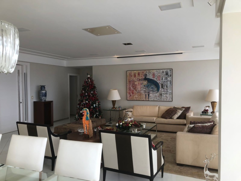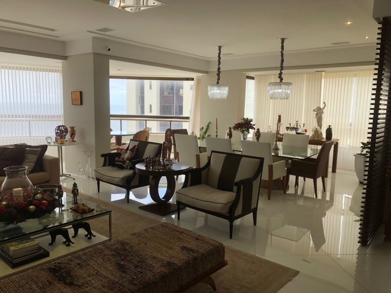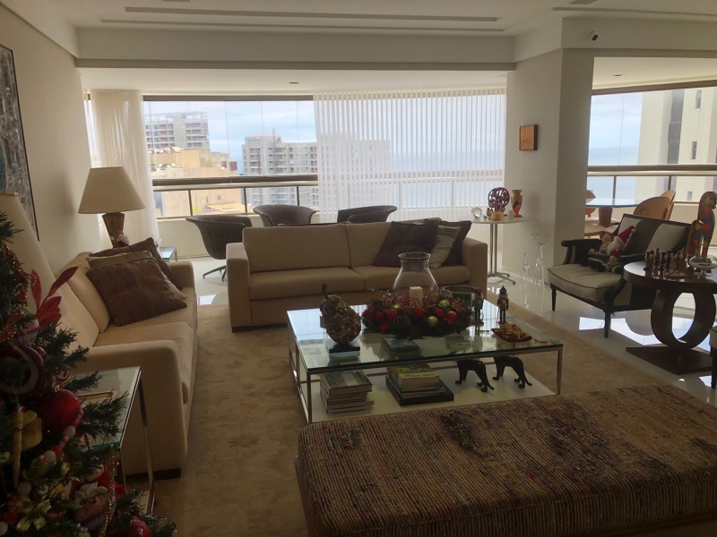 Excelente apartamento 5 quartos, todos suítes, 312 m2, nascente, Varandão integrado com a Sala, Armários Kitchens e Ornare, Finamente decorado, Suíte com Closed ( 02 banheiros , Dependências completas, Dispensa, Gabinete, 04 vagas de garagens soltas. Vista mar!