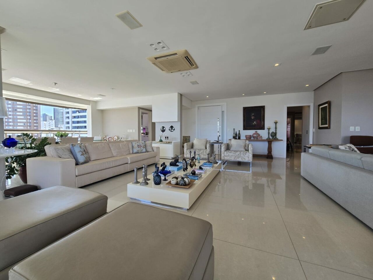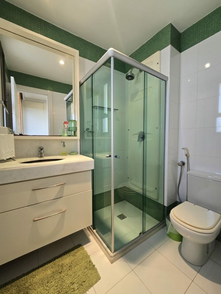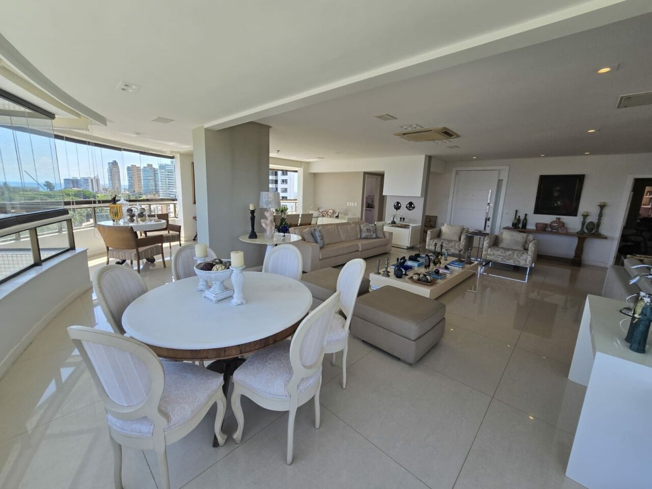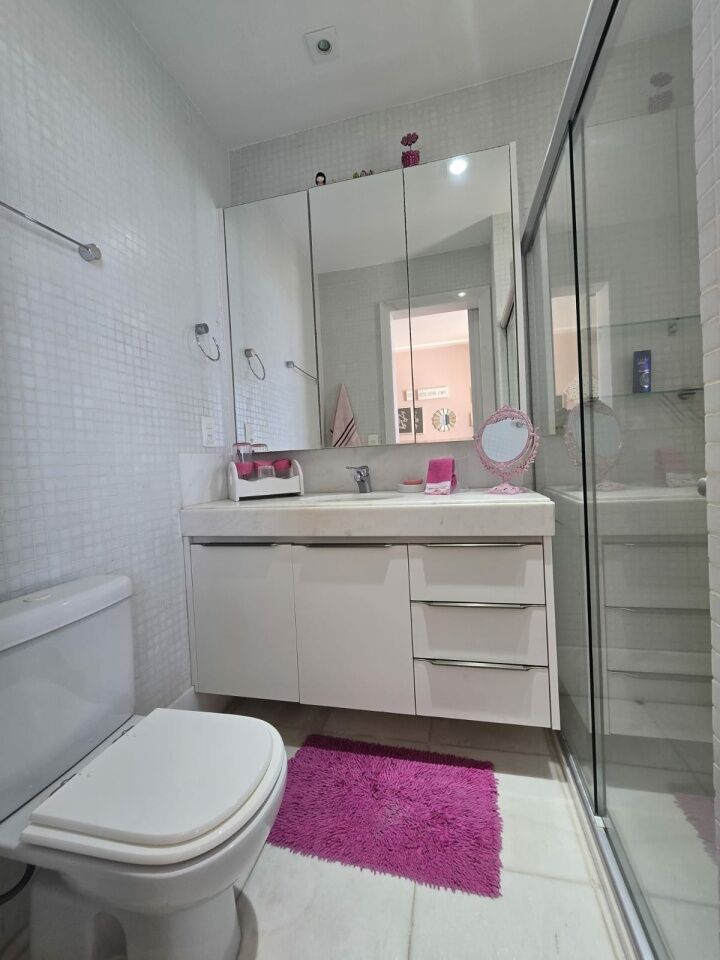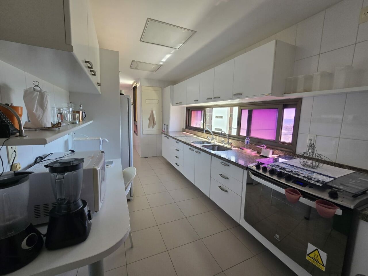 Maravilhoso apartamento originalmente 4 quartos, todos suítes, atualmente convertido para 3 suítes, sendo uma master com 2 closets e dois banheiros, 318m2 com acabamento alto luxo. Sala íntima com varanda com Reiki. Piso em Marmoglass. Amplo living com vista panorâmica deslumbrante do Rio Vermelho até Ilha de Itaparica. Living com varanda incorporada com Reiki e cortinas Luxaflex. Todo climatizado com Splits. Projeto de iluminação e sonorização. Armários em todos os ambientes da Kitchens. Possui Copa/Cozinha, 4 garagens soltas na G1 (pinturas de Bel Borba expostas nas garagens) e depósito na garagem.