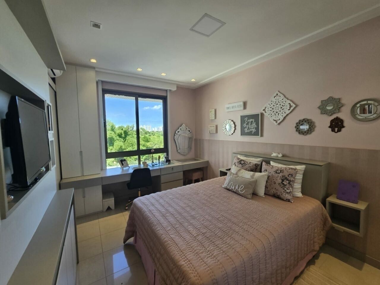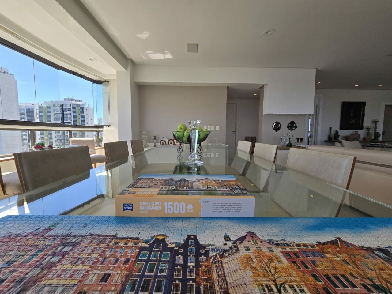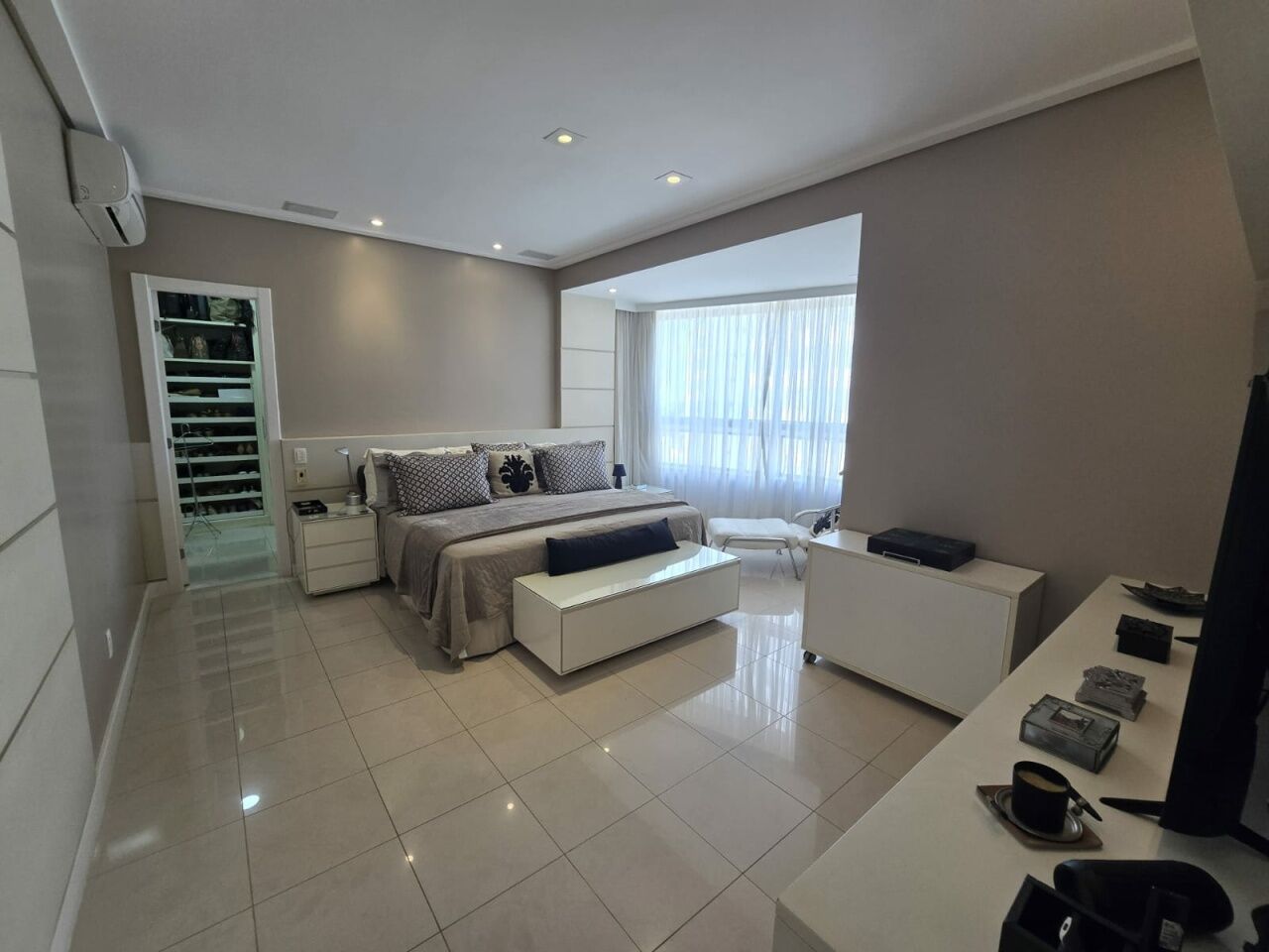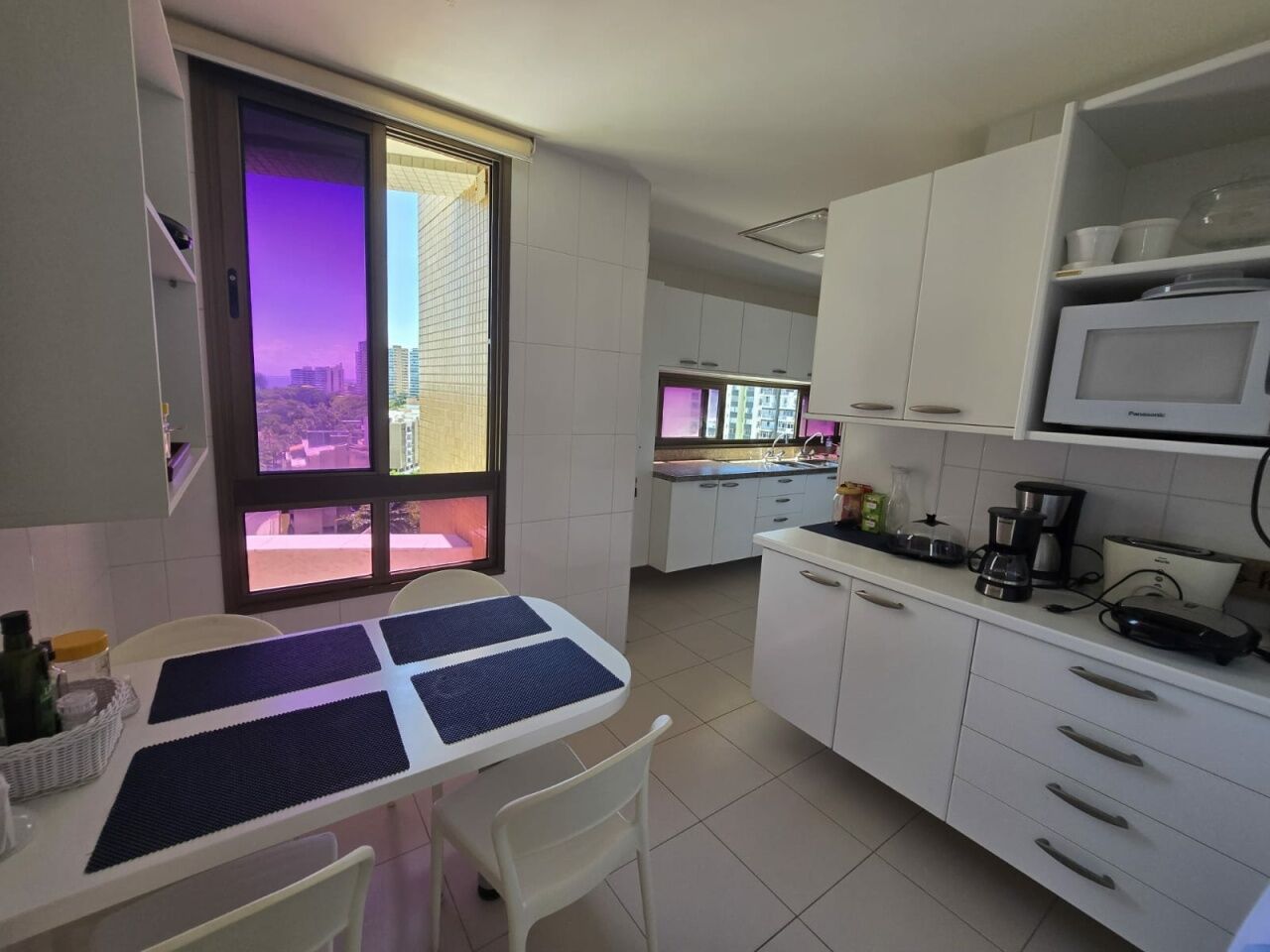Maravilhoso apartamento originalmente 4 quartos, todos suítes, atualmente convertido para 3 suítes, sendo uma master com 2 closets e dois banheiros, 318m2 com acabamento alto luxo. Sala íntima com varanda com Reiki. Piso em Marmoglass. Amplo living com vista panorâmica deslumbrante do Rio Vermelho até Ilha de Itaparica. Living com varanda incorporada com Reiki e cortinas Luxaflex. Todo climatizado com Splits. Projeto de iluminação e sonorização. Armários em todos os ambientes da Kitchens. Possui Copa/Cozinha, 4 garagens soltas na G1 (pinturas de Bel Borba expostas nas garagens) e depósito na garagem.