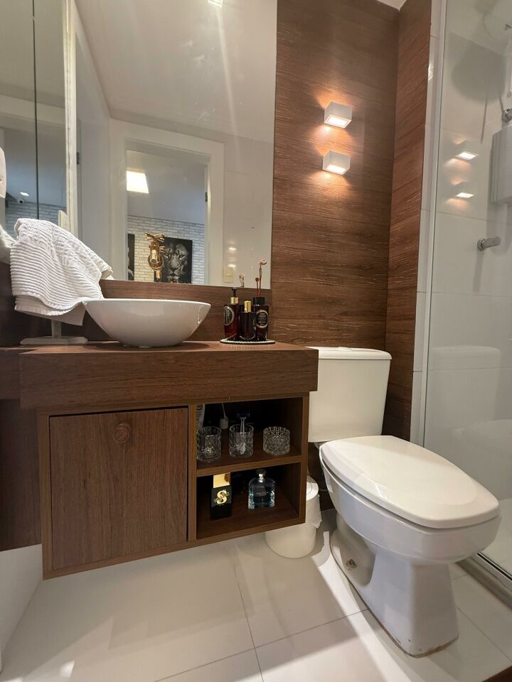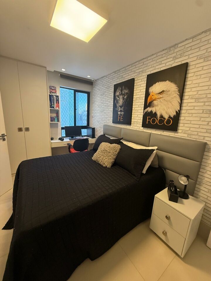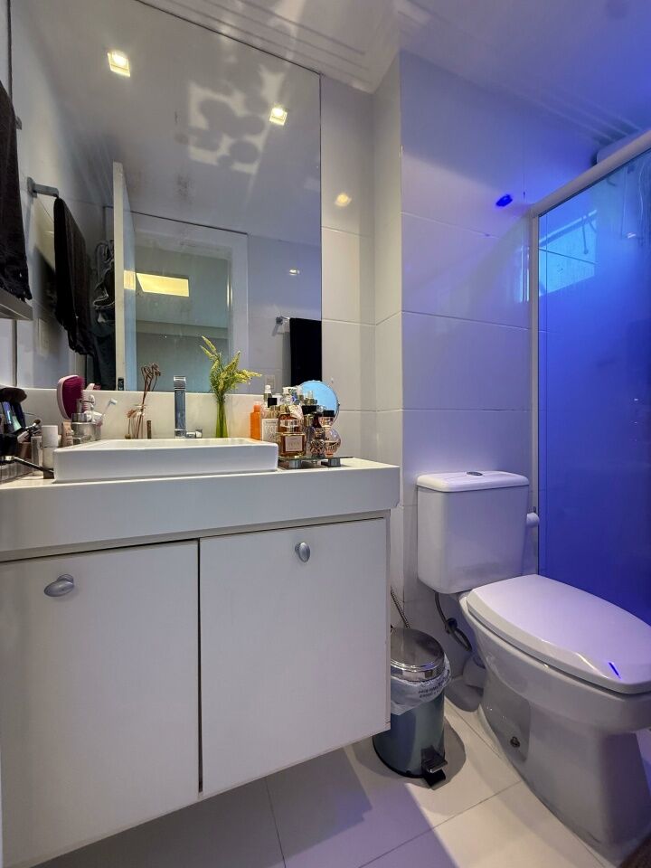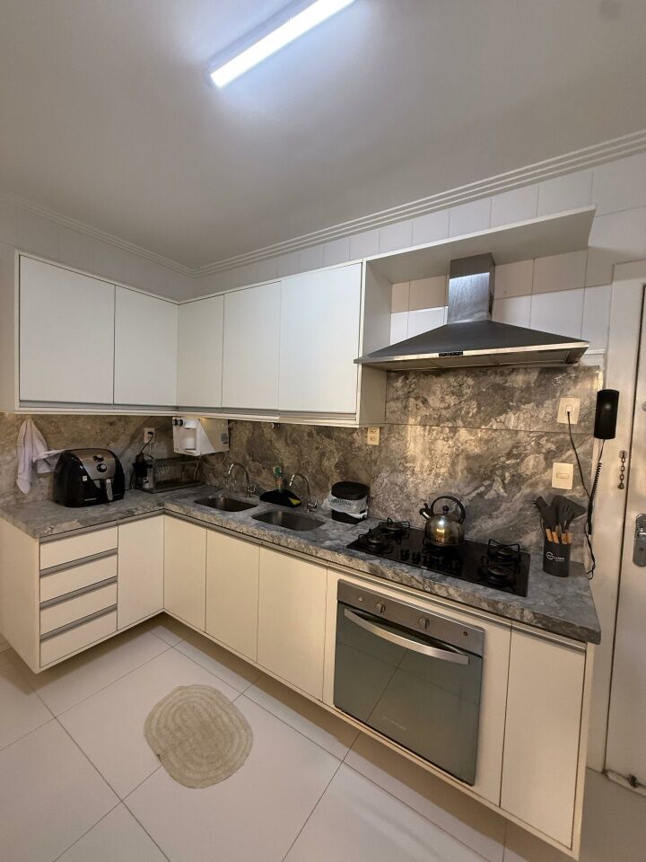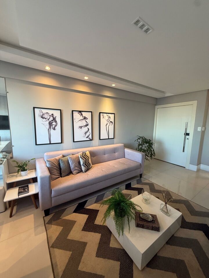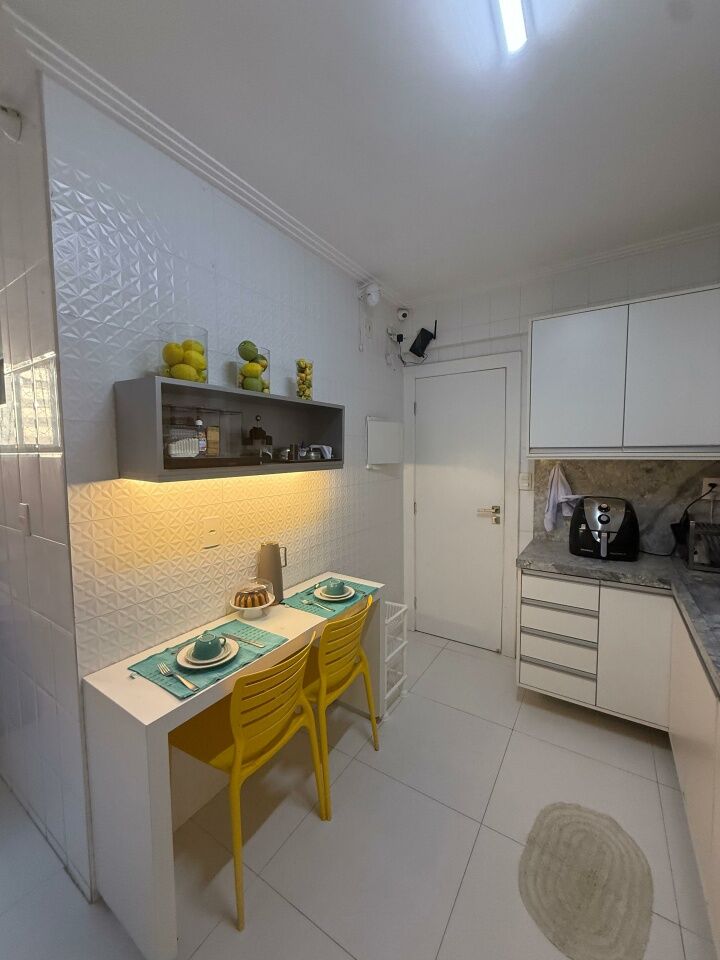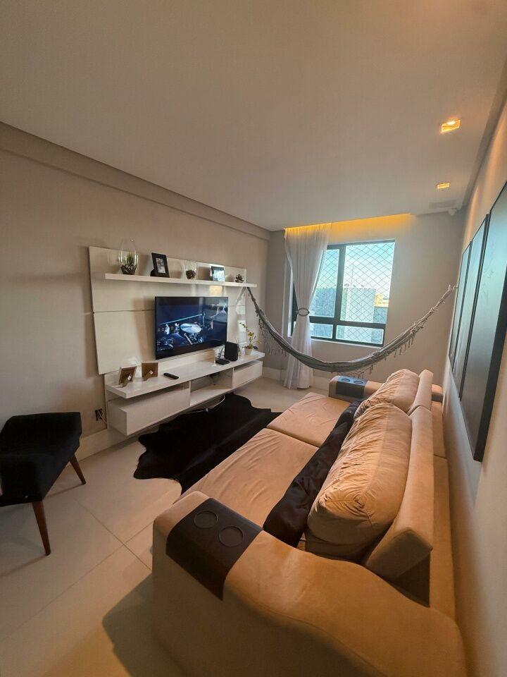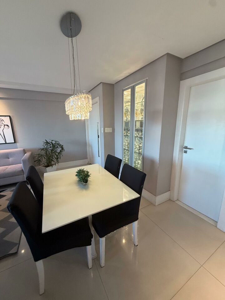 Excelente apartamento, nascente, finamente decorado, de 120m², com 4 quartos, 3 suítes, piso frio, varanda incorporada com fechamento em reiki, sala de estar, sala de jantar, living amplo, lavabo, armários planejados em todos os cômodos, ambientes climatizados, cozinha espaçosa, área de serviço, dependência completa, andar alto, vista mar, e duas vagas de garagem.