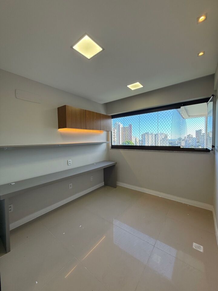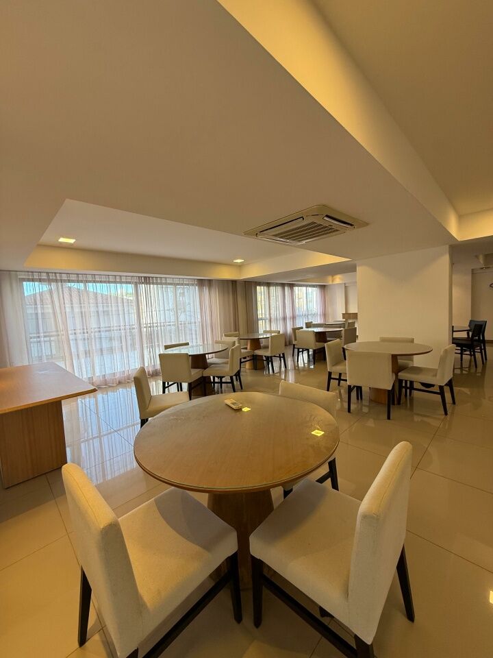 Excelente apartamento, nascente, finaoacabamento, de 108m², com 3 quartos, 1 suíte, piso frio, home office, varanda incorporada com fechamento em reiki, living amplo, sala de estar, sala de jantar, lavabo, armários planejados em todos os cômodos, ar condicionado, cozinha espaçosa, área de serviço com banheiro, andar intermediário, e duas vagas de garagem.
