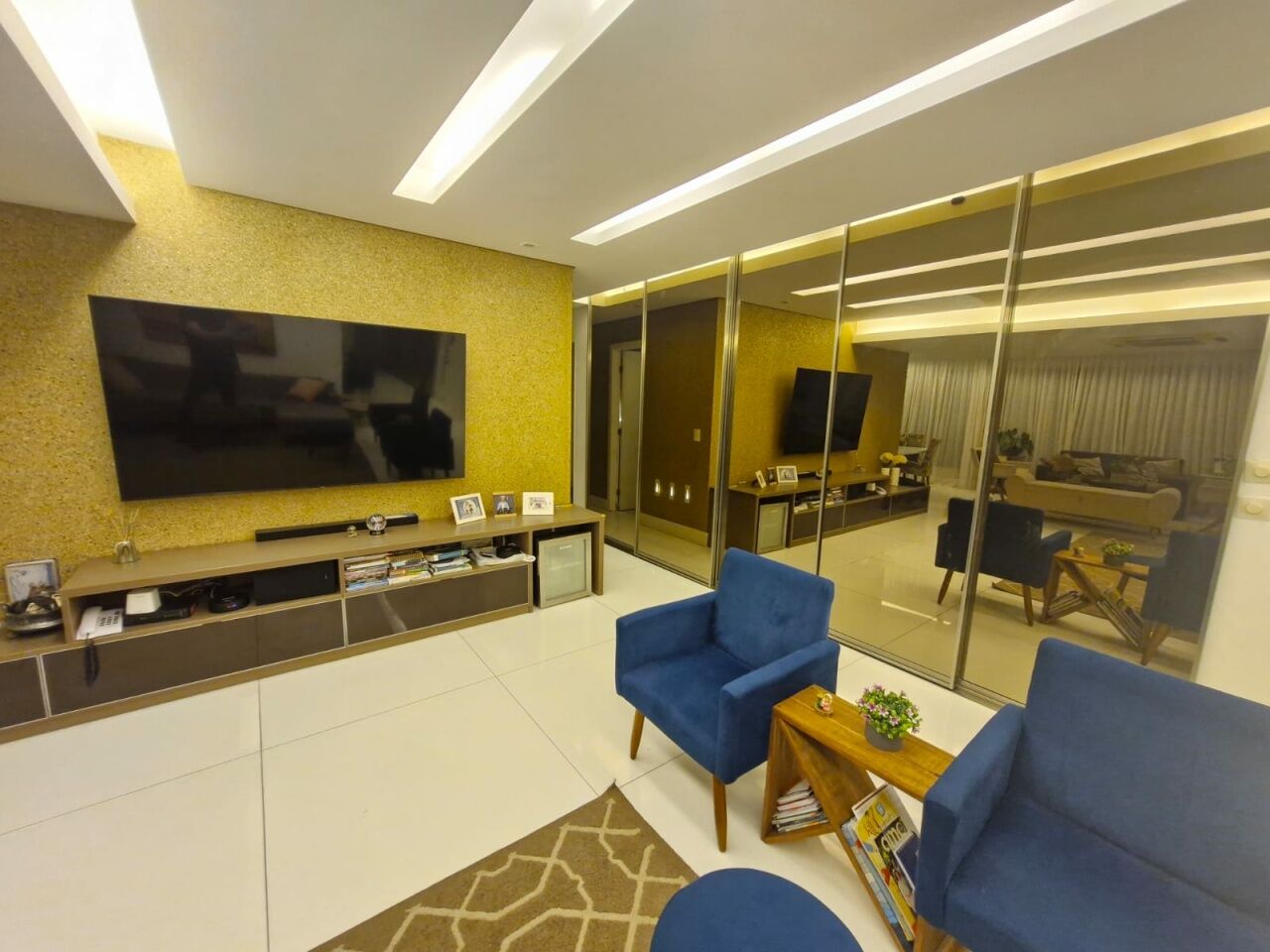 Excelente apartamento, nascente, finamente decorado, de 152m², com 3 quartos, 3 suítes, piso em porcelanato, gabinete, varanda gourmet com fechamento em reiki, living amplo, armários planejados em todos os cômodos, ambientes climatizados, dependência completa, andar alto e 3 vagas de garagem.