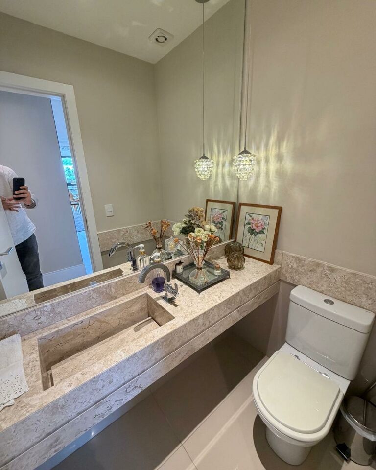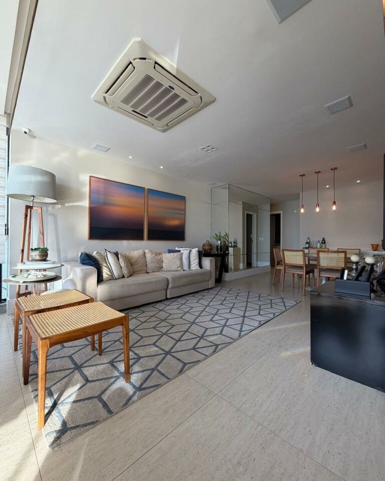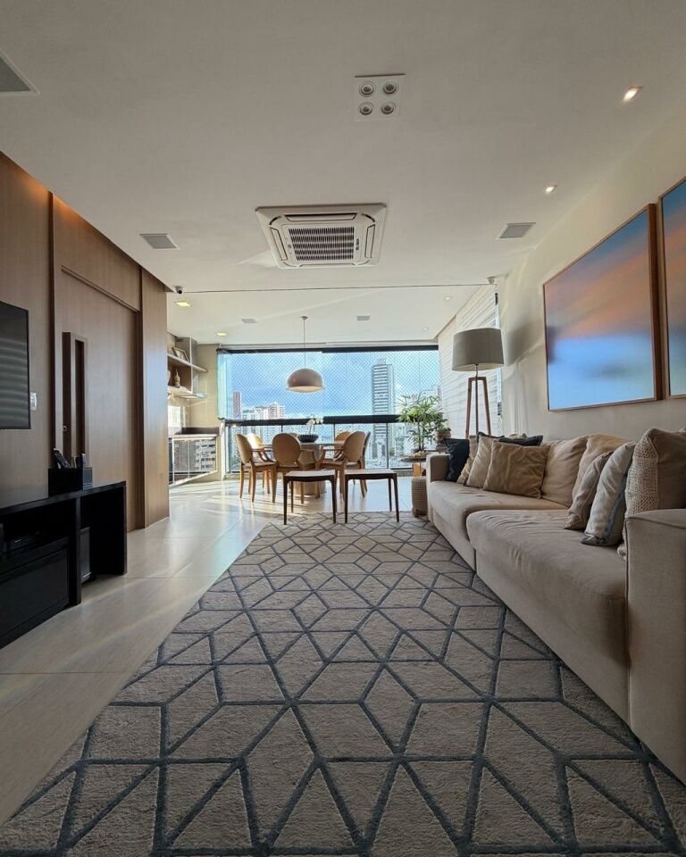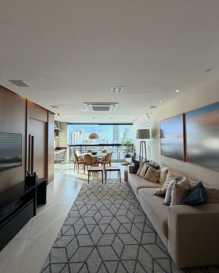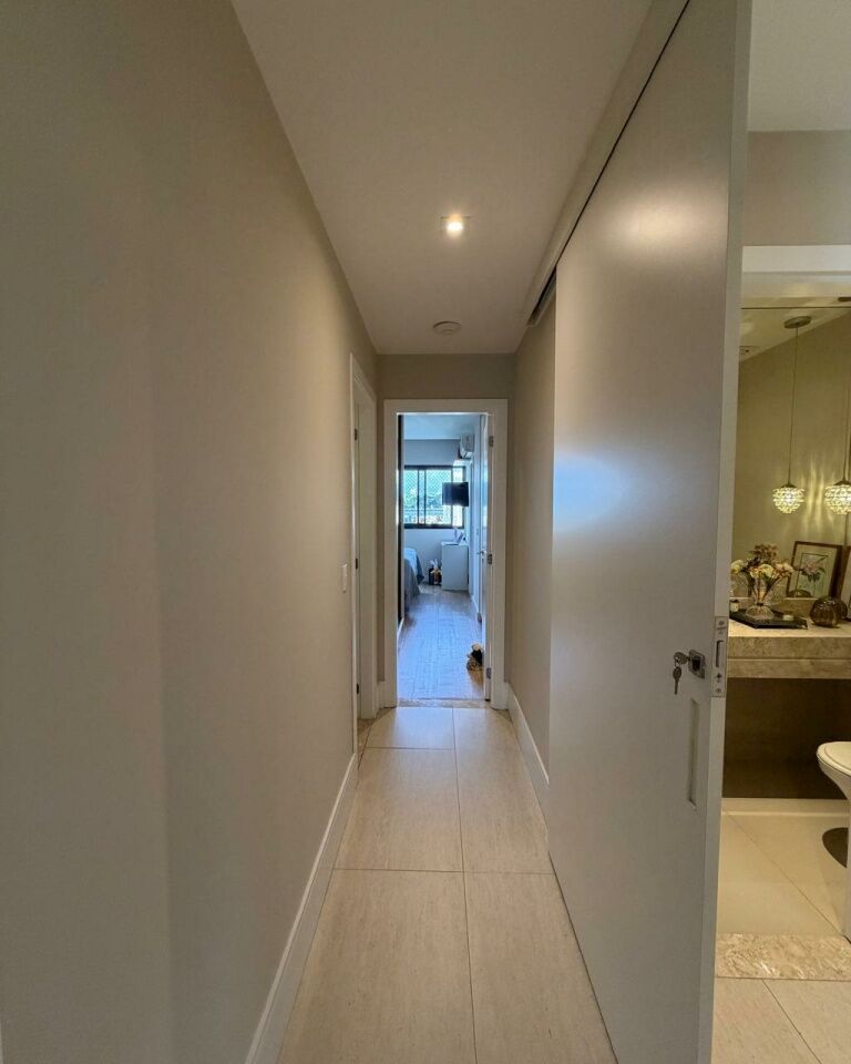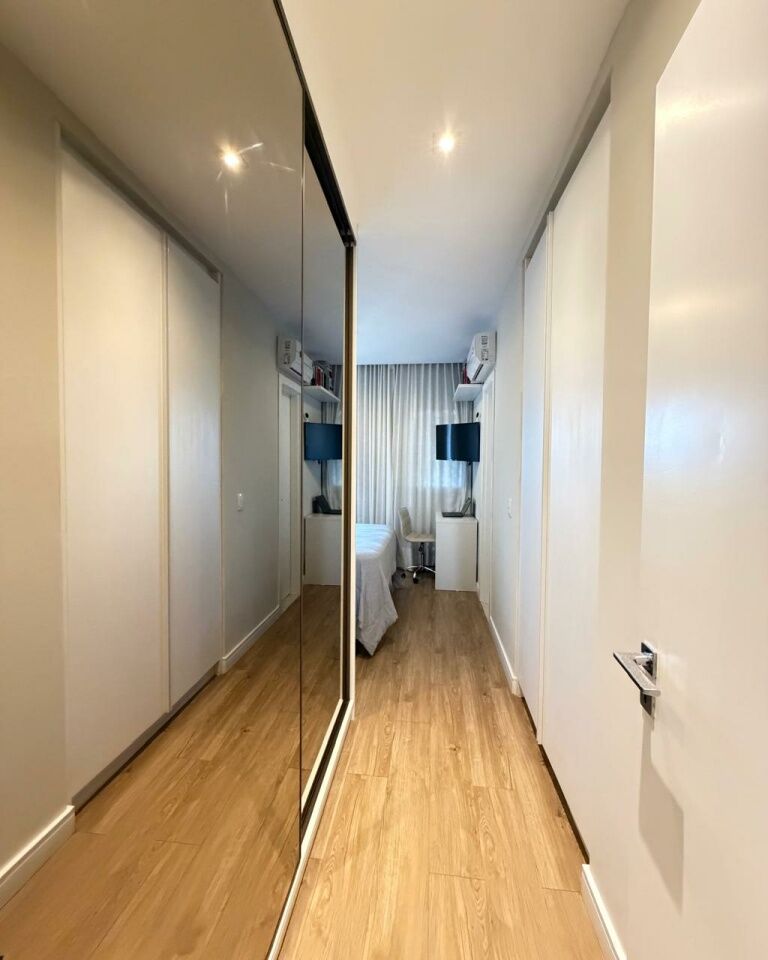 Excelente apartamento, fino acabamento, de 127m², com 3 quartos, 3 suítes, closet, piso frio, varanda gourmet incorporada a sala com fechamento em reiki, sala de jantar, sala de estar, living amplo, lavabo, armários em todos os cômodos, ar condicionado, teto rebaixado com projeto de iluminação, andar alto, área de serviço, dependência completa e três vagas de garagem cobertas mais depósito.