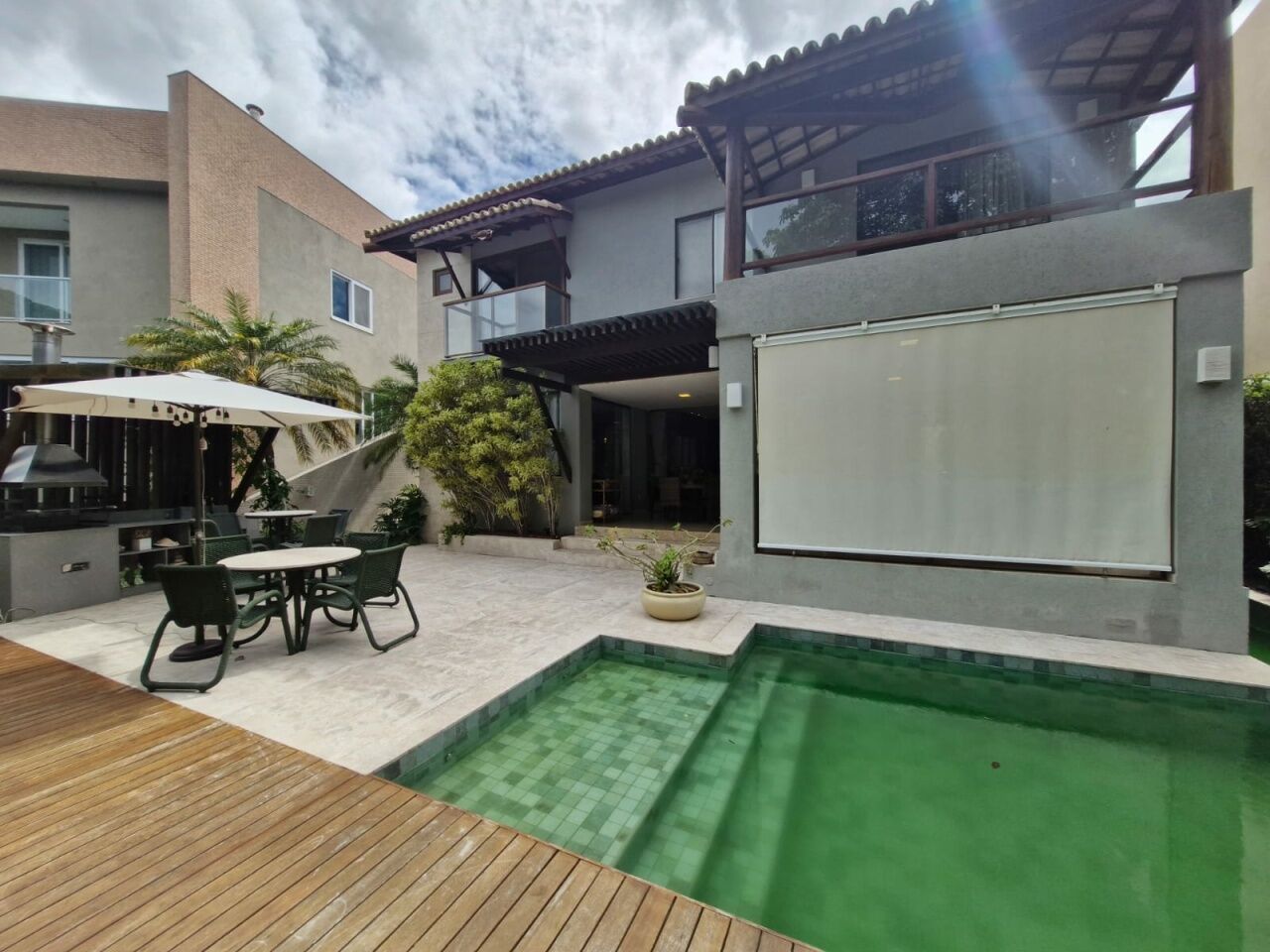 Excelente casa duplex, nascente, fino acabamento, de 380m² de área construída, com 3 quartos, 3 suítes, piso frio, home theater, home office, varanda, espaço gourmert com churrasqueira piscina privativa, living amplo, jardim, lavabo, sala de estar, sala de jantar, armários planejados da Bontempo e Florense em todos os cômodos, ar condicionado, cozinha espaçosa, projeto de iluminação com teto rebaixado, despensa, dependência completa, área de serviço, e quatro vagas de garagem.